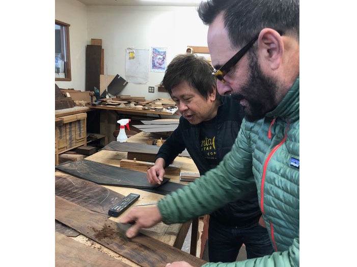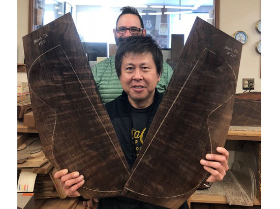 もう1本作りたくなってしまいまして (笑) さらに1set選びました!この材はModel BKのCutawayに決定。Model Rが先に完成し、このBKはもうしばらく後になるでしょう。2020年 オリンピックイヤーかな? 追加オーダーにJeffさんも嬉しそうです