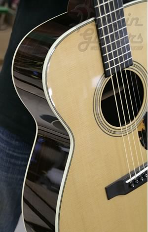 こちらは、プロトの000サイズの同厚を深くしたモデル。ビジュアル的には非常にシンプルなモデルに仕上がっていました。