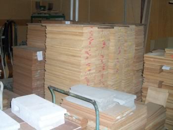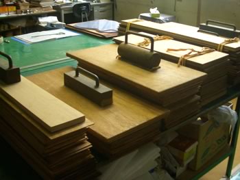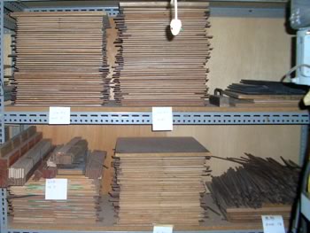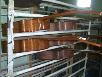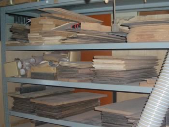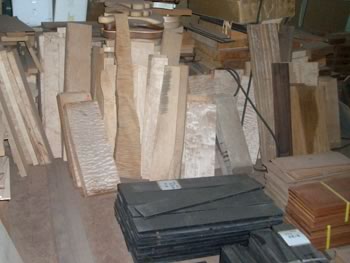 未加工の材のストック、アコースティック用はもちろんエレキ用なんかもありました。