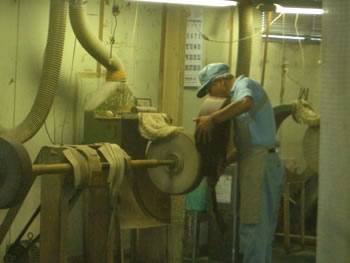 今回は私自身は約10年ぶり3度目の工房訪問(2007年)です。昔とほとんど変わりない少数精鋭のスタッフが、ほとんど手作業で丁寧に組上げられていました。現在は森中氏の製作するカスタム・ショップモデル(手工モデル)とラインによって製作される(S-101やS-96モデルが同じ工房(工場)内で製作されています。ライン生産と言ってもほぼ手作業…製作行程に於いては手工モデルとの違いはほとんどありません。良い物を可能な限りお求めやすい価格で…MORRISの想いです。