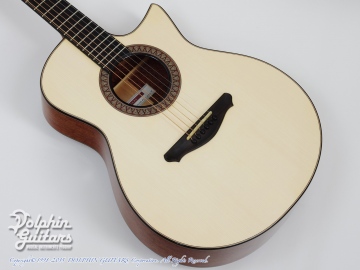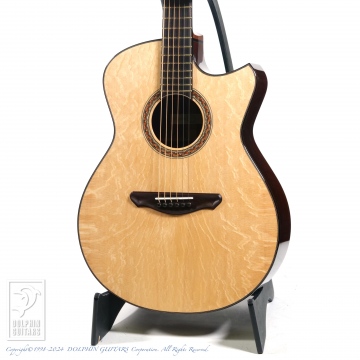 様々な木材を組み合わせて製作されるモザイクロゼッタやマグネットを使用したトラスロッドカバーなど、トラディショナルとモダンな要素を高い次元で取り入れています。また、近年は楓や栃、神代欅や神代杉など、和材を使用したギターの製作も行なっている。