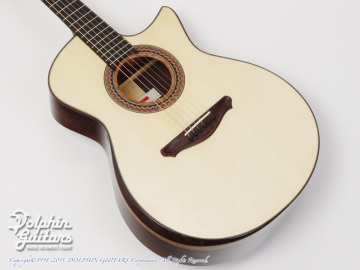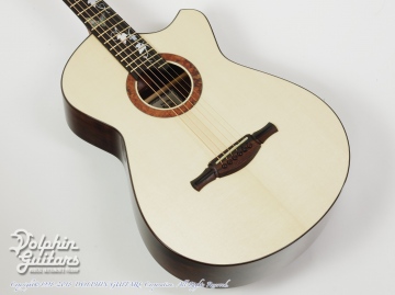 一般的なオーケストラサイズよりも深い胴厚を持つOMや高い演奏性を実現したナイロン弦のJazz Nylonなど、オリジナルシェイプをラインナップしています。個人製作家レベルでは、なかなか使用されない3D CAD (キャド。コンピュータ上で設計や製図を行うツール。) を用いるなど、様々なアプローチ手法や確かな木工技術は、日本を代表するルシアーブランドとして認知されています。
