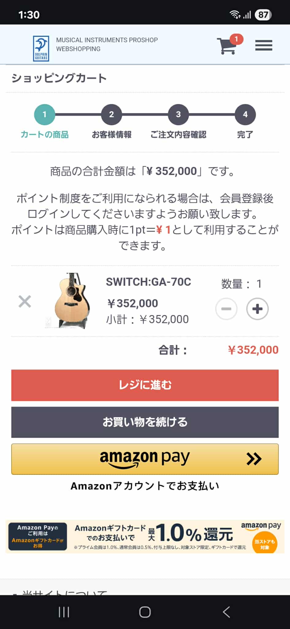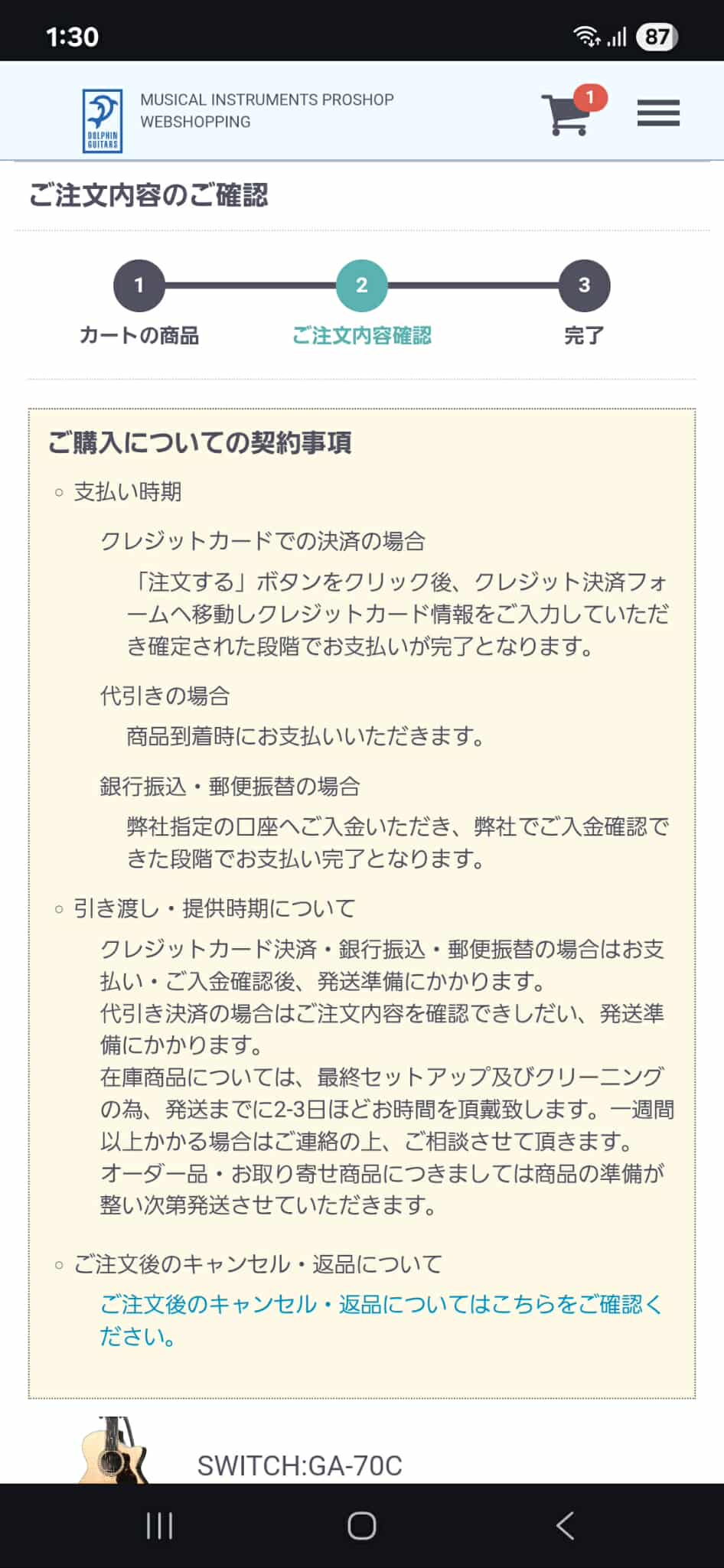 (1)「ご購入ページへ」ボタンより、カートに移動します。