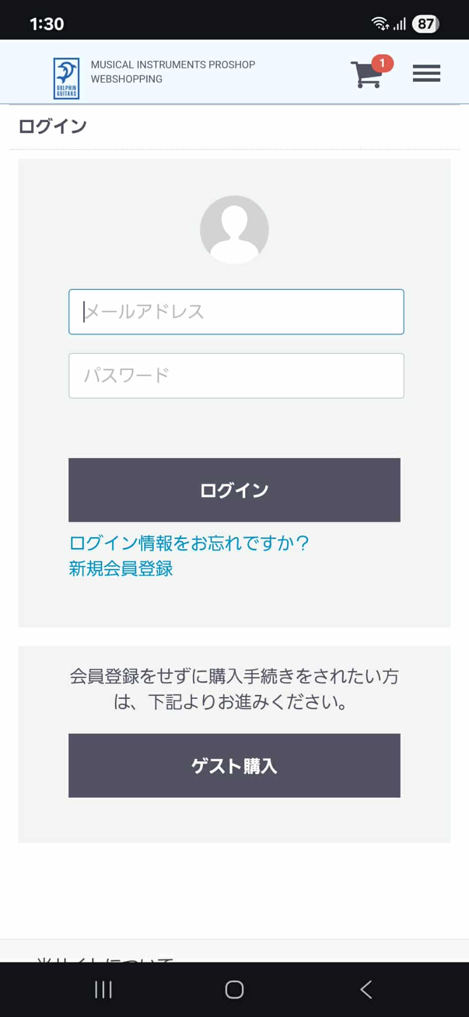 (3)会員の方はログイン情報を、登録をせずに購入に進みたい場合は「ゲスト購入」ボタンを選択してください。