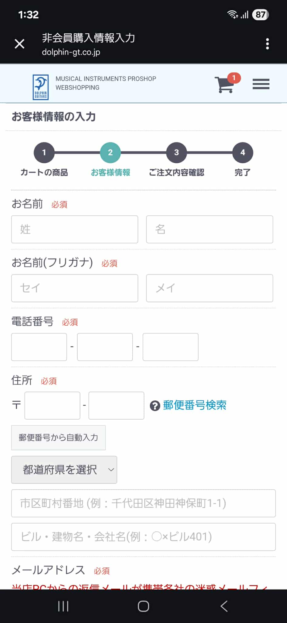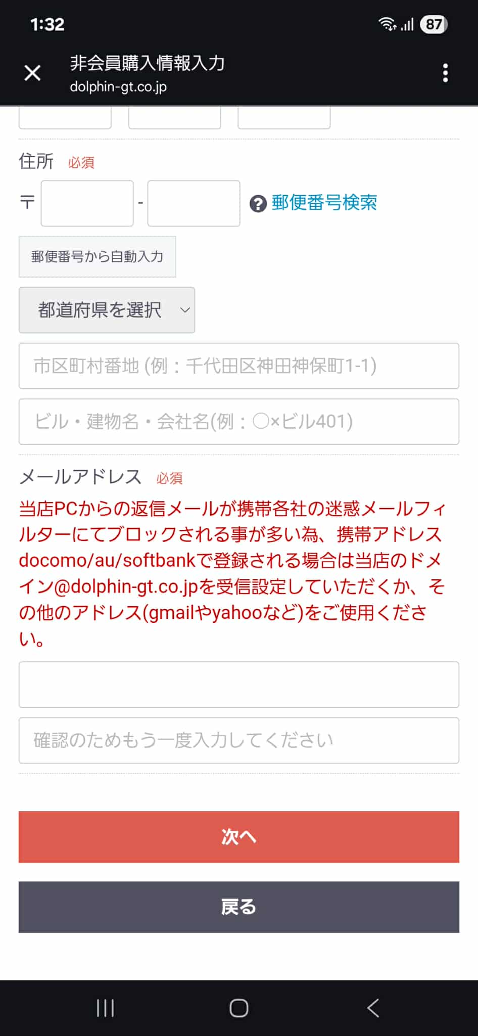※当店PCからの返信メールが携帯各社の迷惑メールフィルターにてブロックされる事が多い為、携帯アドレス docomo/au/softbankで登録される場合は当店のドメイン@dolphin-gt.co.jpを受信設定していただくか、その他のアドレスgmailやyahooなどをご使用ください。