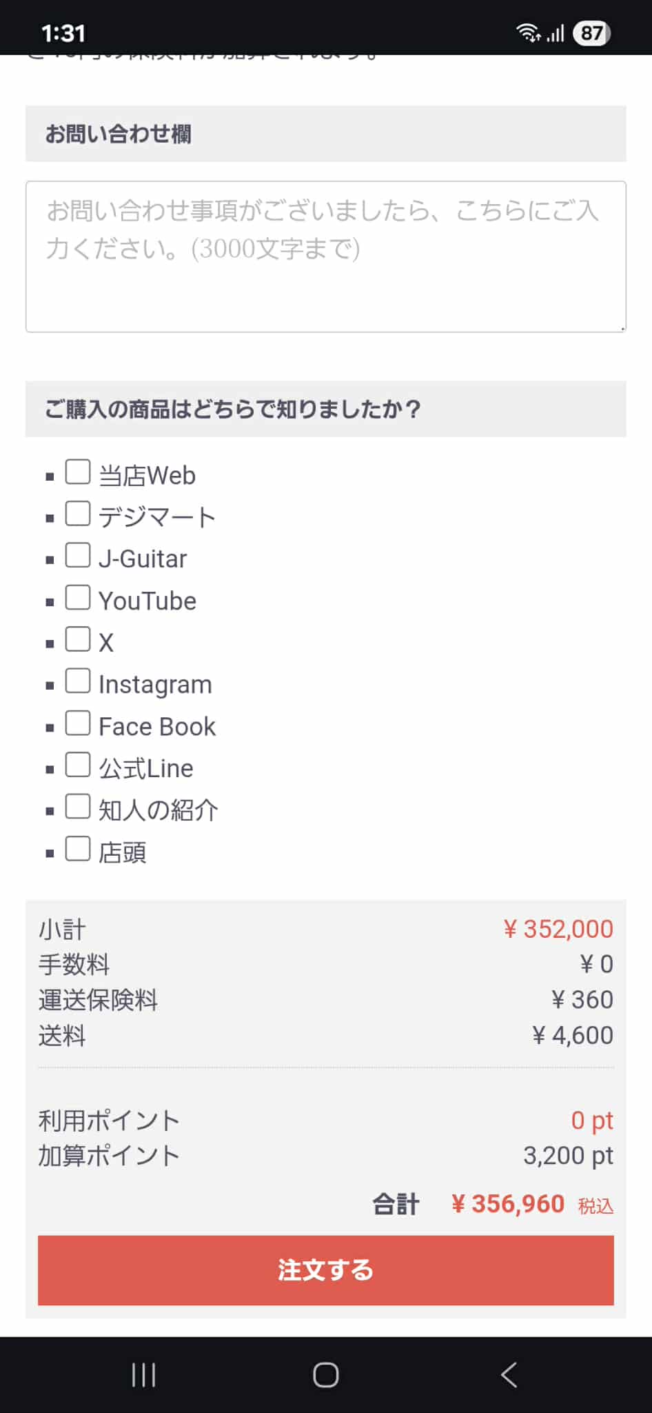 最後に合計金額をご確認いただき、問題がなければ「注文する」を選択してください。