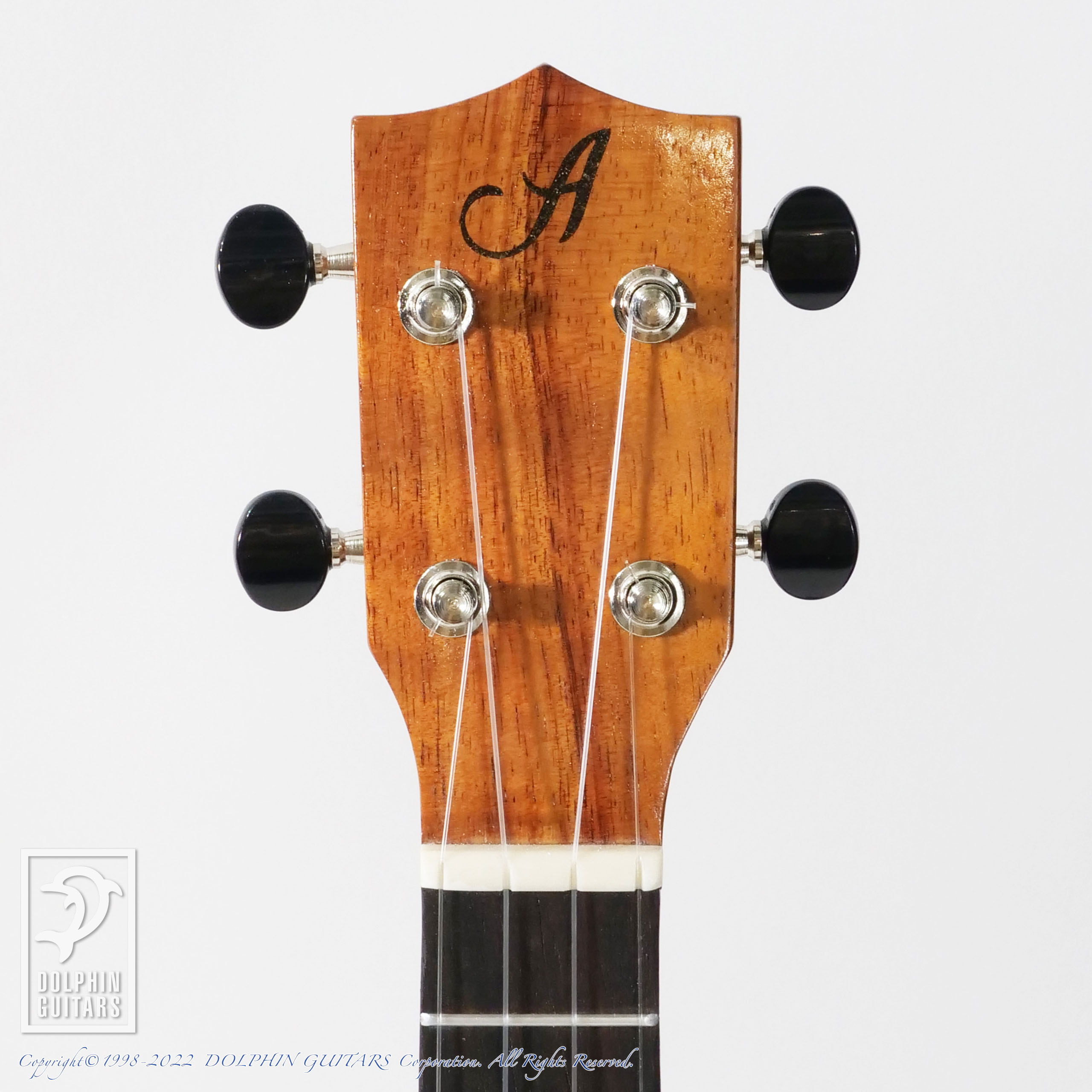 ハワイアンコアから生み出される、まったく気取っていないラフなサウンドやパイナップルシェイプ特有のふくよかなサウンドは、ハワイアンミュージックに本当に良く合います。また、ヘッドの”A”のロゴには、なんとハワイ島南部のブラックサンドビーチの砂が埋め込まれており、ハンドメイド暖かみや遊び心が感じさせられます。