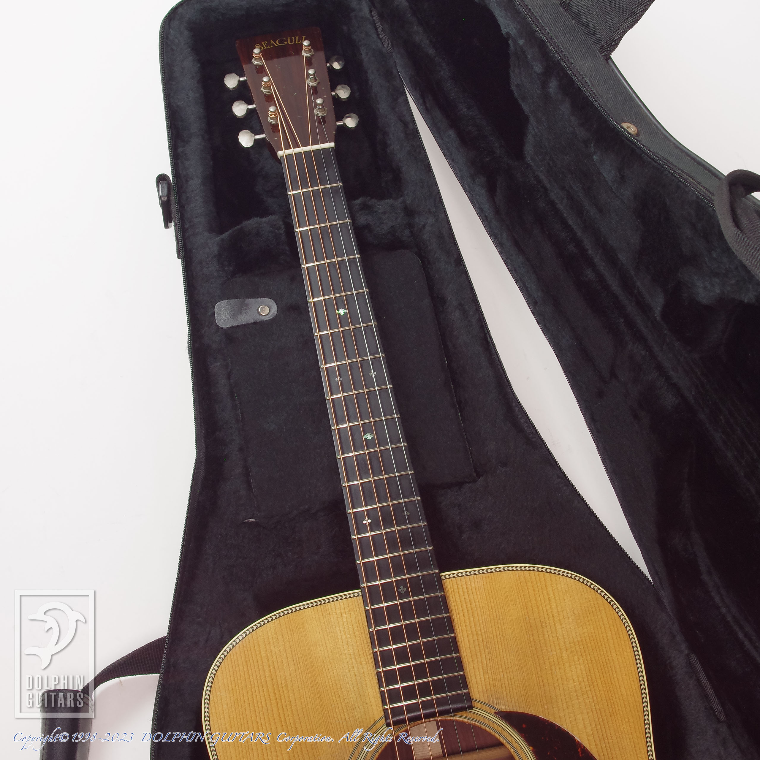 ネックコンディションも良く、トラスロッドの効きも抜群。弦高は6弦12F上2.5mm / 1弦2.0mmのセッティング。ネックアングルも理想的で、サドルも十分な高さであります。ケースはオリジナルではありませんが、持ち運びにも便利な軽量のセミハードケースが付属となります。