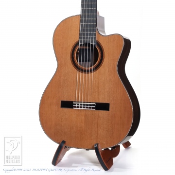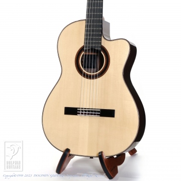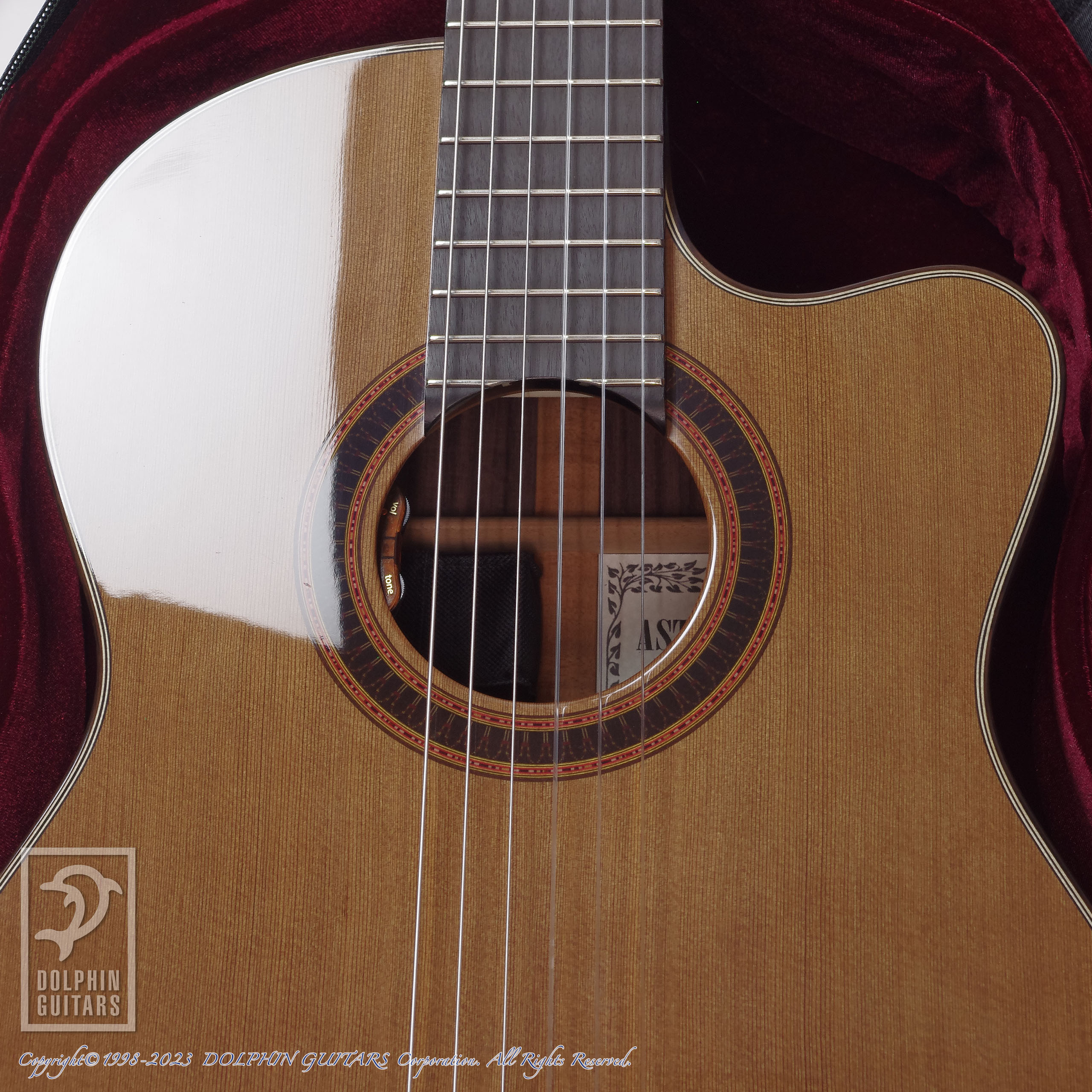 ナイロン弦では珍しい630mmのショートスケールを採用しており、抜群の操作性がありながらも、しなやかで張りのあるサウンドはそれを感じさせないなんとも心地よいフィーリング。さらに通常より1mm細い49mm幅&よりスリムなグリップにシェイプアップしたネックで抜群の操作性を誇ります。カッタウェイも施されており、サイドポジションの付いたスリムなカスタムネックも相まって鉄弦からの持ち換えにも違和感なくお使いいただけるでしょう。