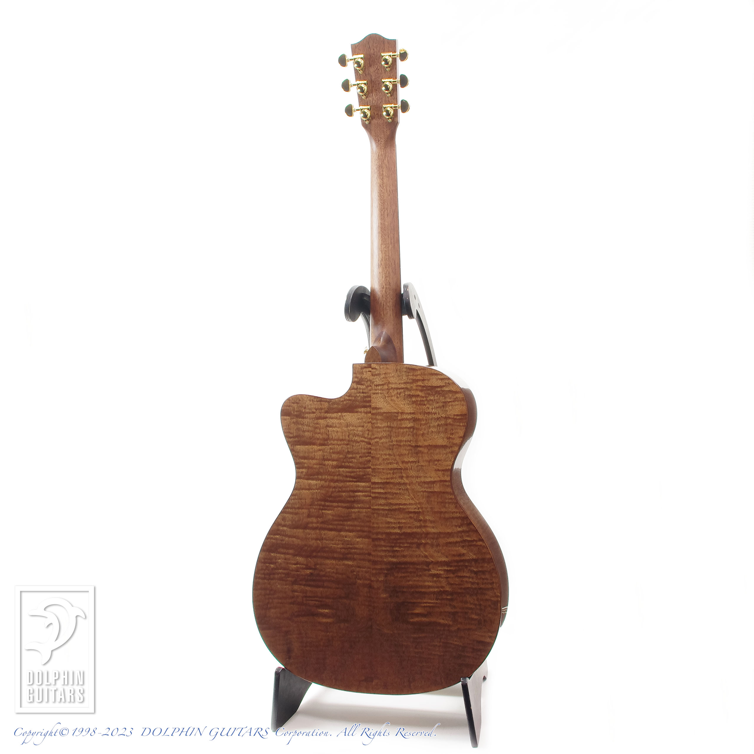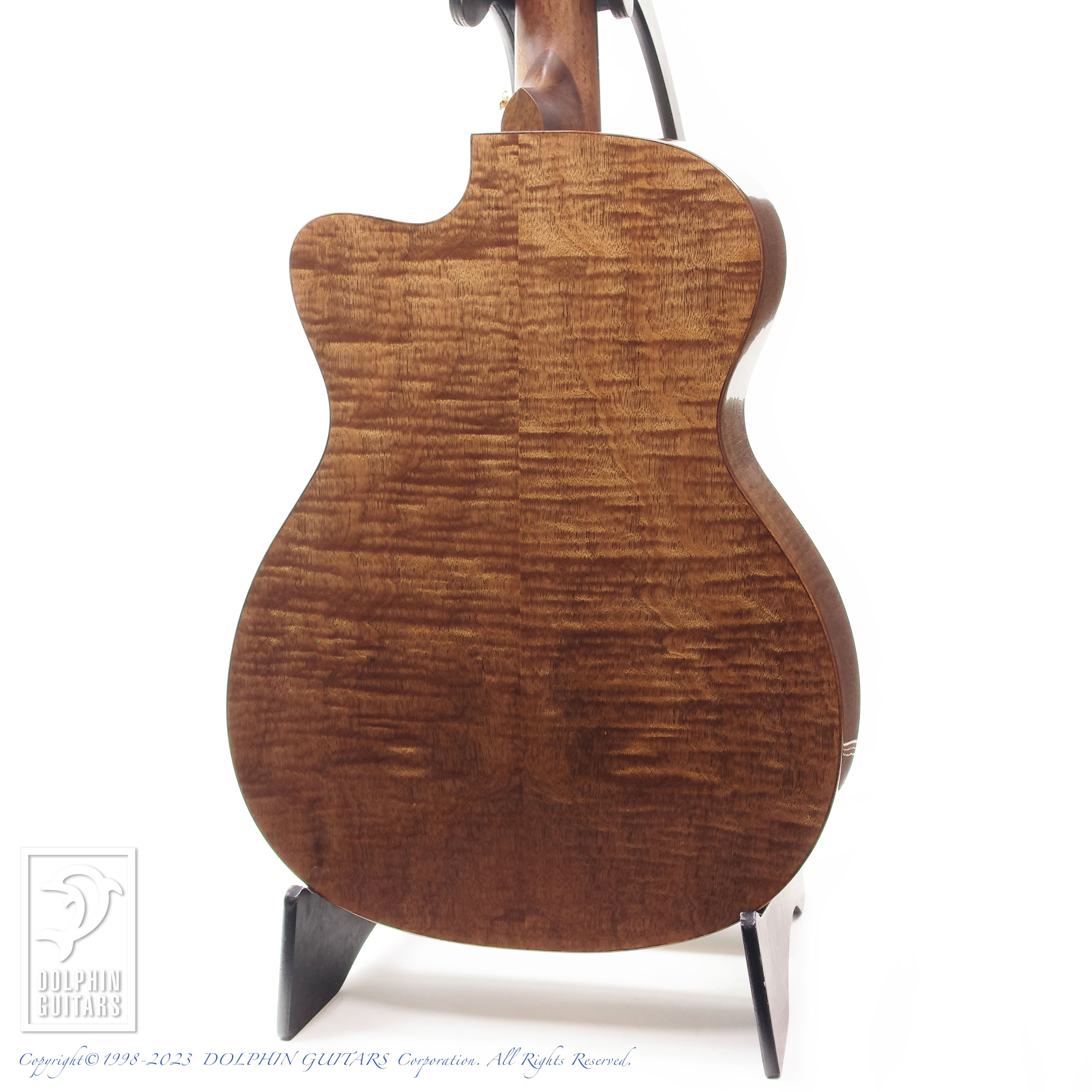 トップ材にはイングルマンスプルースの単板材を選択。その柔らかな木質からやさしく広がるサウンドを生み出します。対してサイドバック材には、豊かな中音域のトーンを生み出すフレイムマホガニーを採用。揺らめくような美しい杢目も楽しめます。