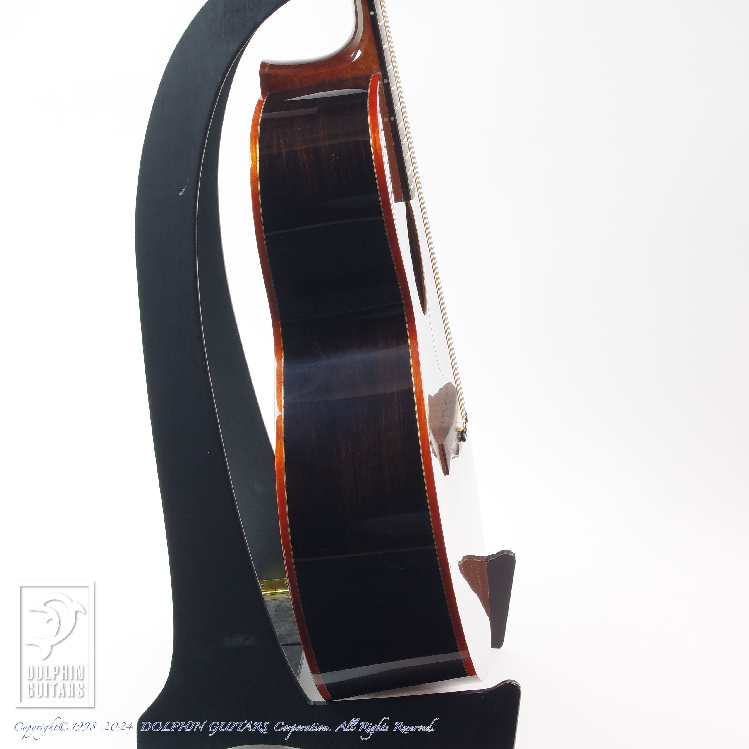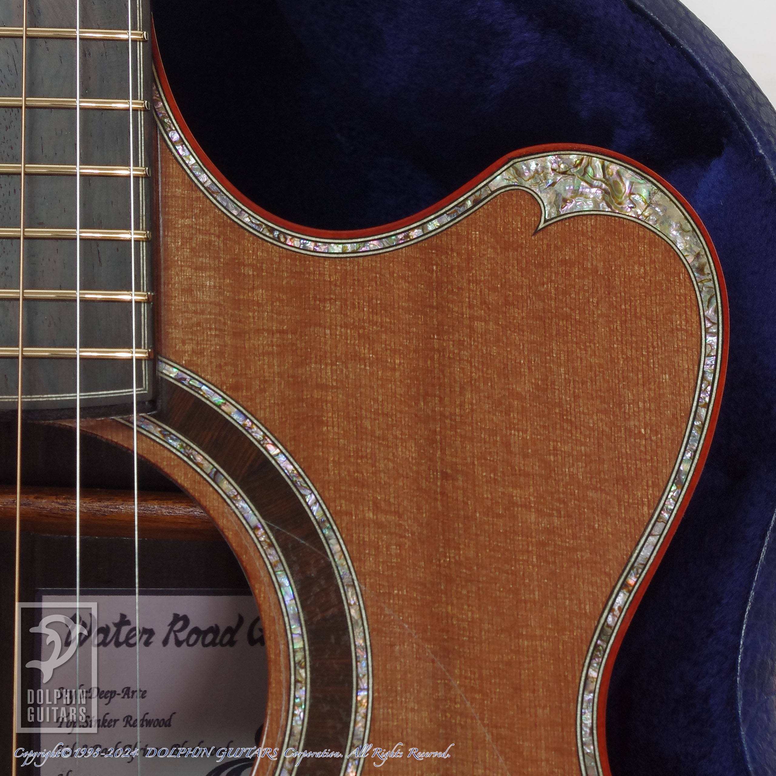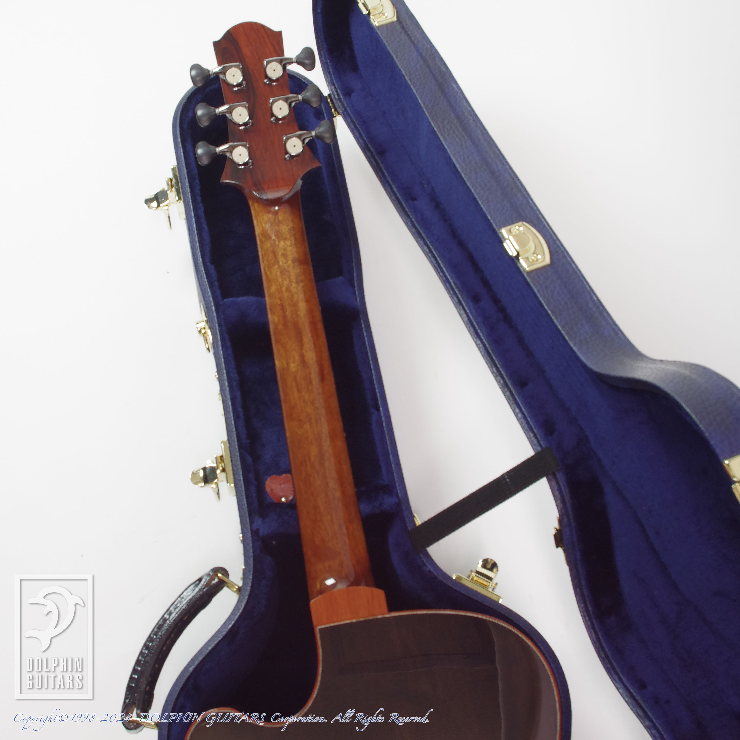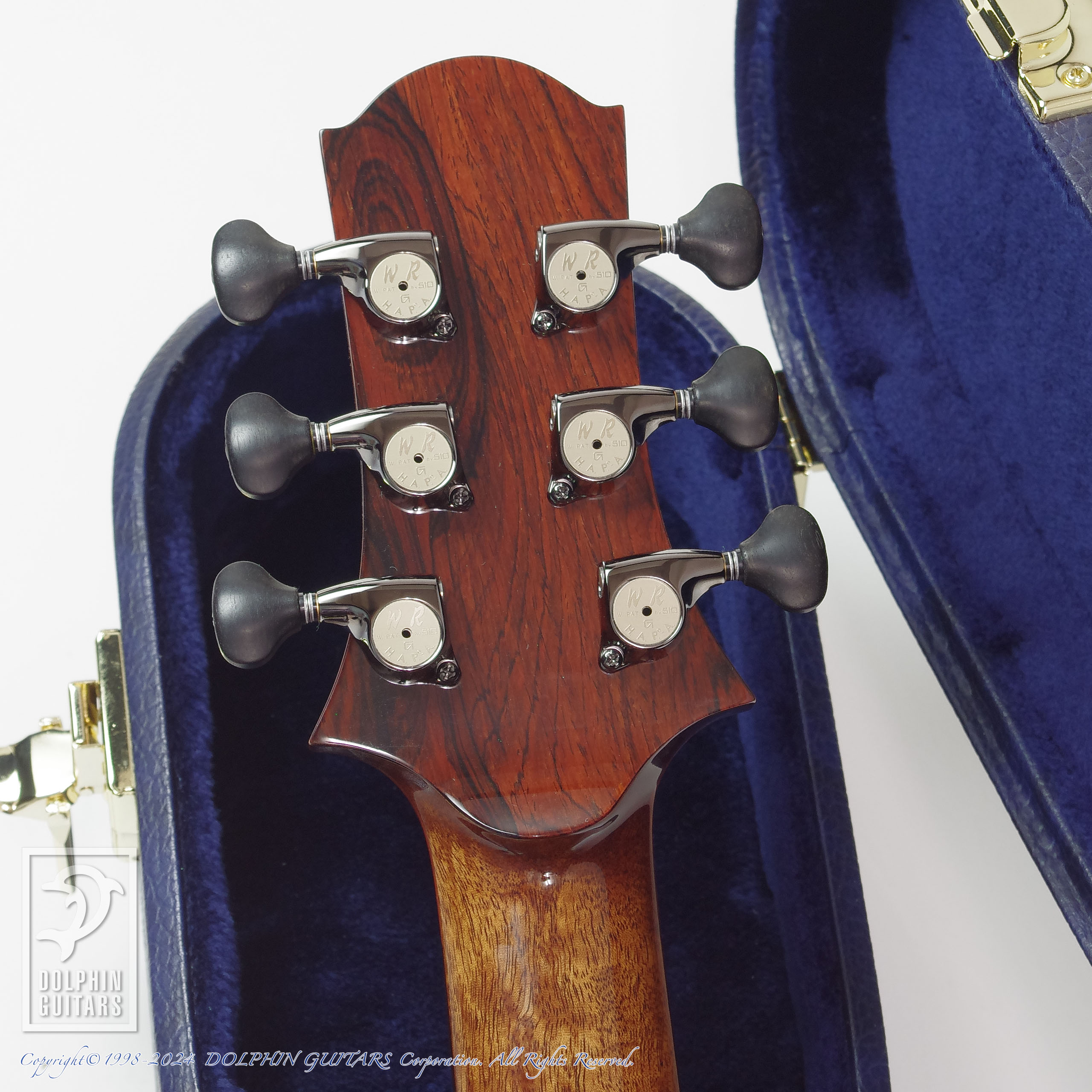 芸術とも言える美しい天然杢の使用も、材のストック量でもルシアー界随一とも言われるウォーターロードの魅力のひとつ。インレイデザインはカスタマーが希望されたデザイン。