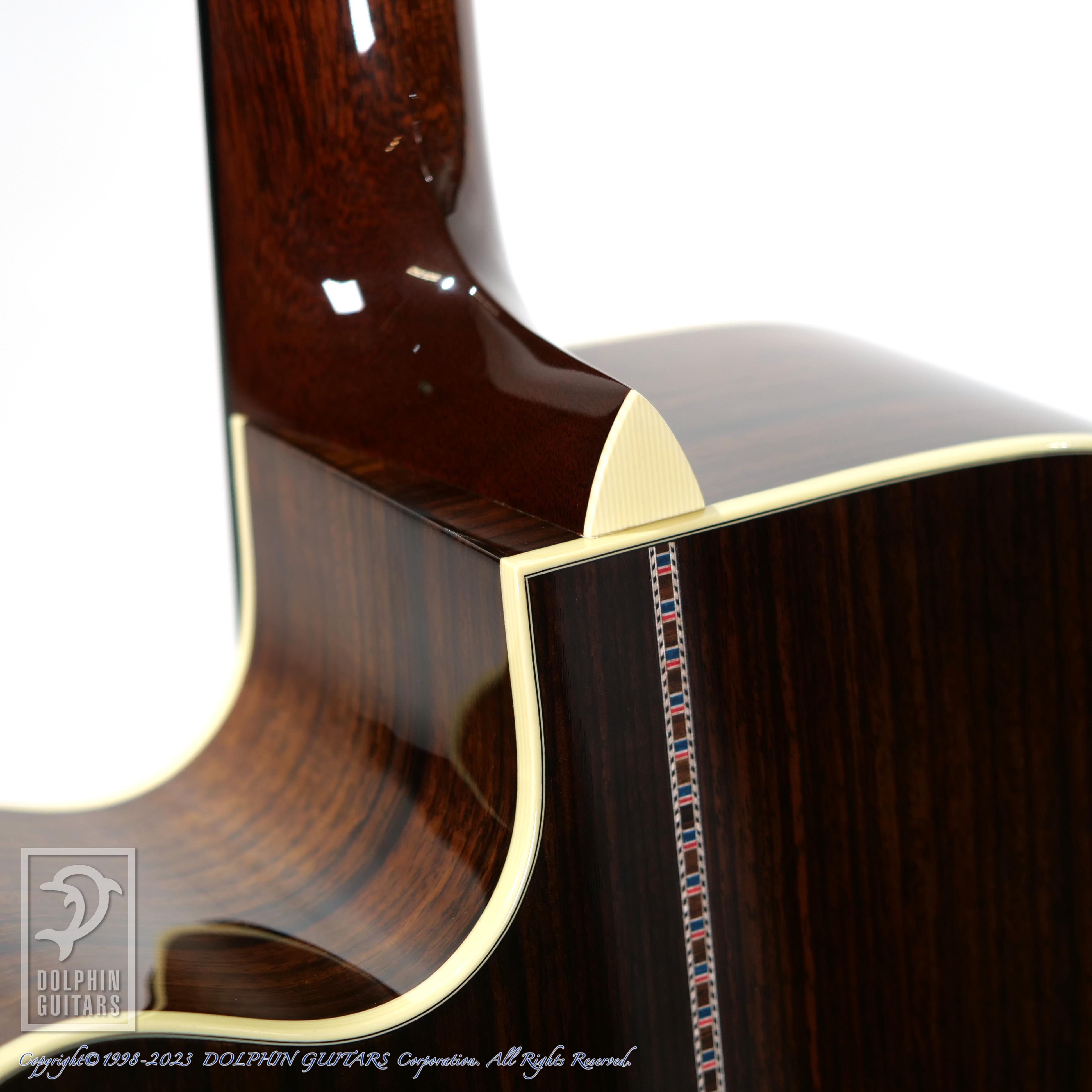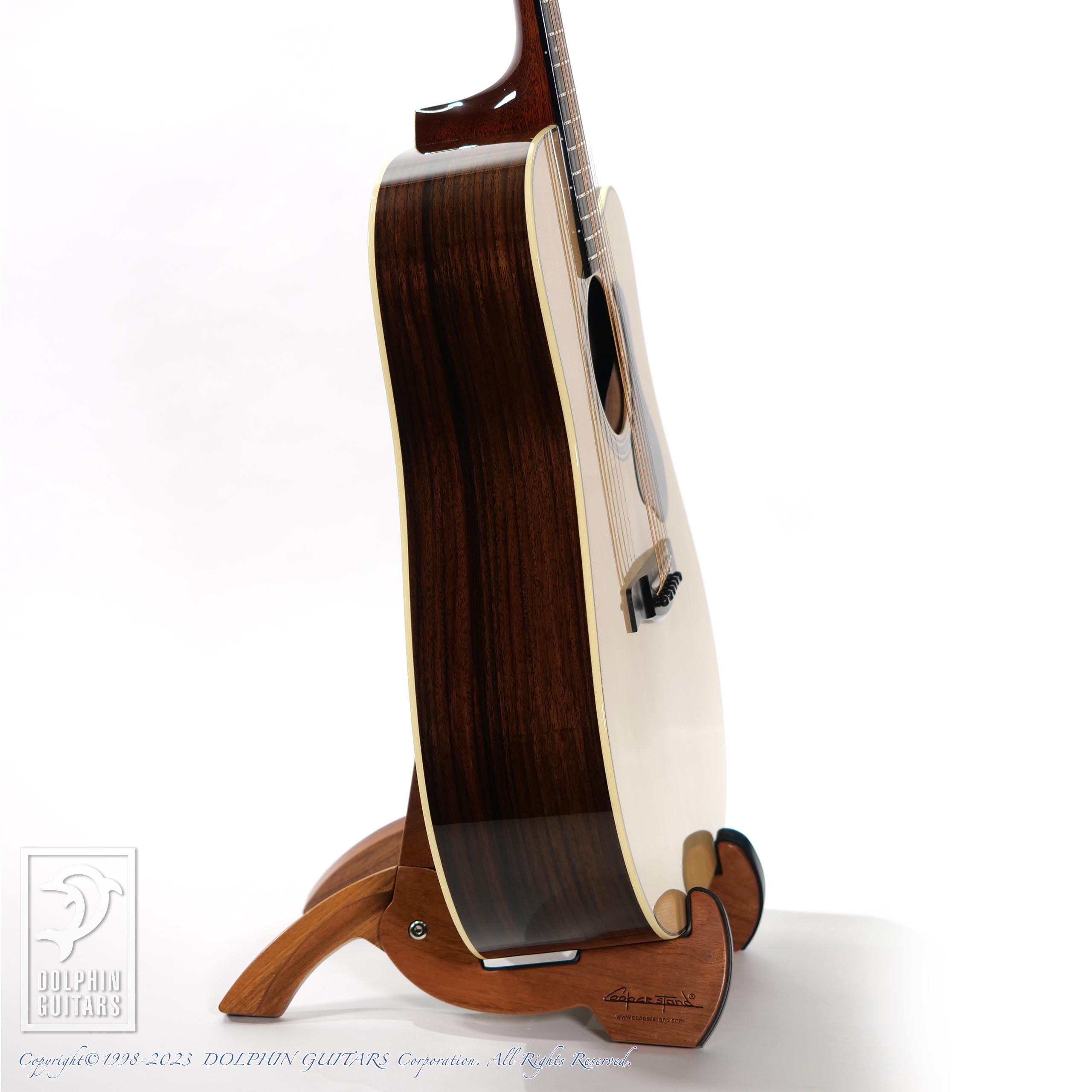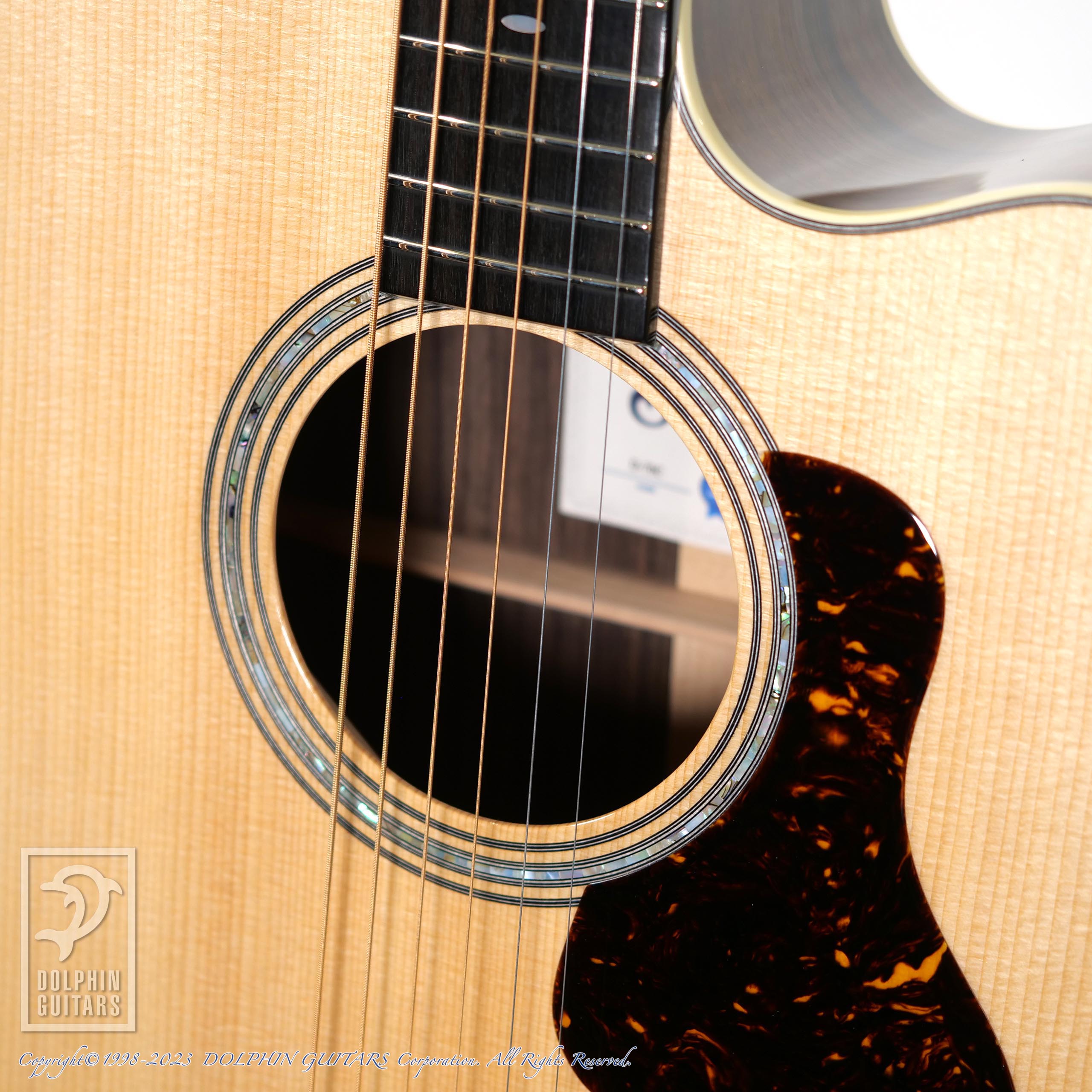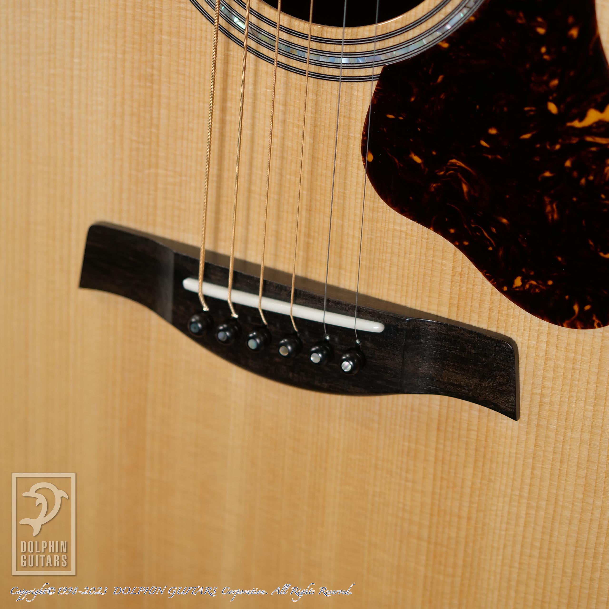 ローアクションなセッティング&ソフトタッチでも十分な音圧を得られるように設計されており、抜群の操作性能を誇ります。全体的にやや甘いトーンが心地よく、その中にキラリと感じるスプルースの高音特性、インディアンローズの持つ低域の重量感もバランス良く混ざり合います。独自のスキャロップドXブレイシングを採用し、トップブレイシングのみならずバックブレイシングにも焦点を当てたサウンドメイクで、ストロークの迫力はもちろんのこと、そのレスポンスの良さはフィンガースタイルにもバッチリはまります。