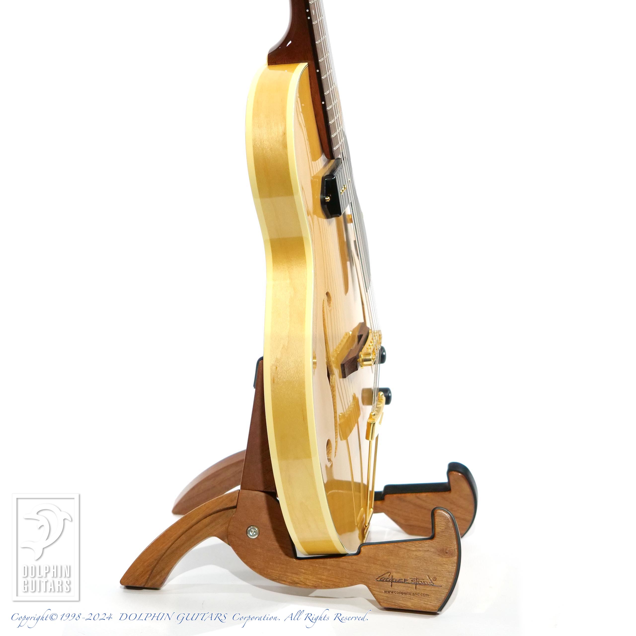 通常(約70mm)より薄いボディ厚(約44mm)は、抜群の取り回しと反応性を誇り、アンプで鳴らす際のハウリング対策としてもより効果的なボディ厚となっています。
