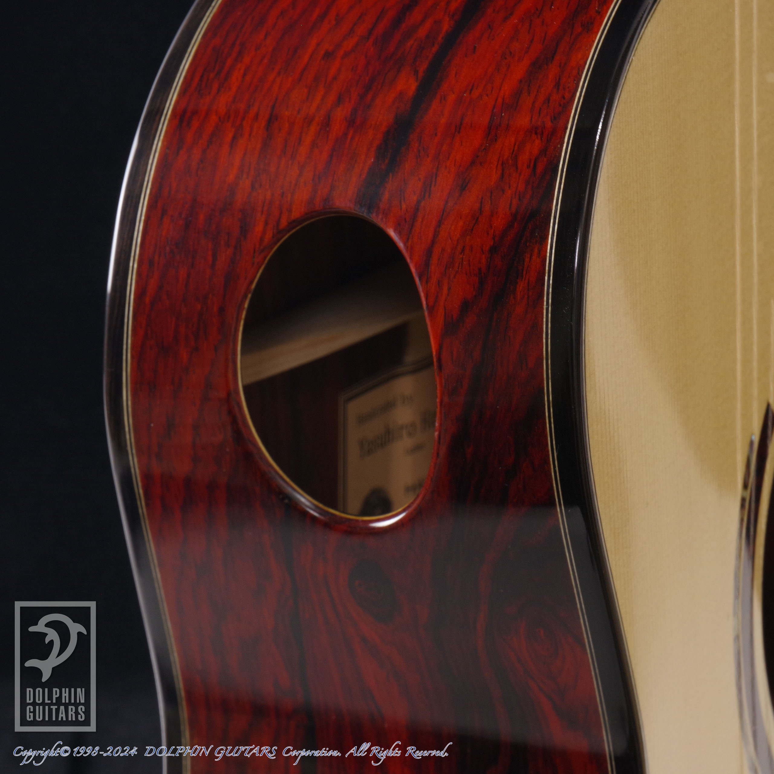 サイド サウンドホールからは弾き手のモニターにもなり、メインのサウンドホールとのステレオ感も味わえ、非常に効果的なオプションであります。