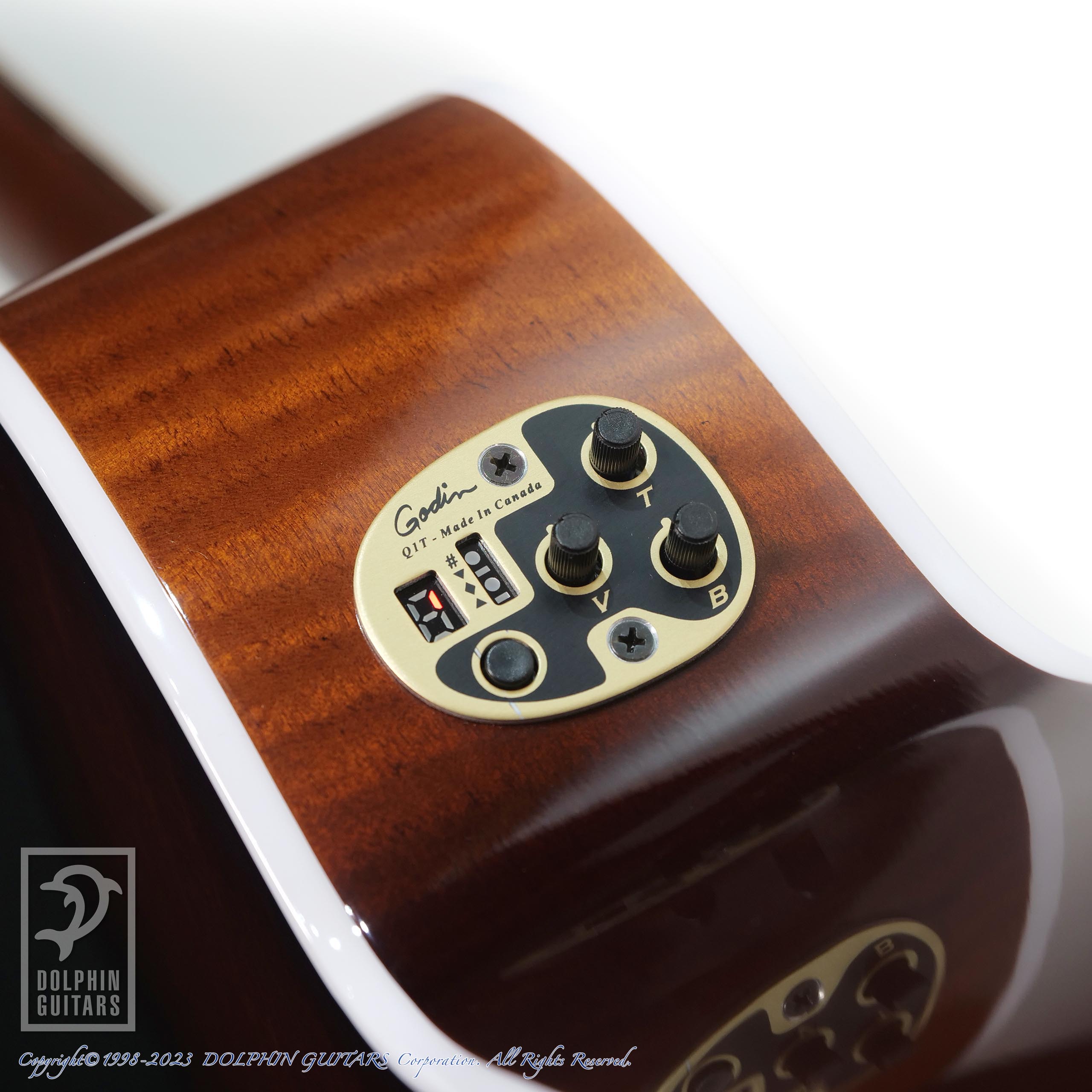 チューナーを内蔵した Godin Q1T ピックアップ/プリアンプシステムを搭載し、ライブや配信でも使える一本です。