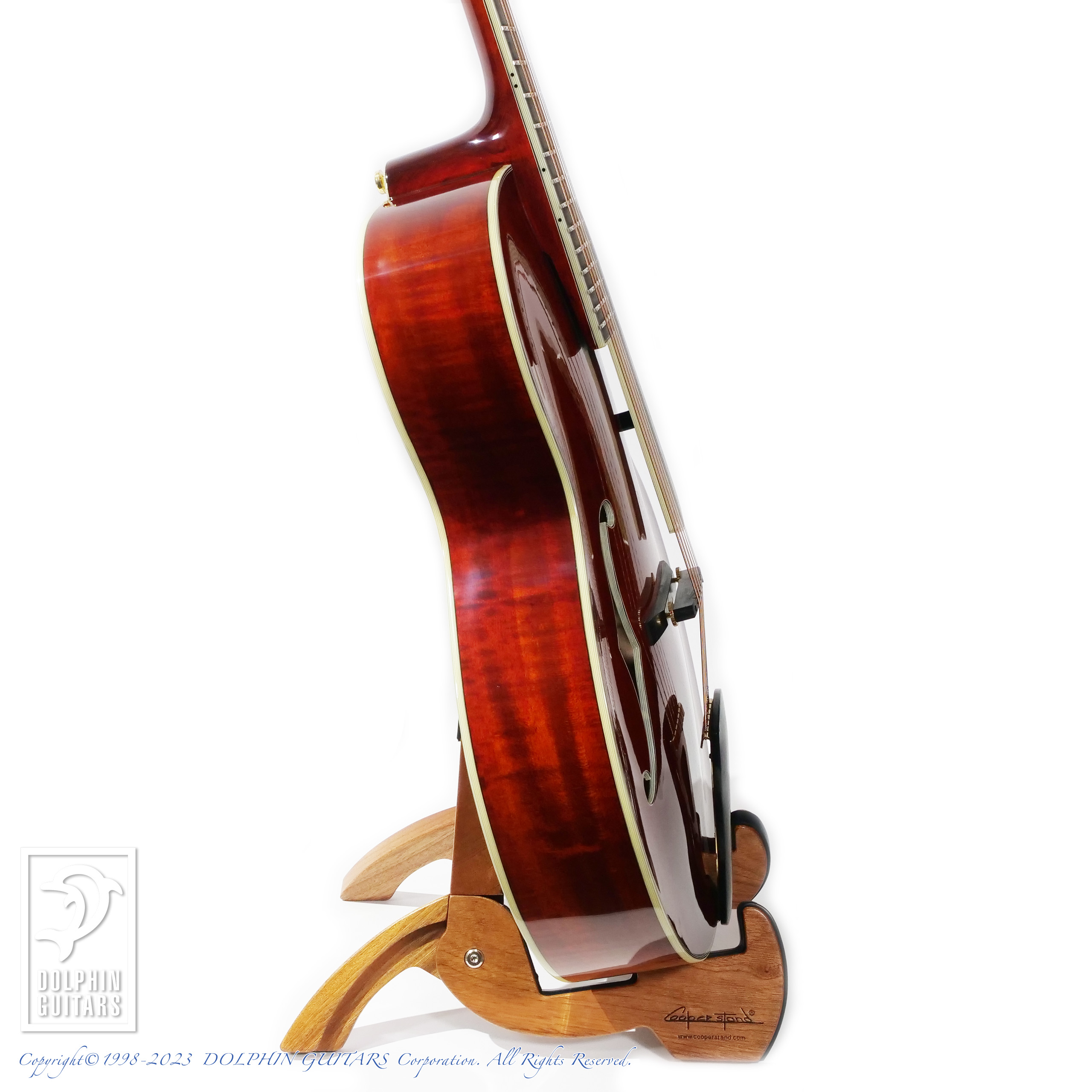 オール単板削り出しボディから生み出されるアコースティックでブルージーな響きは、ラミネイトでは味わえない空気感を醸し出します。音のツブ立ちを明確にさせ、より音が前に出る抜けの良いアーチトップならではのサウンドは、やみつきになります。