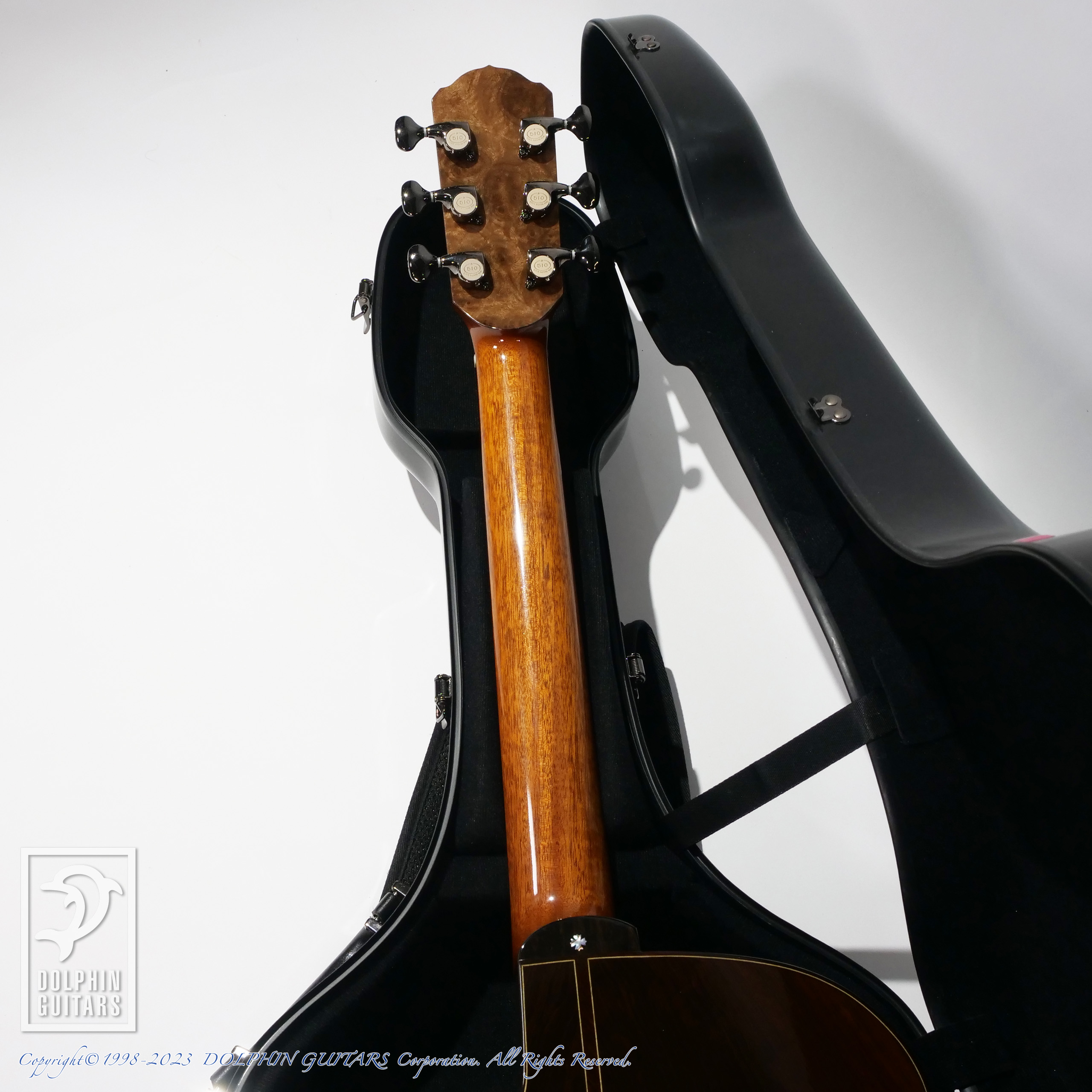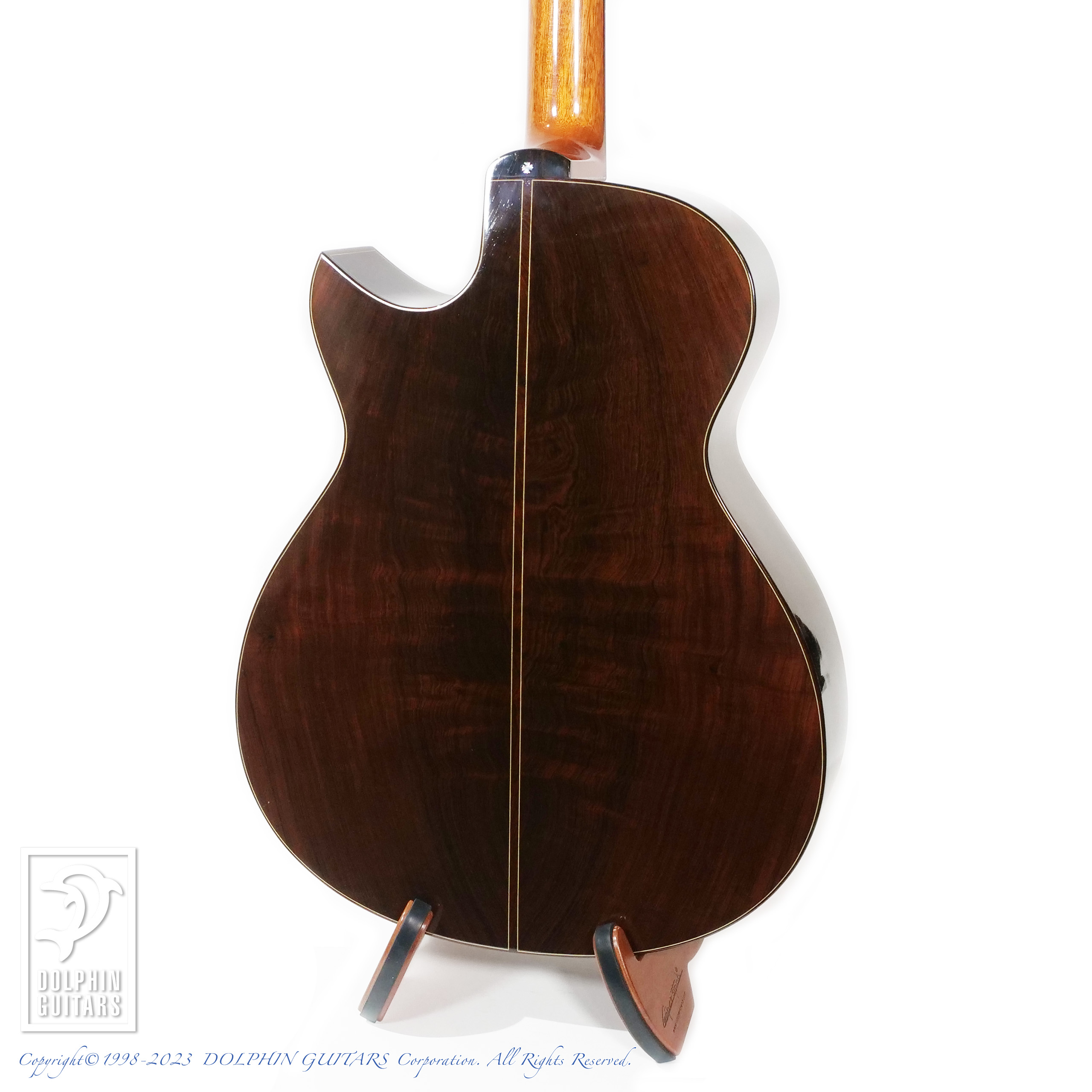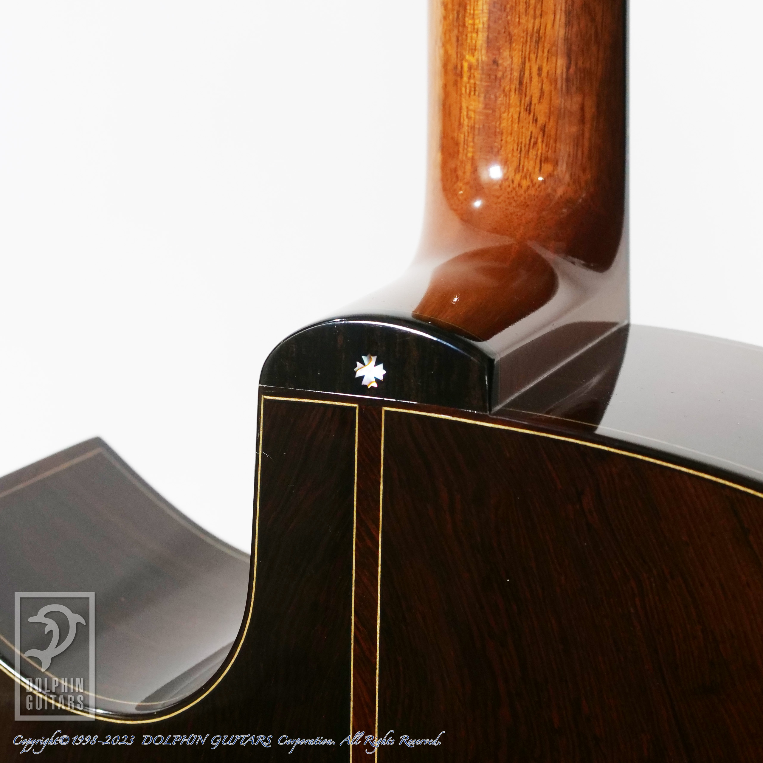 トップ、サイドバックの極上素材は当店秘蔵のプレミアムグレードの中より、亀岡氏自らがさらに厳選したものを使用します。サイドバックに加え、ヘッドプレート、指板、ブリッジに至るまで極上のハカランダを配したまさにスペシャルなショーモデルです。