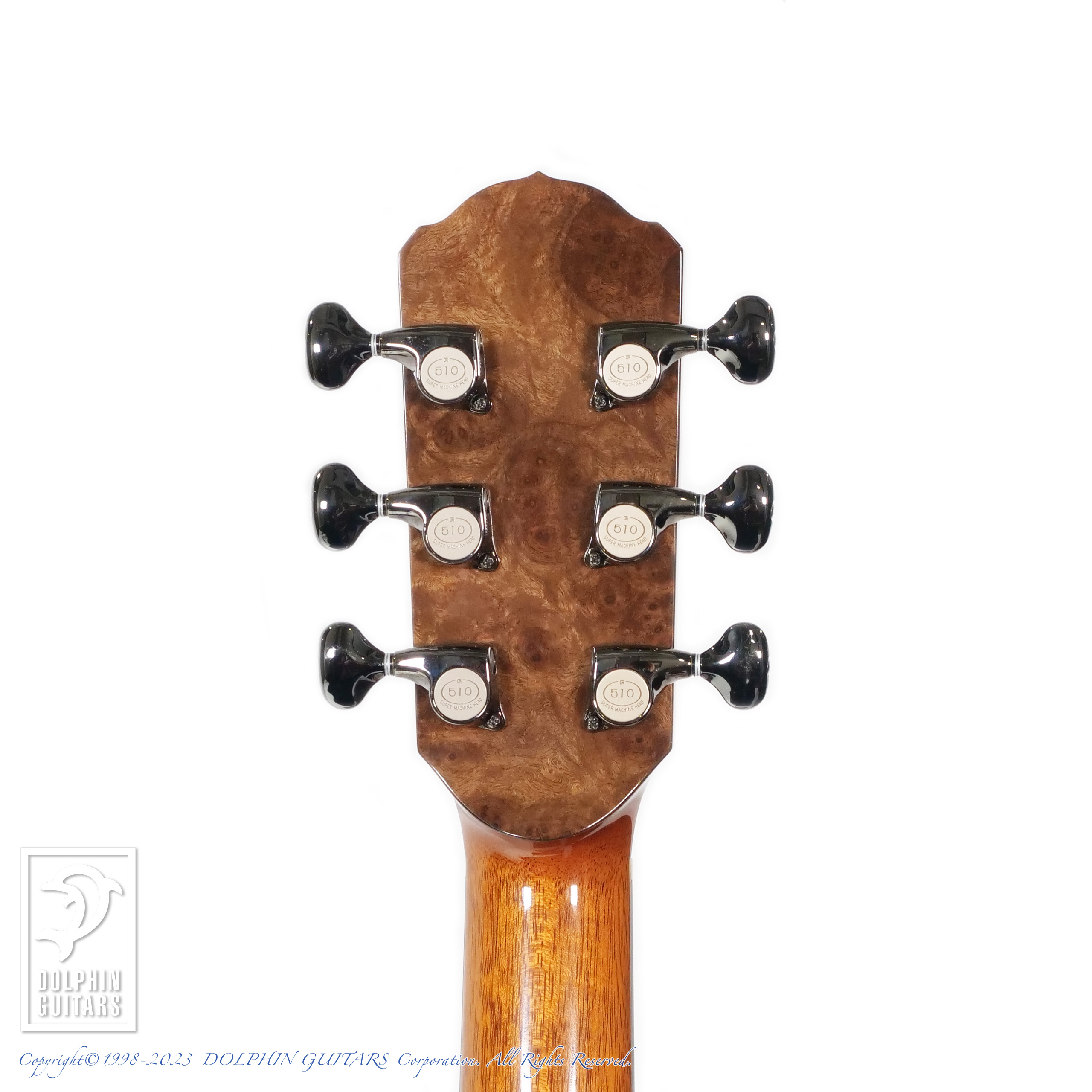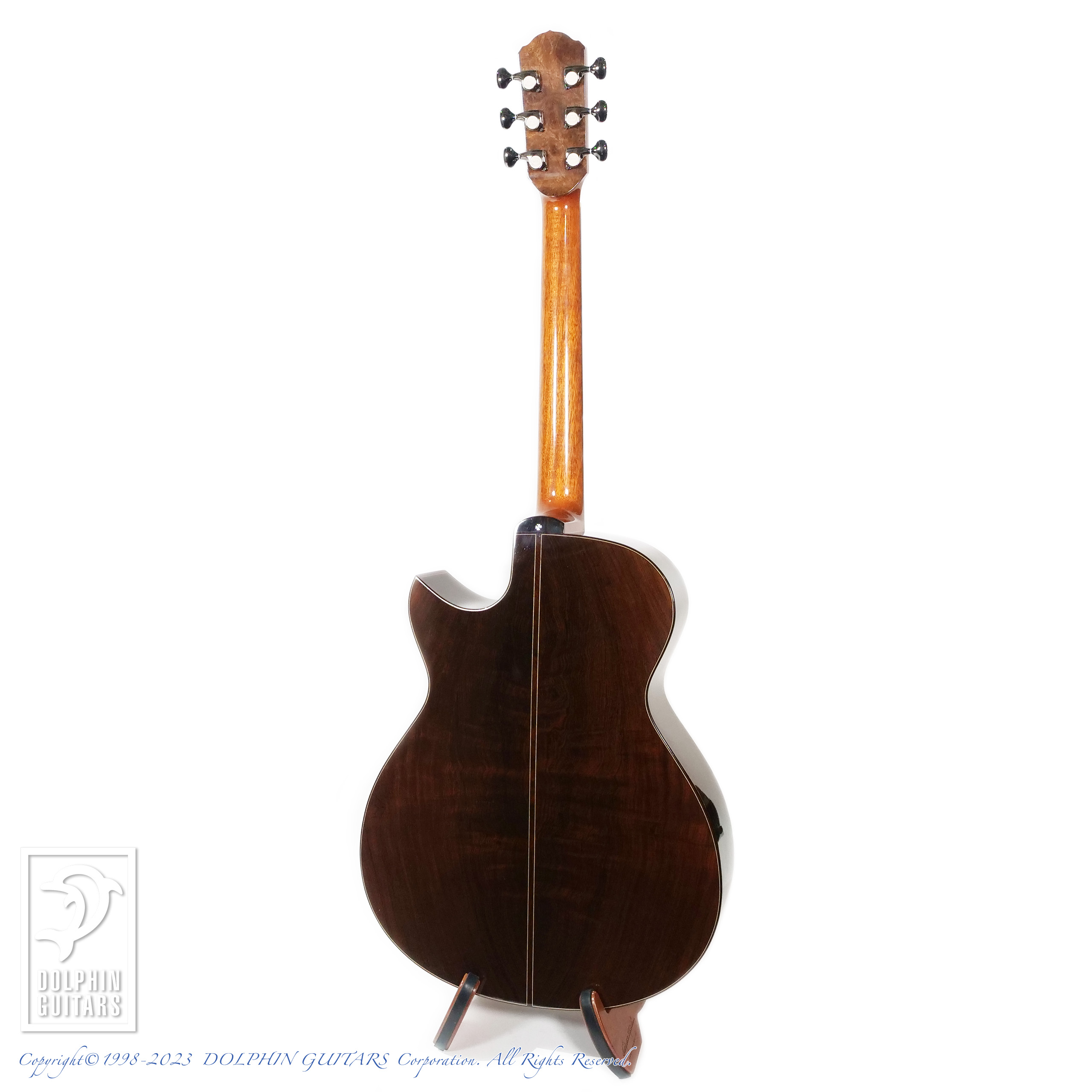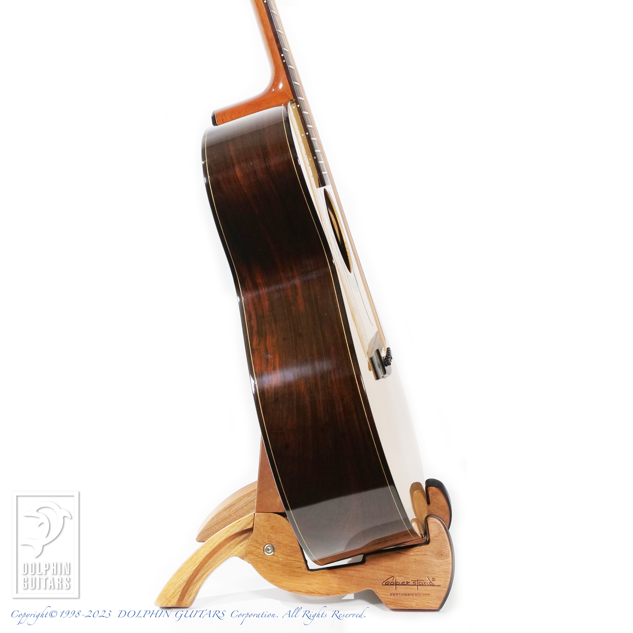 トップ、サイドバックの極上素材は当店秘蔵のプレミアムグレードの中より、亀岡氏自らがさらに厳選したものを使用します。サイドバックに加え、ヘッドプレート、指板、ブリッジに至るまで極上のハカランダを配したまさにスペシャルなショーモデルです。