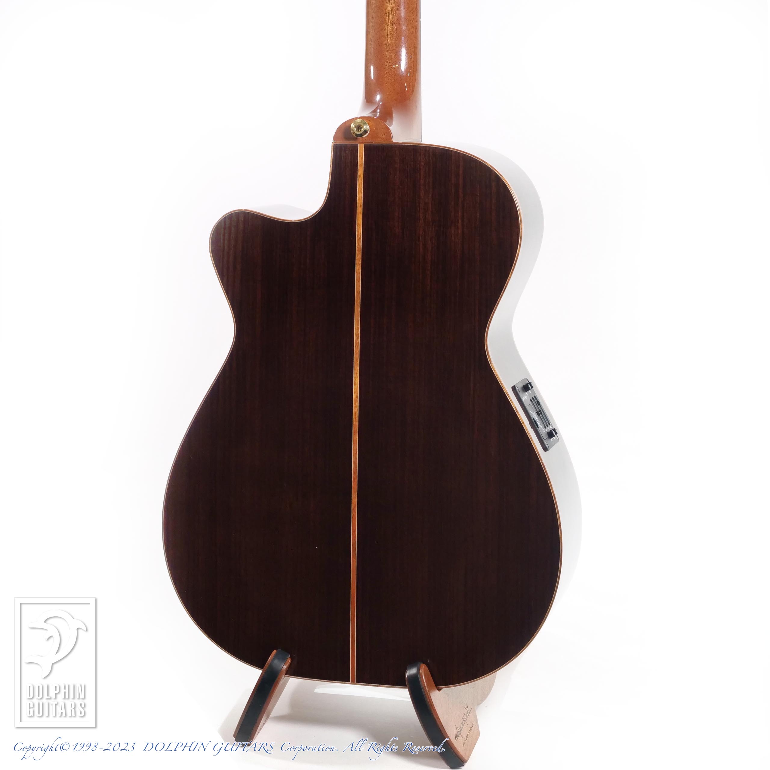ボディー幅は14-1/4"と000と00サイズの中間でありながら、4-3/4"というボディー厚がある為、抱え易い小柄でありながらも豊かなベース音を生み出します。