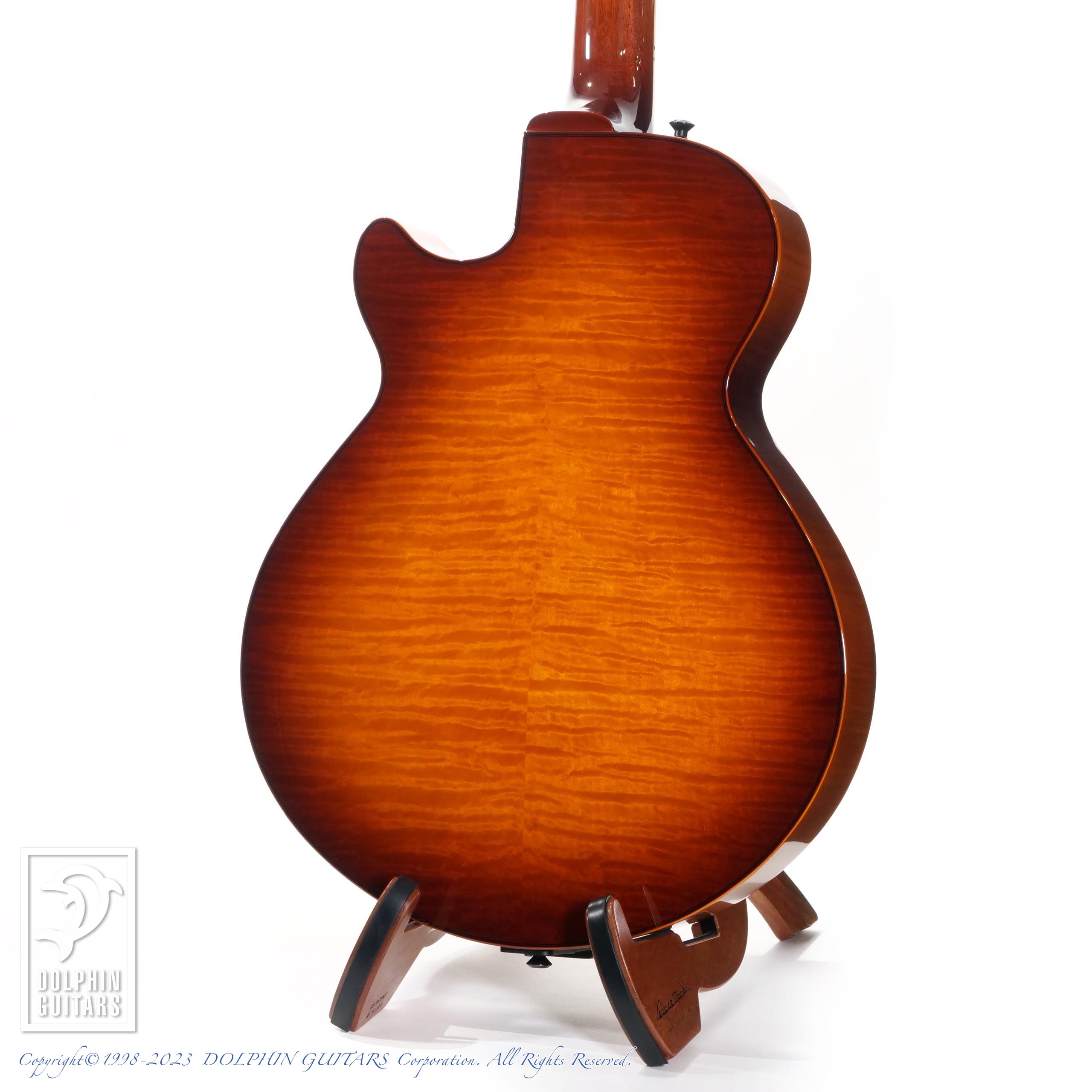 アーチトップとしては小ぶりな14.75インチ幅のボディを採用、ボディ厚は約70mmで、サドウスキーラインナップの中では、ギブソンで言うところのいわゆるES-175的ポジションを担っていたモデルです。その小さなボディからは想像できないほどのリッチで温かみに溢れたサウンドを特徴としています。取り回しや箱鳴り感が丁度良く、幅広く受け入れられるのも納得です。