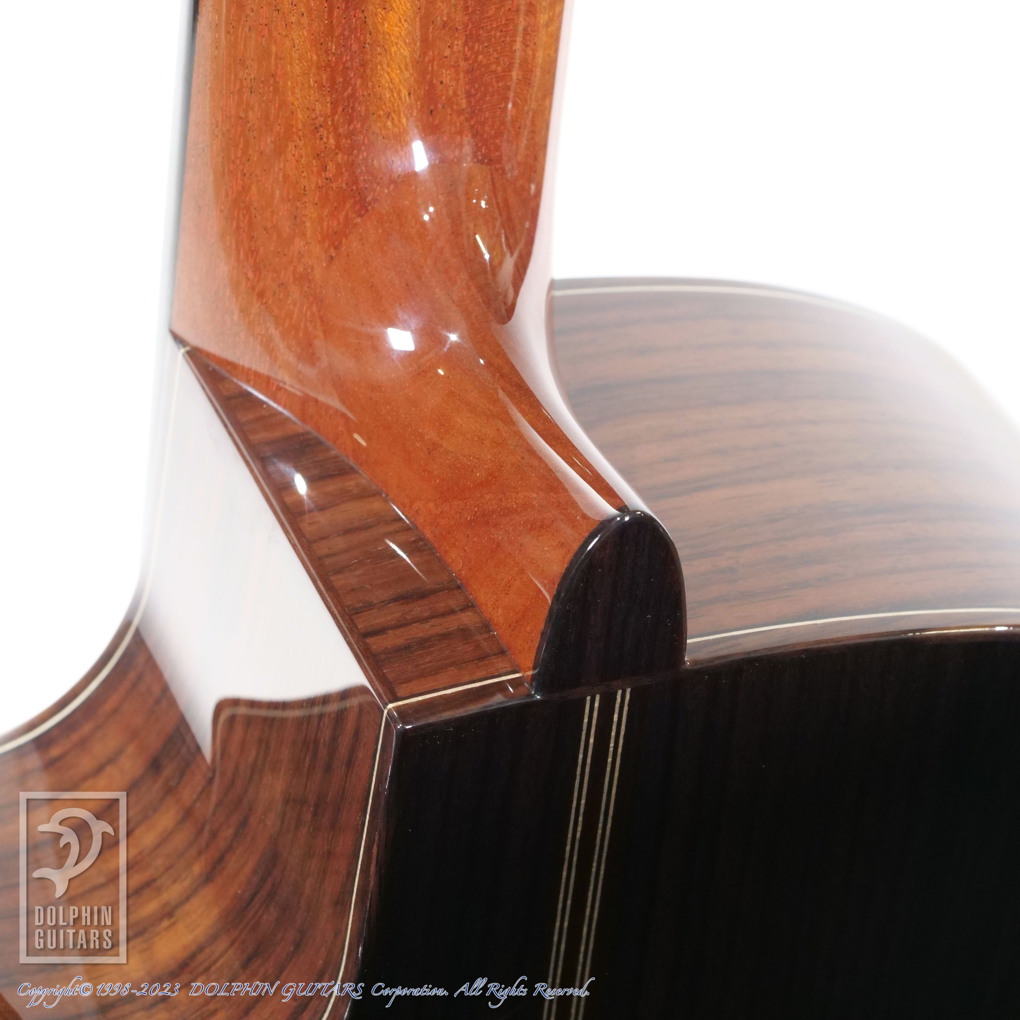 もとよりコンパクトボディならではのレスポンスの良さが特徴のモデルですが、バック板を単板にすることにより、より良い反応と音量感を楽しんでいただけます。シダー&ローズの甘くダイナミックなサウンドが心地良いギターです。