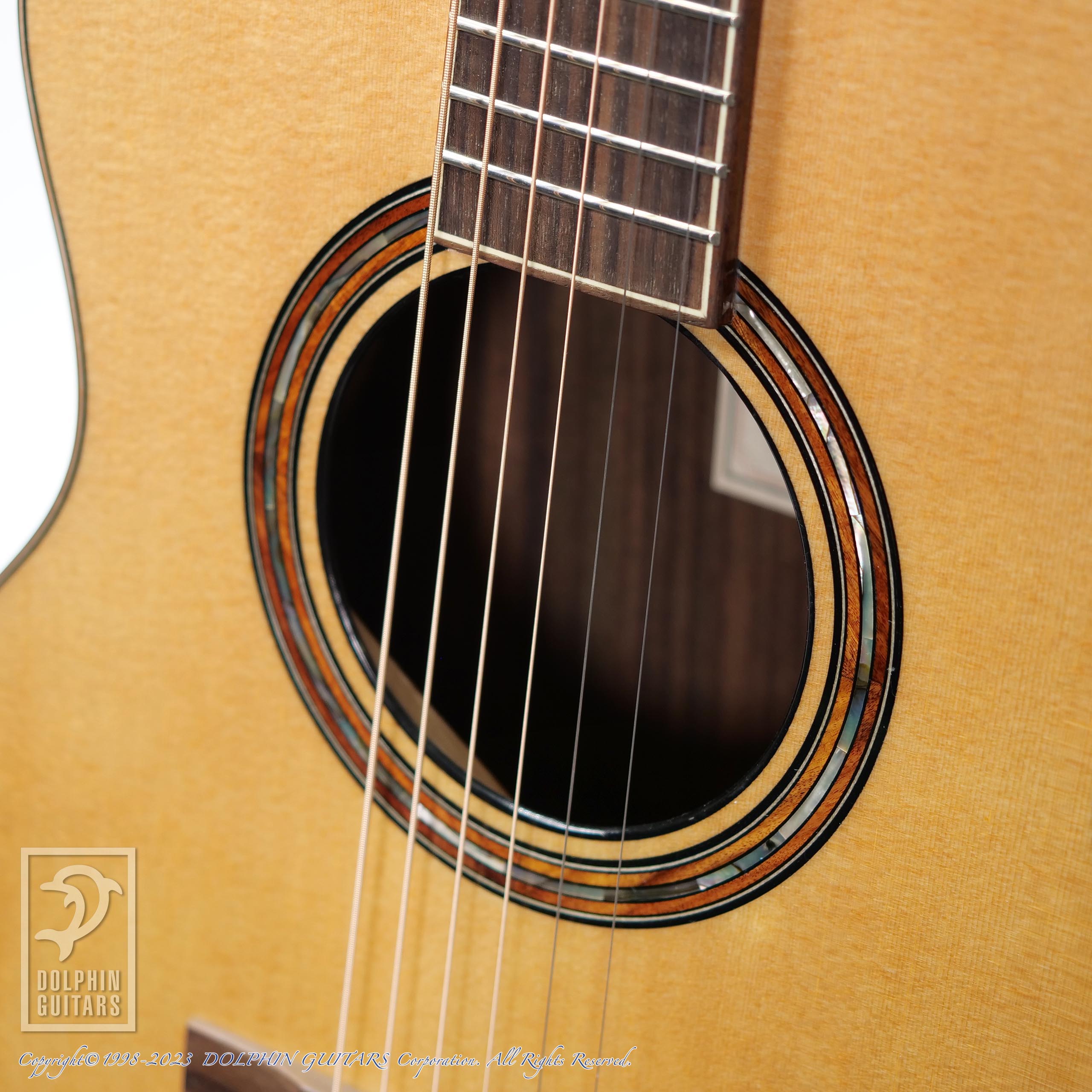 ヘッドから指板にかけて施されたインレイやサントスローズ&アバロン・ロゼッタは、どこかタイらしさを感じるデザインに仕上がっており、フォンゾギターのセンスを感じさせます。