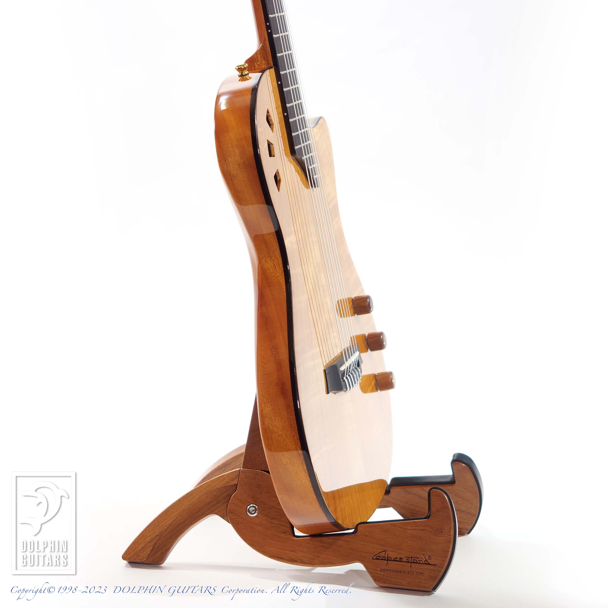 本器は、あらゆるステージに対応し、ナイロンギターのデザインに革命を起こすべく、何年もかけて開発・製作された STAGE GUITAR (NATURAL AMBER)。