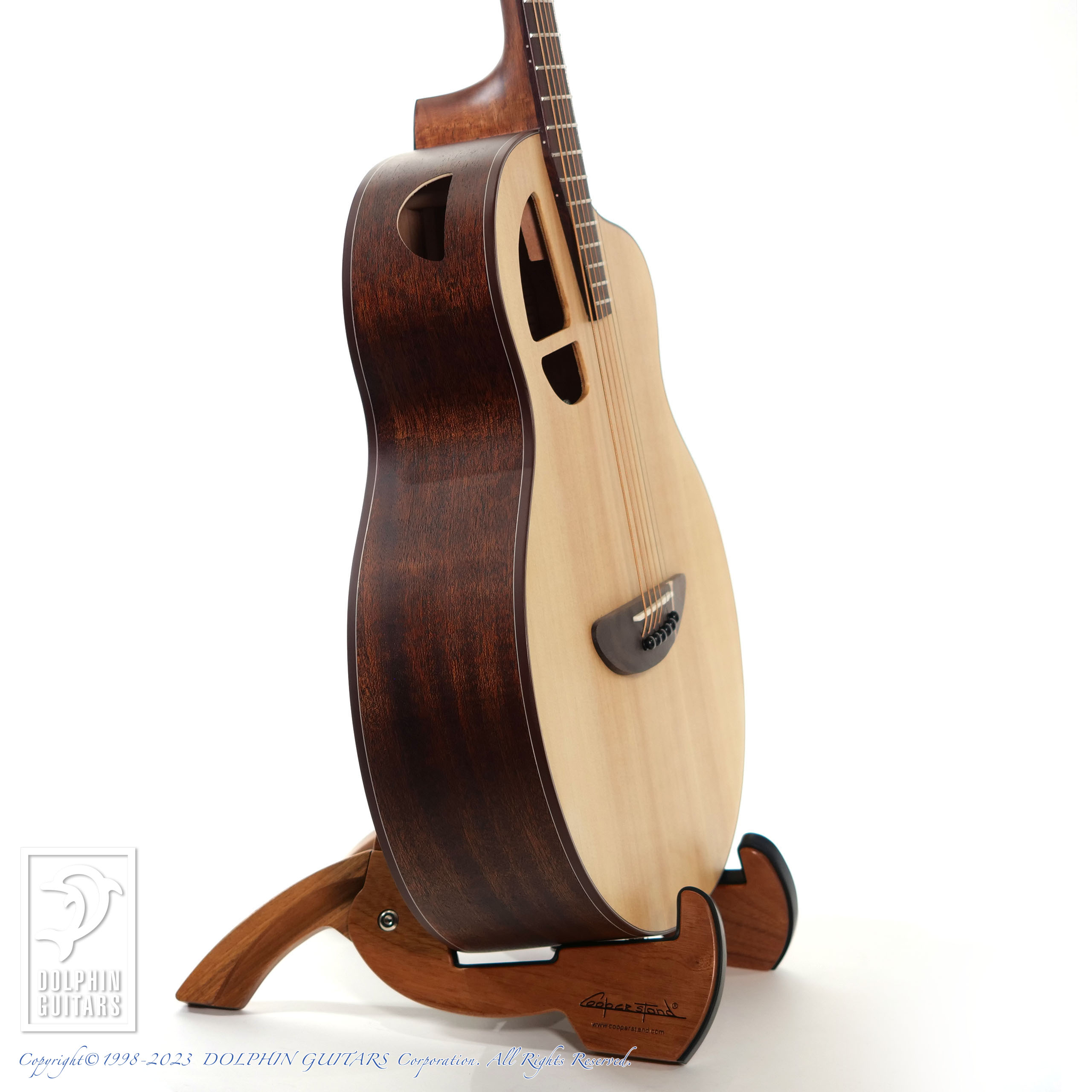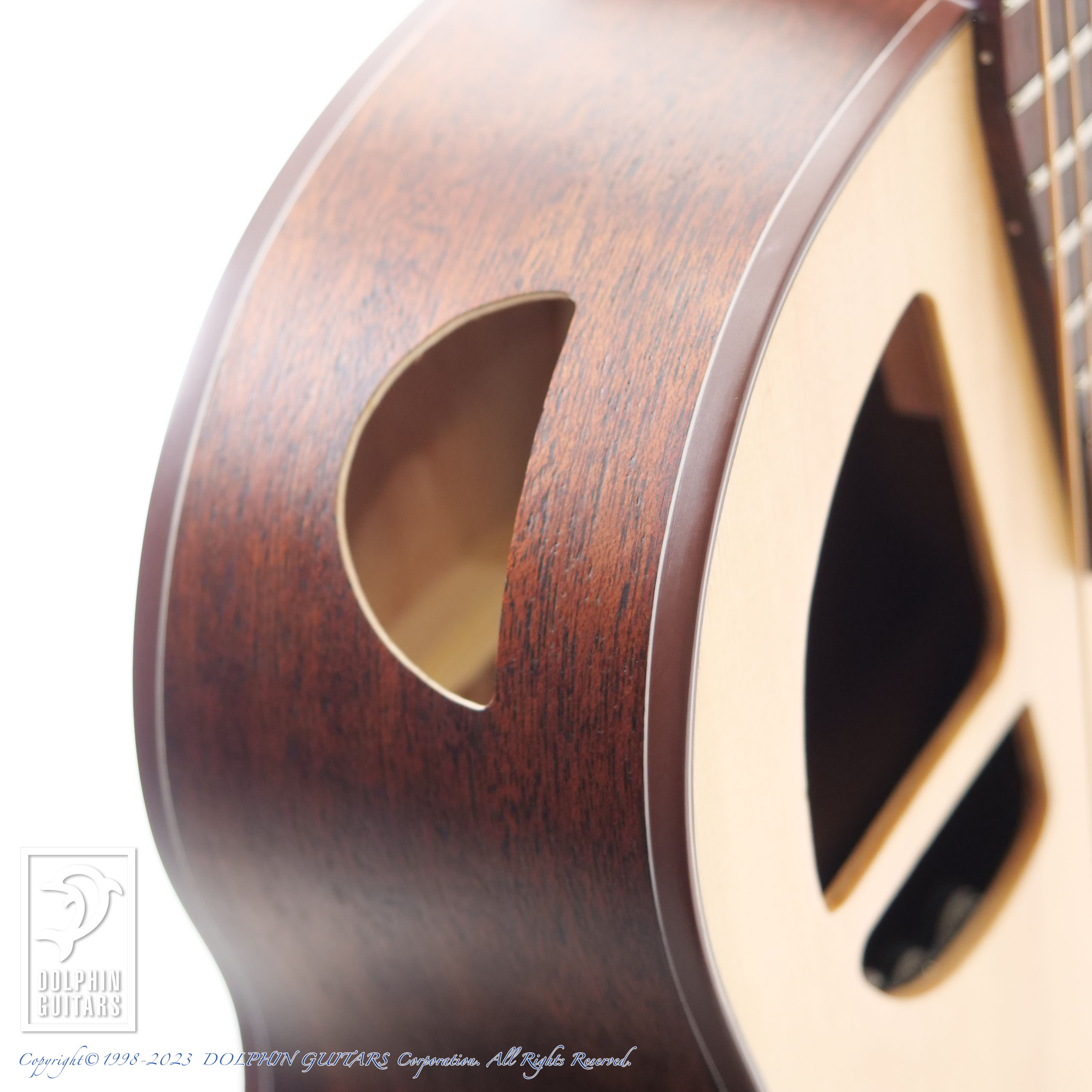 個性的なサウンドホールとボディサイドに開けられたサウンドポートにより、演奏者自身が音に包み込まれるようなサラウンド効果を生み出し、豊かな音量感を感じる事ができます。