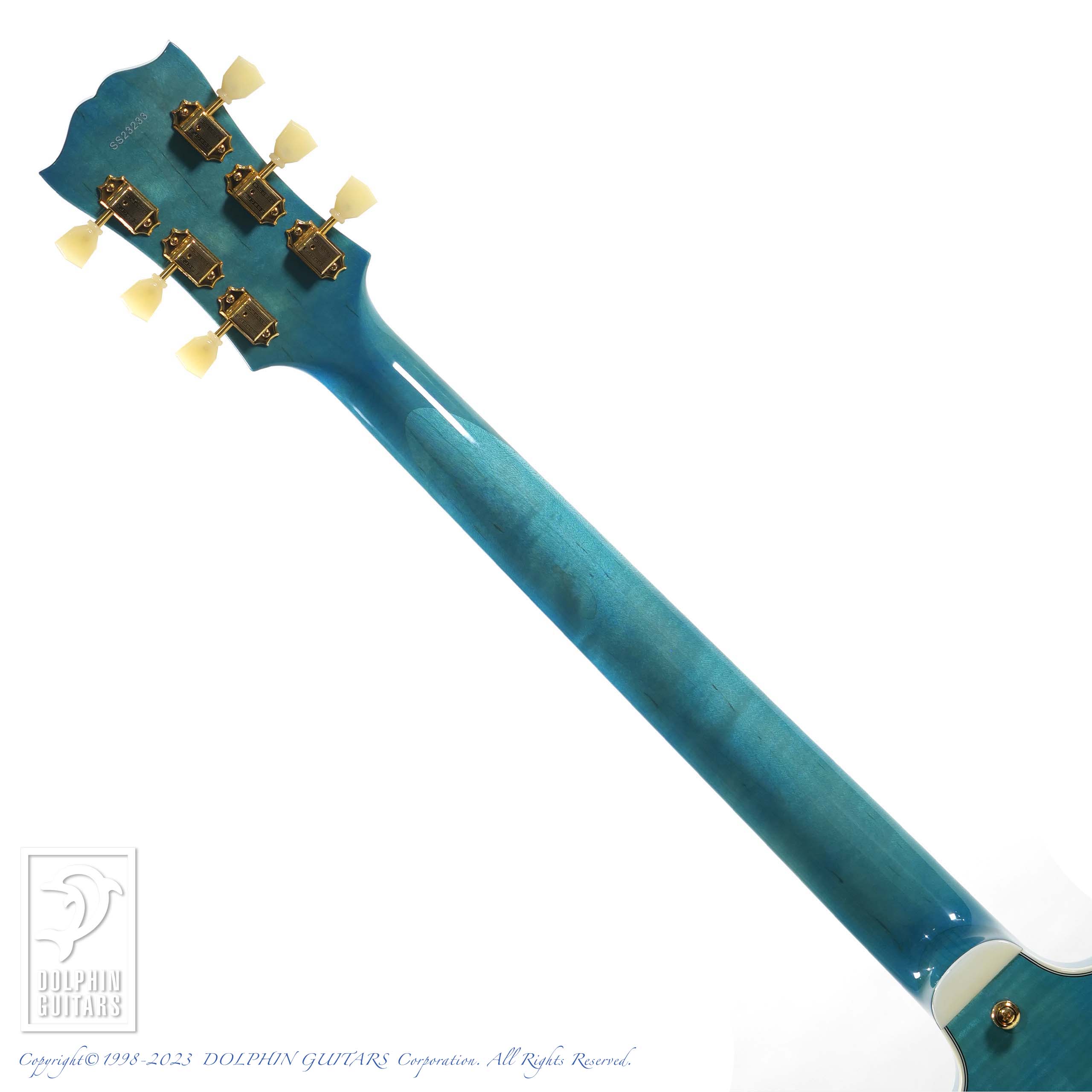 スタンダードモデルとの違いはそのルックス。ボディには美しいフレイムメイプルを使用、ゴールドパーツやパールホワイトのインレイとの組み合わせは、高級感を感じさせる佇まいとなっております。また、“77”を図案化したオリジナルのヘッドインレイは、バインディングと組み合わせてスタンダードモデルには無い雰囲気が漂います。
