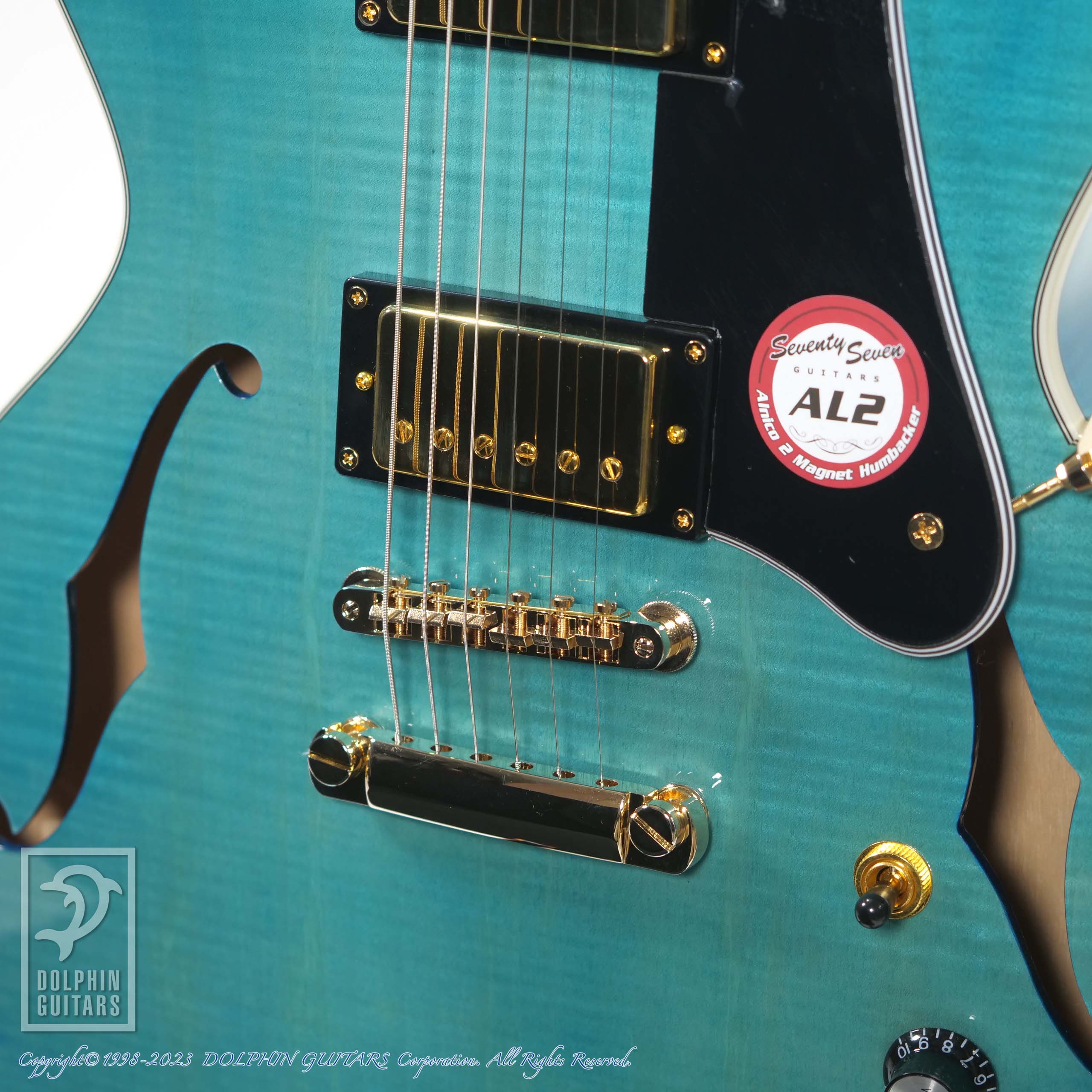 アルニコ2マグネットを採用したSeventySevenオリジナルピックアップ、 「SeventySeven AL2」を搭載。クリーントーンではきらびやかな鈴鳴り感を表現しつつも耳に痛くない暖かさを併せ持ち、ドライブをかけると歯切れの良いエッジの効いたクランチサウンドを出力します。プレイヤーの創造力を膨らませて豊かな演奏表現を生み出します。