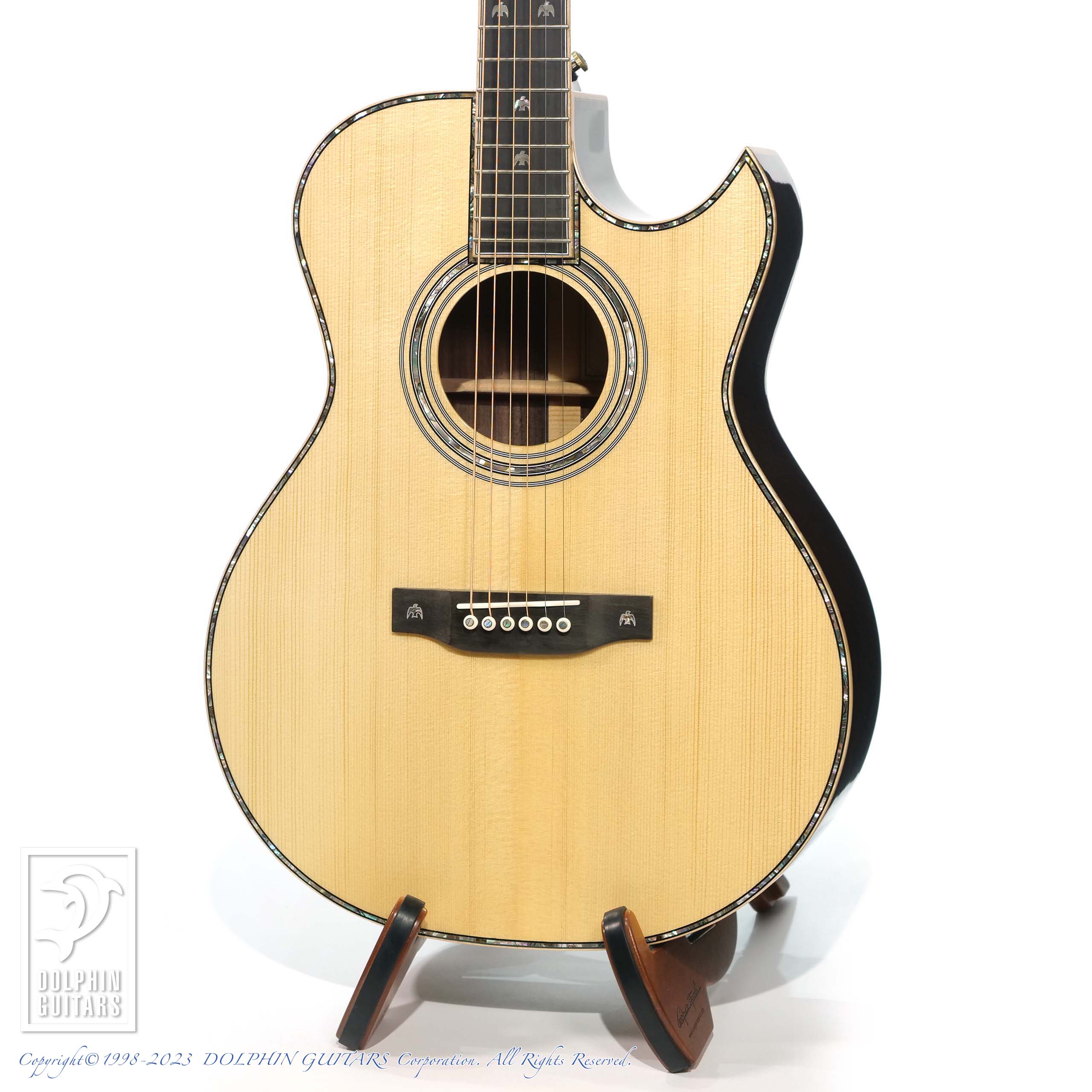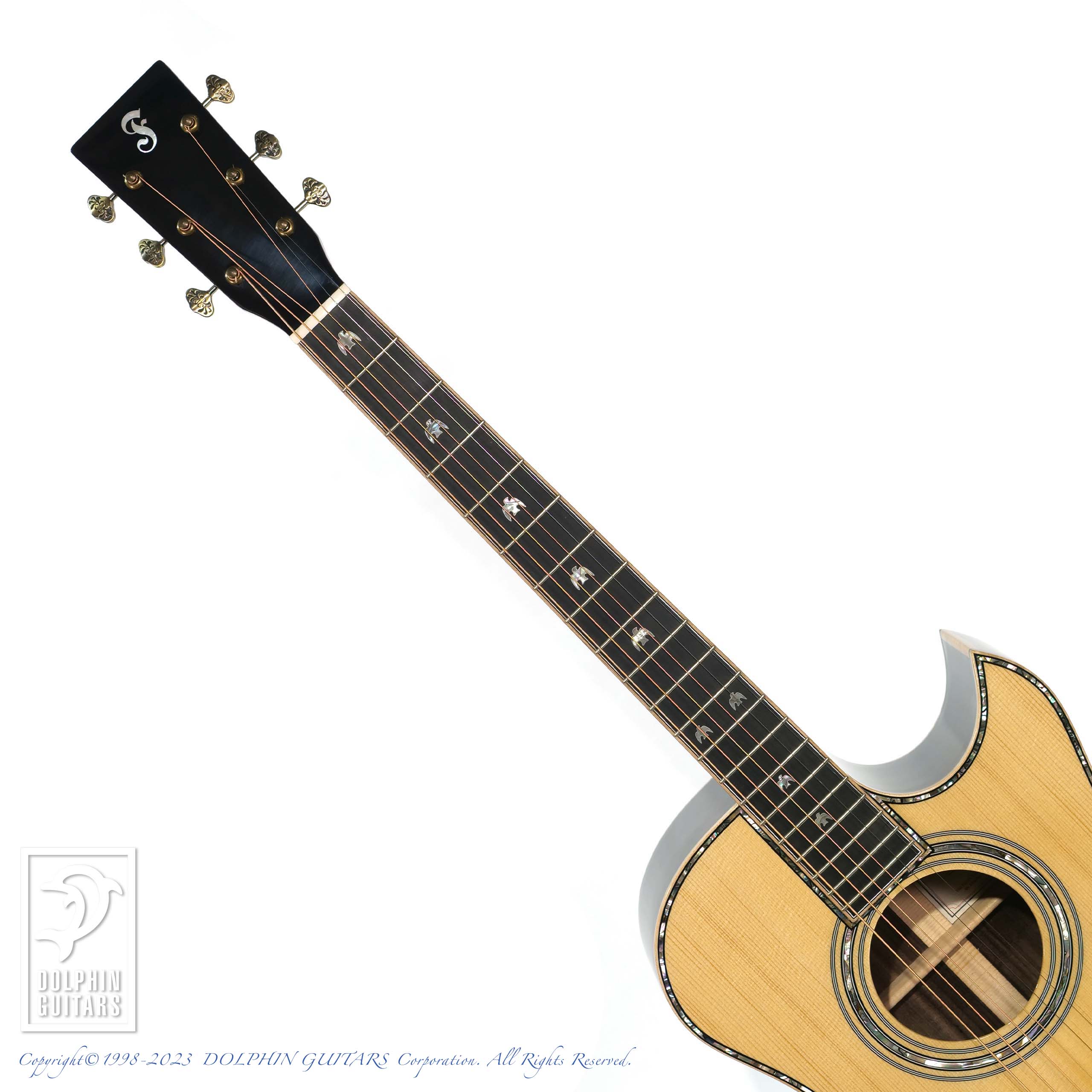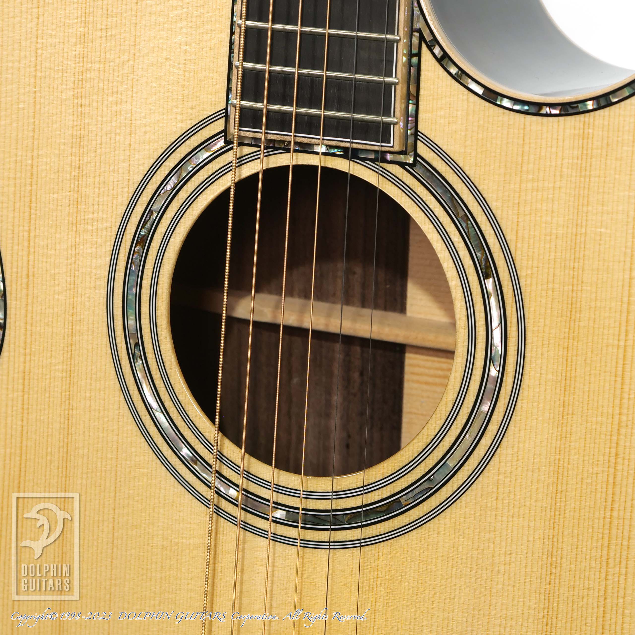 その他:43mmナット幅、648mmスケール、牛骨ナット&サドル、スキャロップドXブレーシング、アバロンロゼッタ&パーフリング、メイプルウッドバインディング