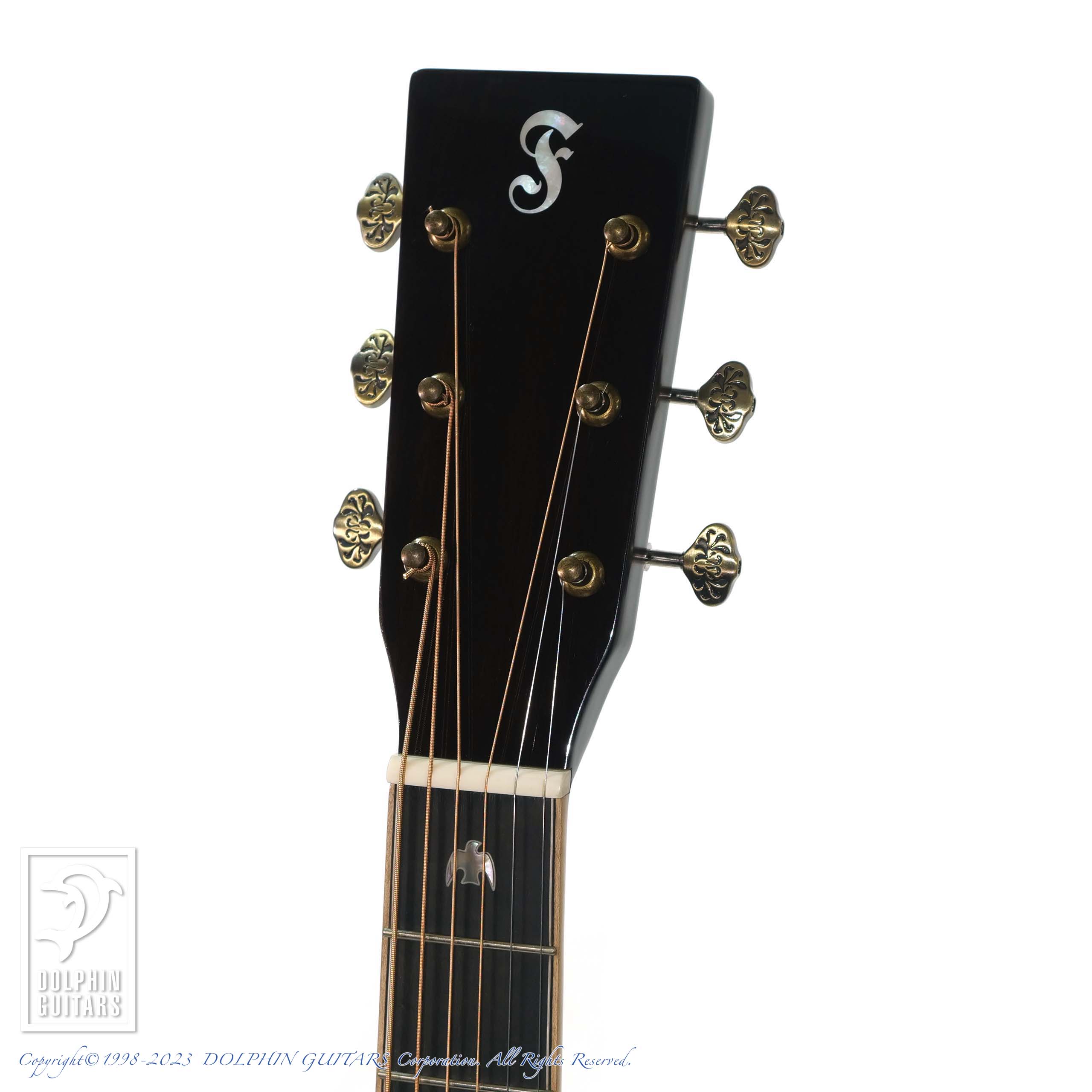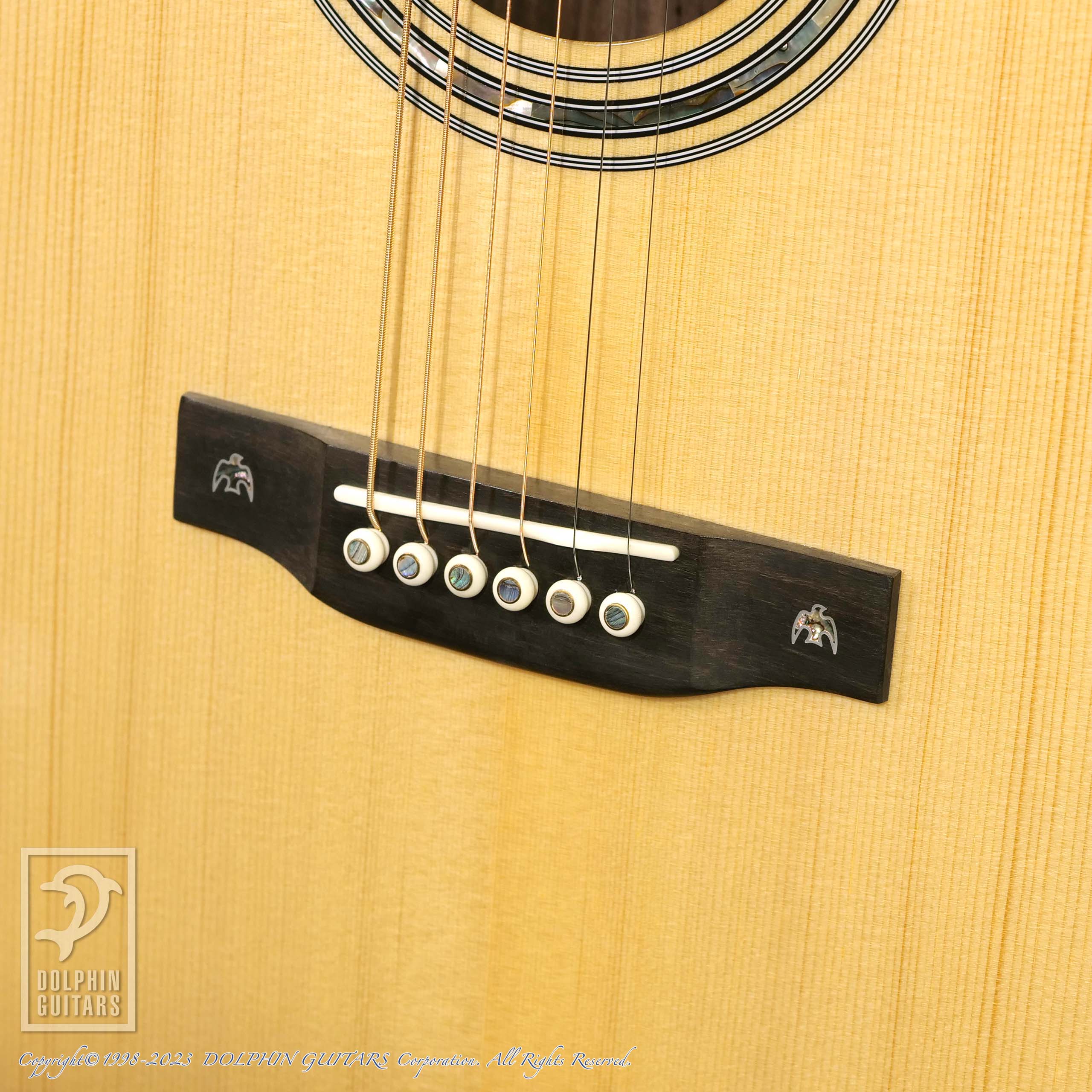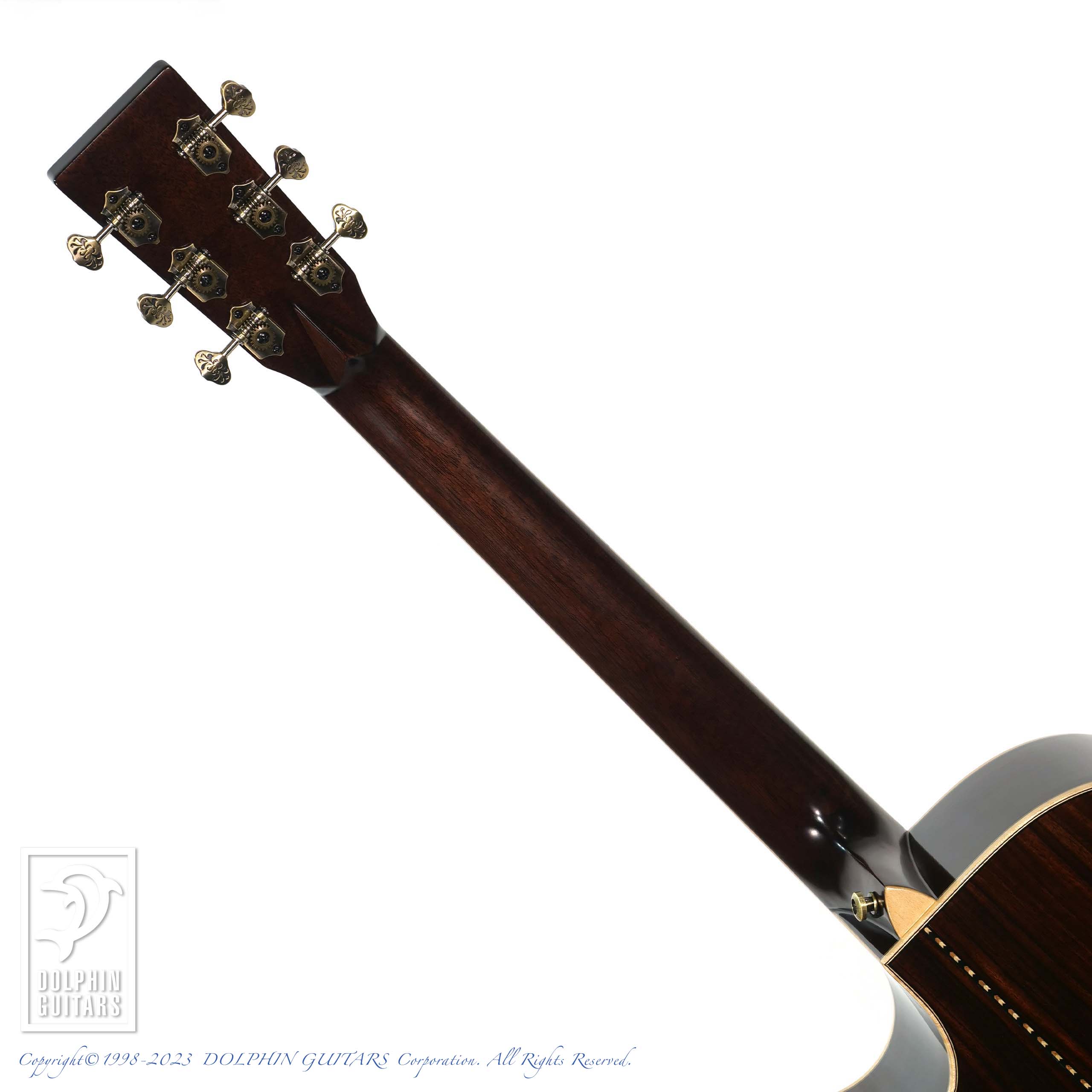 その他:43mmナット幅、648mmスケール、牛骨ナット&サドル、スキャロップドXブレーシング、アバロンロゼッタ&パーフリング、メイプルウッドバインディング