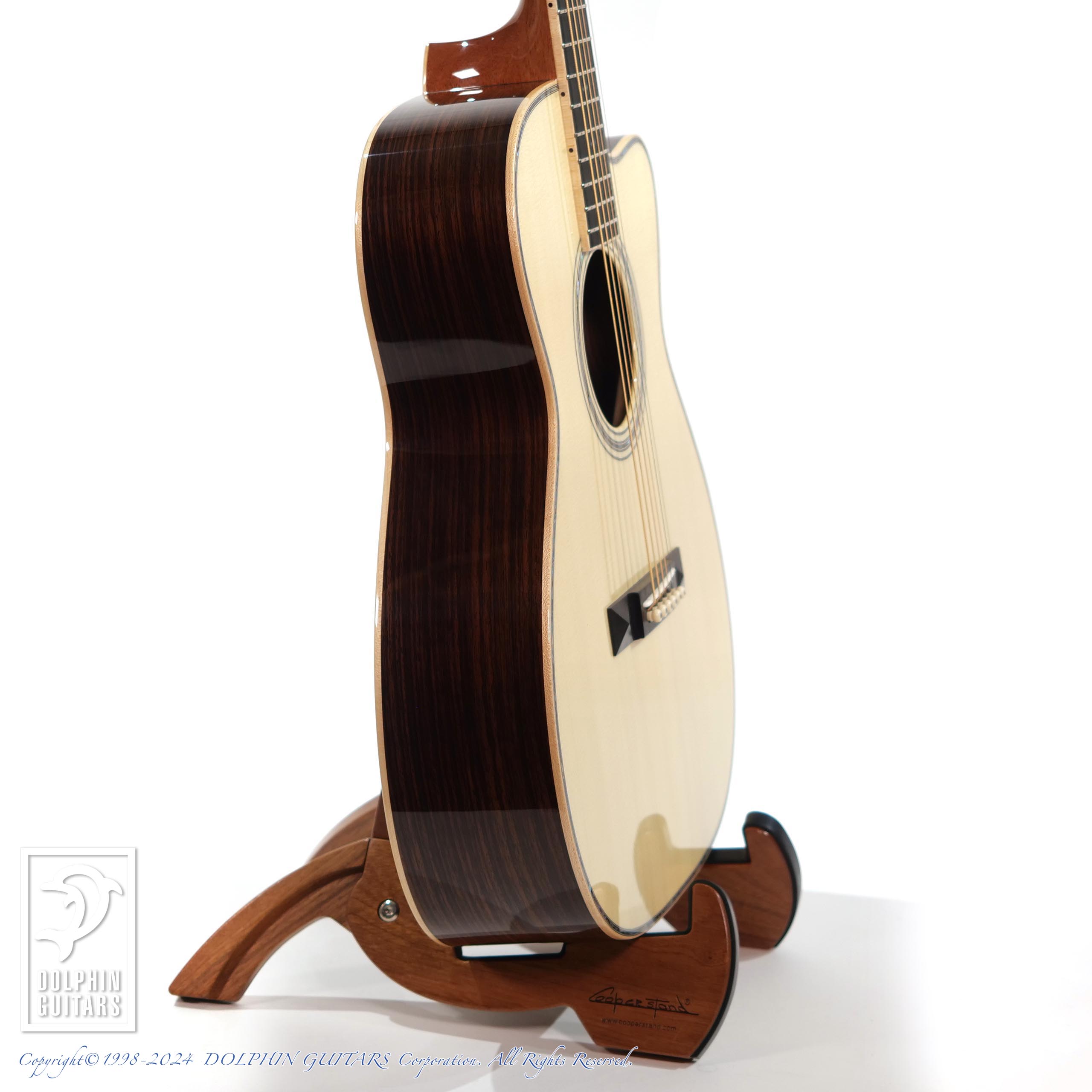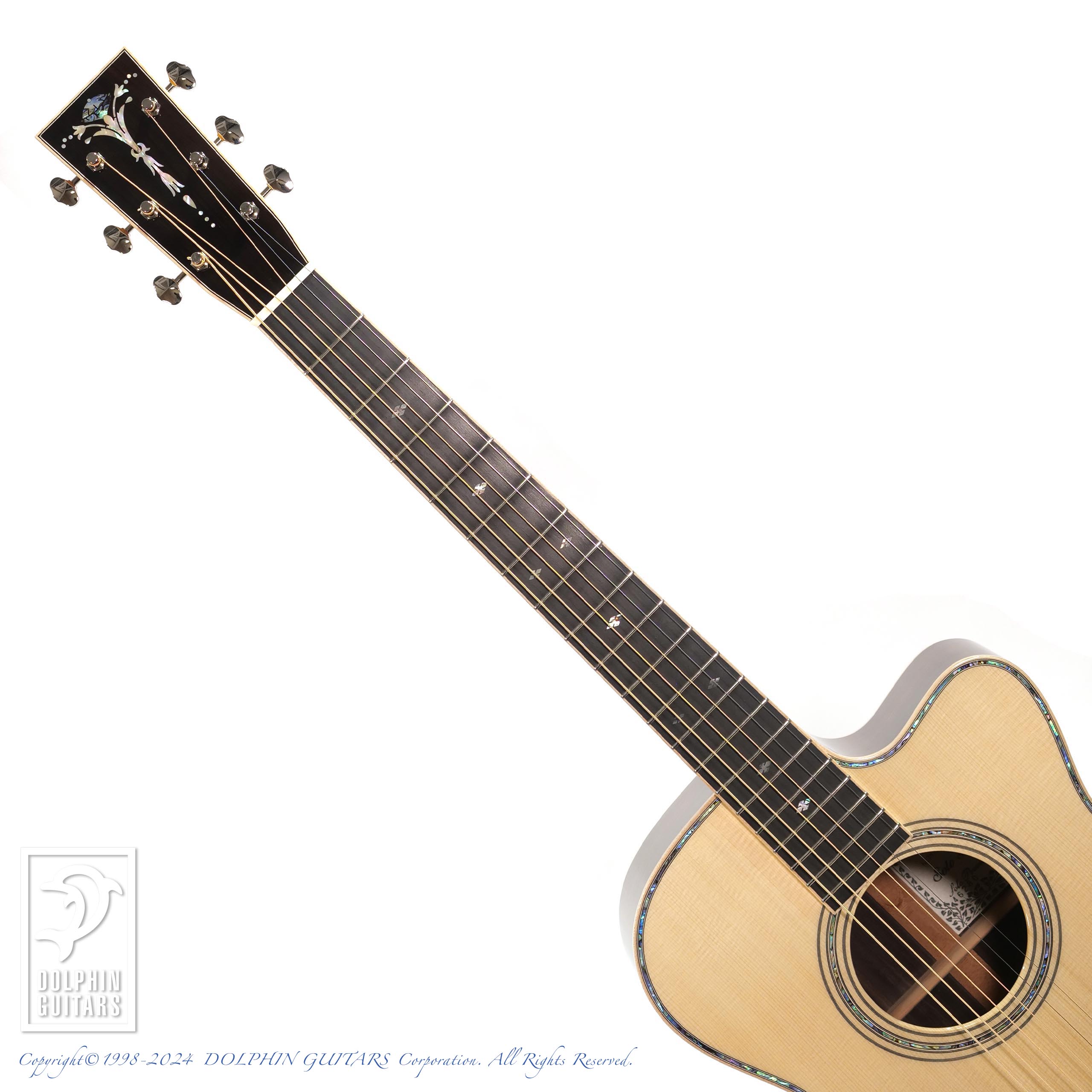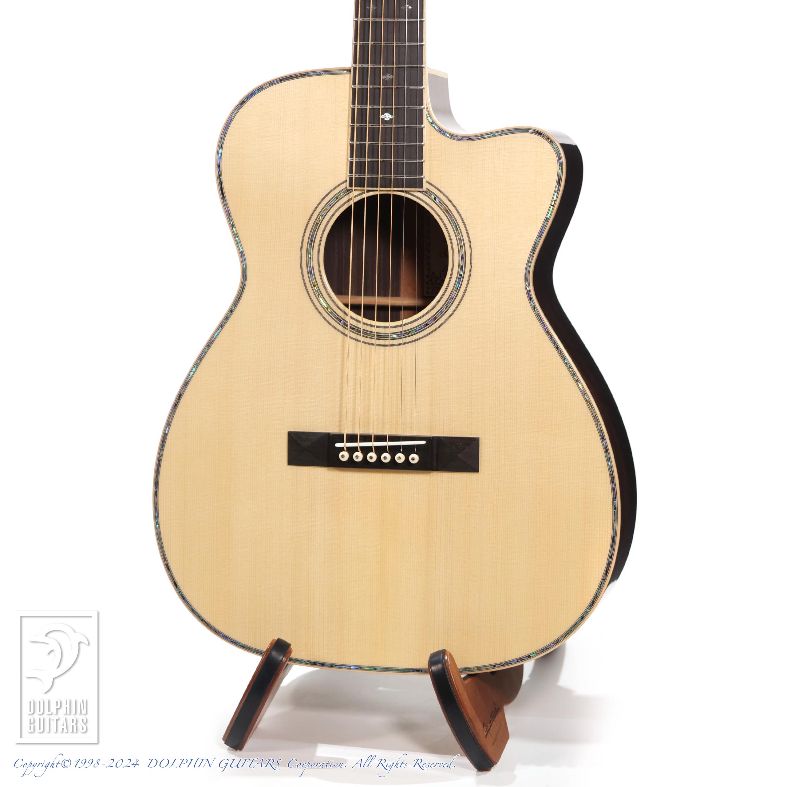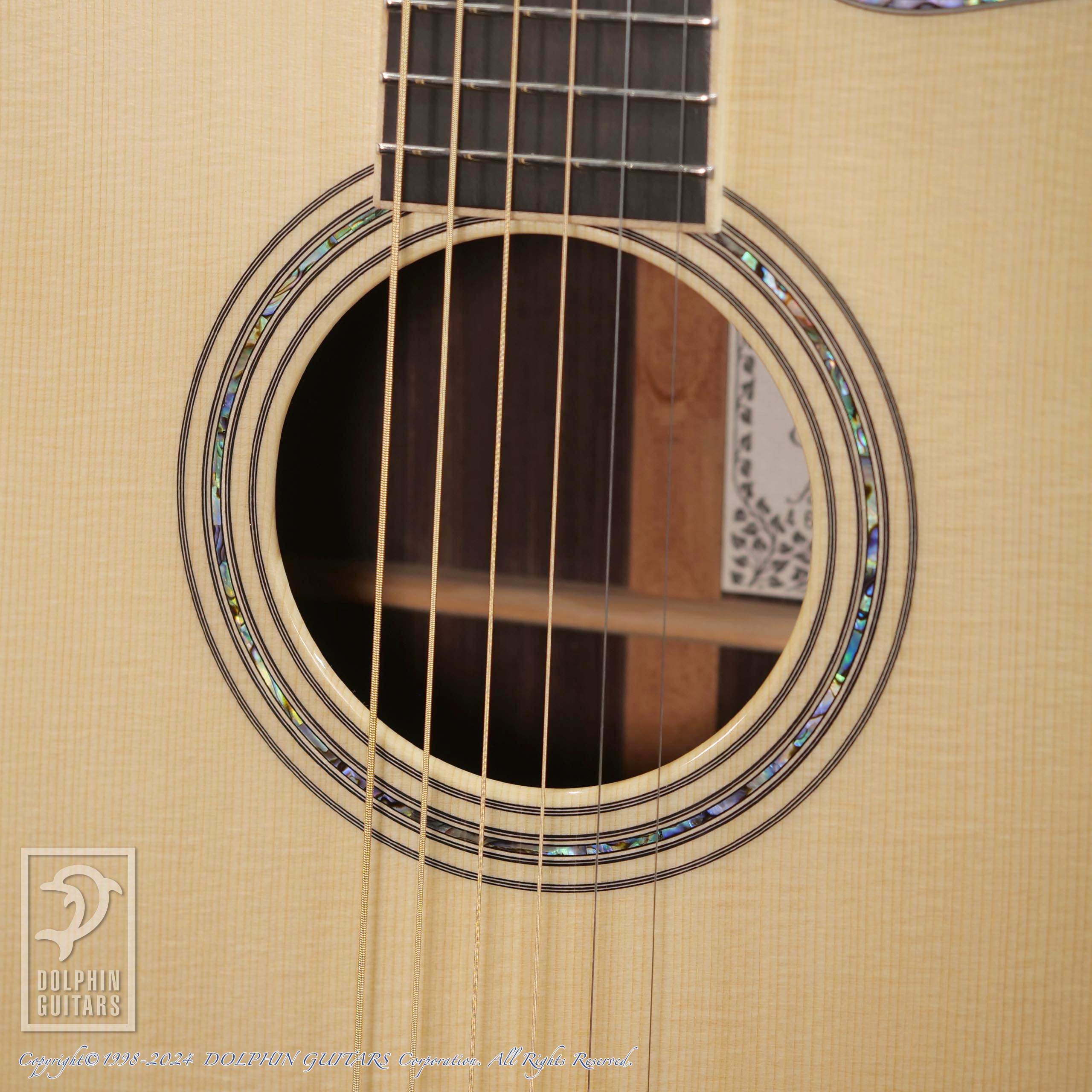 その他:ベネチアンカッタウェイ、45mmナット幅、645.2mmスケール、牛骨ナット・サドル、アバロントリム、メイプルバインディング、アバロンロゼッタ、ラッカーグロスフィニッシュ