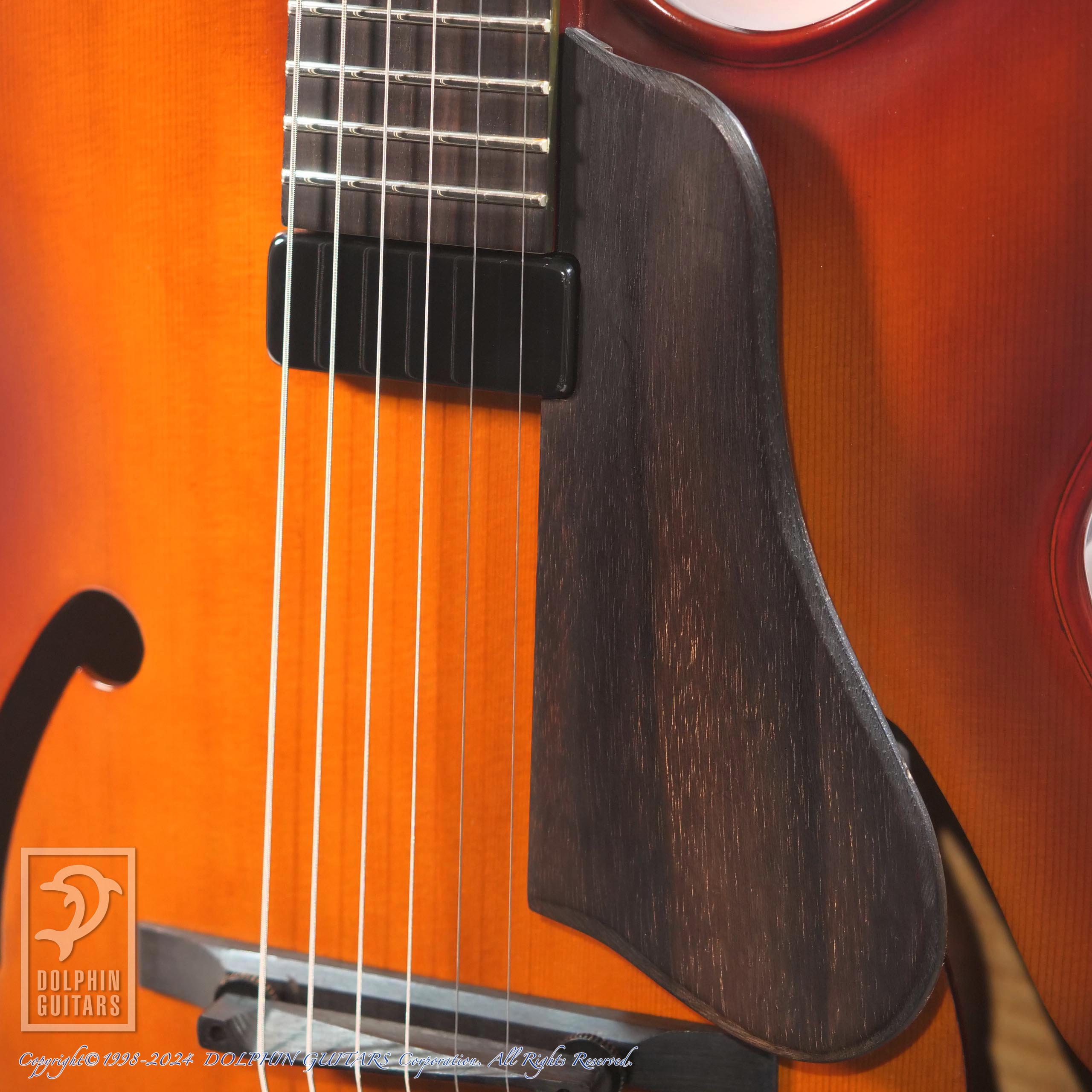 伝統的なバイオリン工法から生まれた美麗な職人の削り出しによるフルアコースティックギター。17インチサイズのボディはバイオリンを作る工程と同様に、トップ、バックは職人の手によって削り出されています。強度を高めた5plyネックにエボニーフィンガーボード、ふくよかなボディの鳴りを活かすためにオリジナルのフローティングピックアップLS-JFを開発して搭載。バイオリンと同様ホディの鳴りを優先するニス仕上げを採用し、アンティークバイオリンのような高級感と、プレス材では得られない艶やかで豊かなトーンを獲得しています。