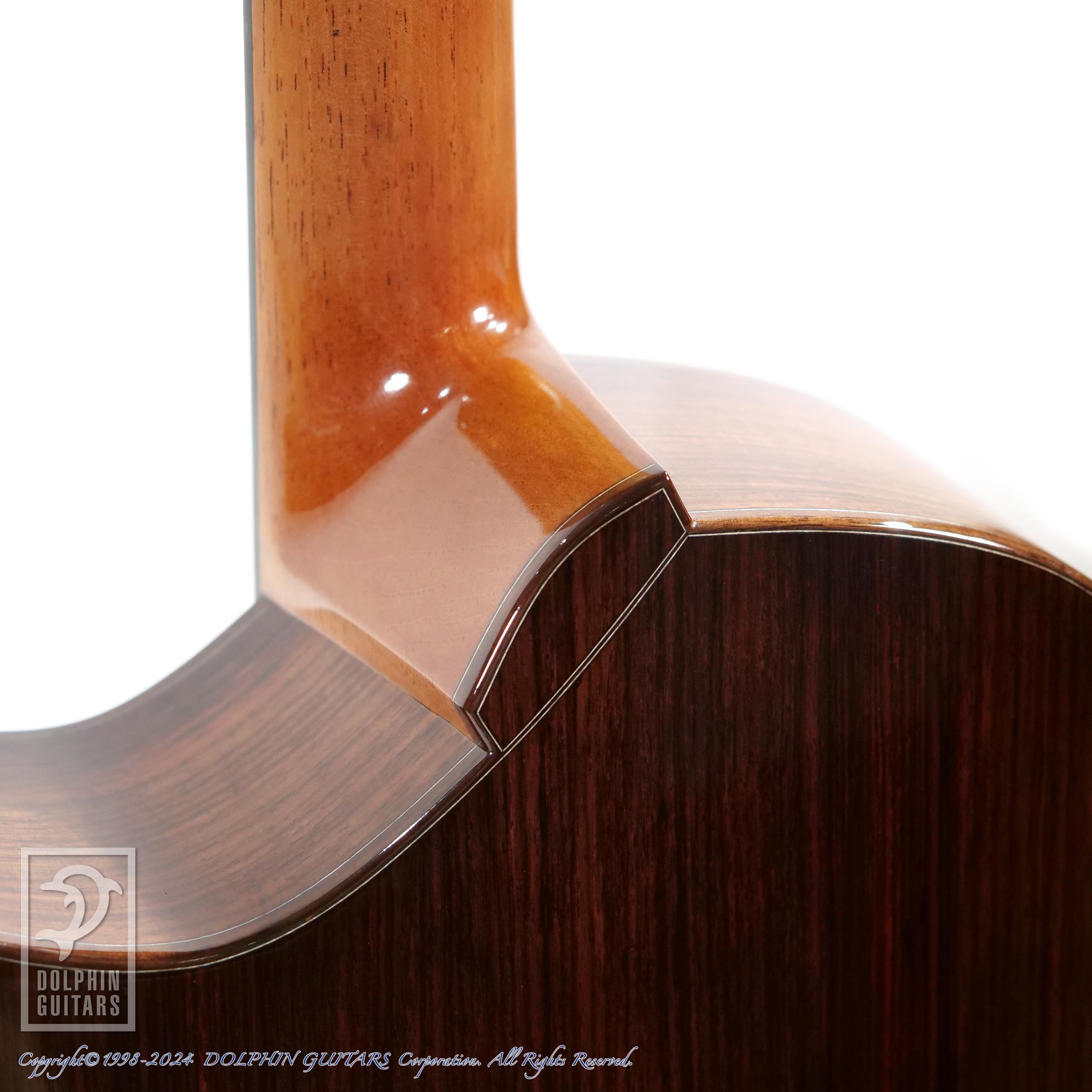 ネック幅は49mmに設定、藤井氏はネックのエッジを非常に丁寧に面取りして仕上げるため、実際にはもう少し細く感じます。滑らかな感触は低くセッティングされた弦高と相まって大変スムーズです。