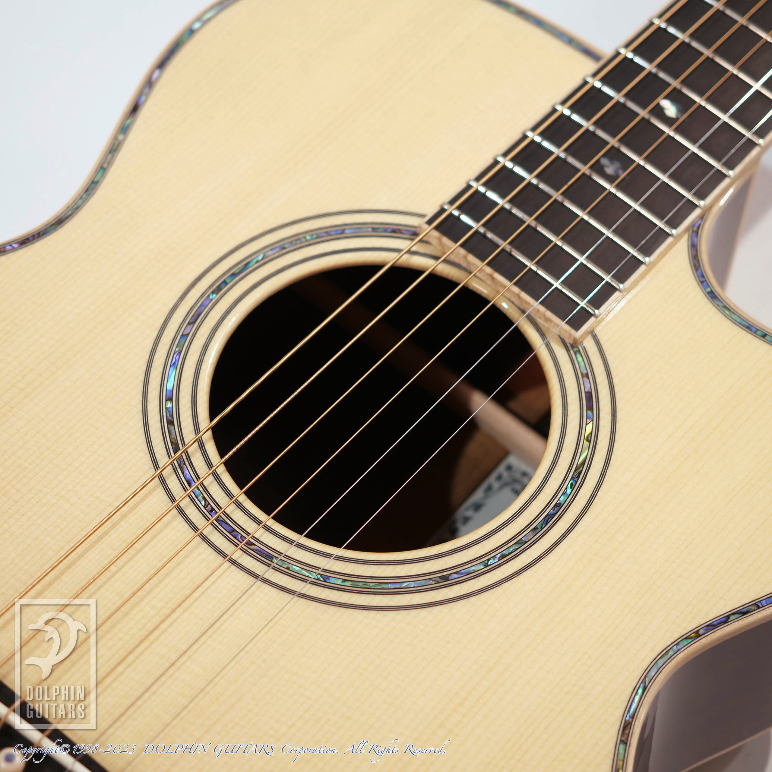 その他:ベネチアンカッタウェイ、45mmナット幅、645.2mmスケール、牛骨ナット・サドル、アバロントリム、メイプルバインディング、アバロンロゼッタ、ラッカーグロスフィニッシュ