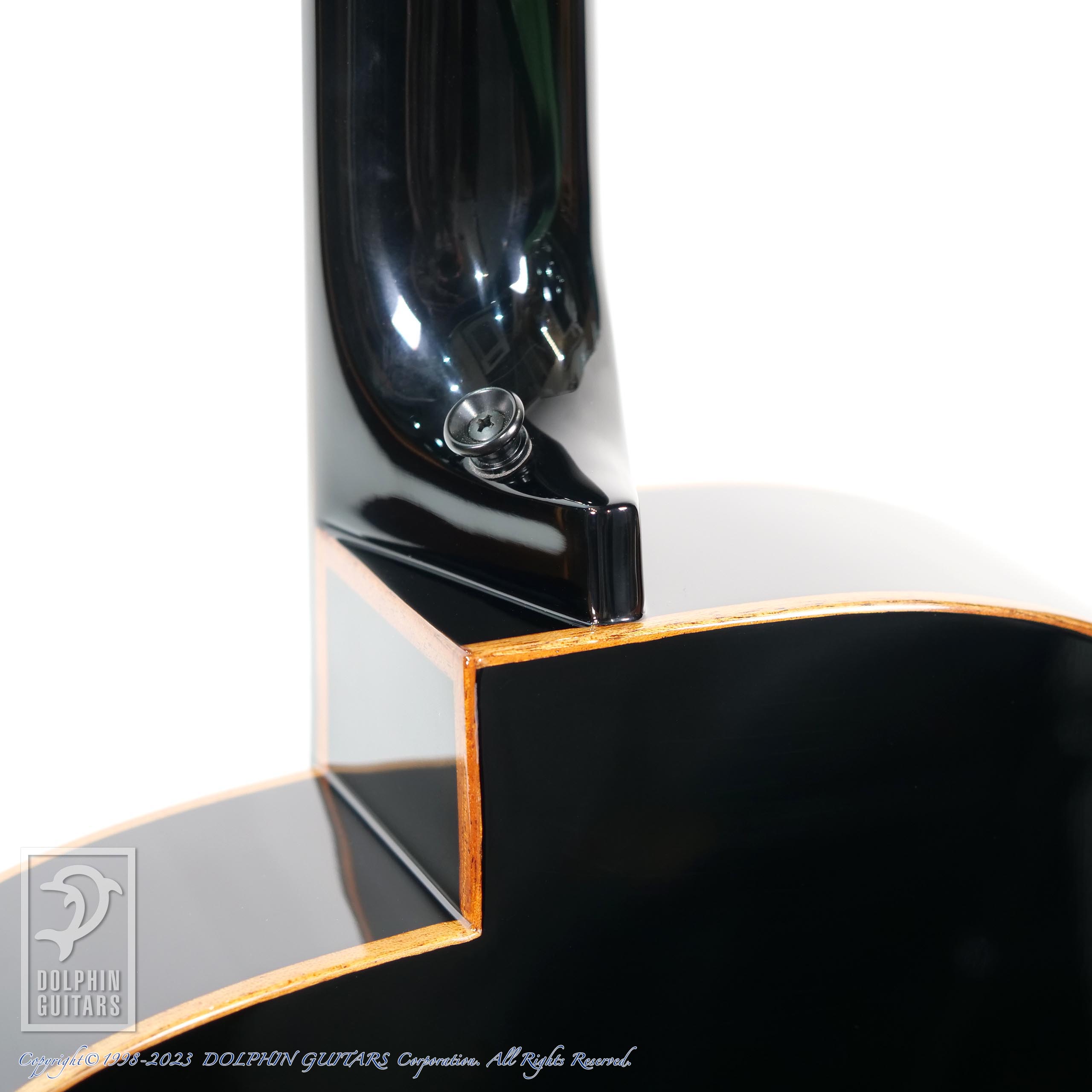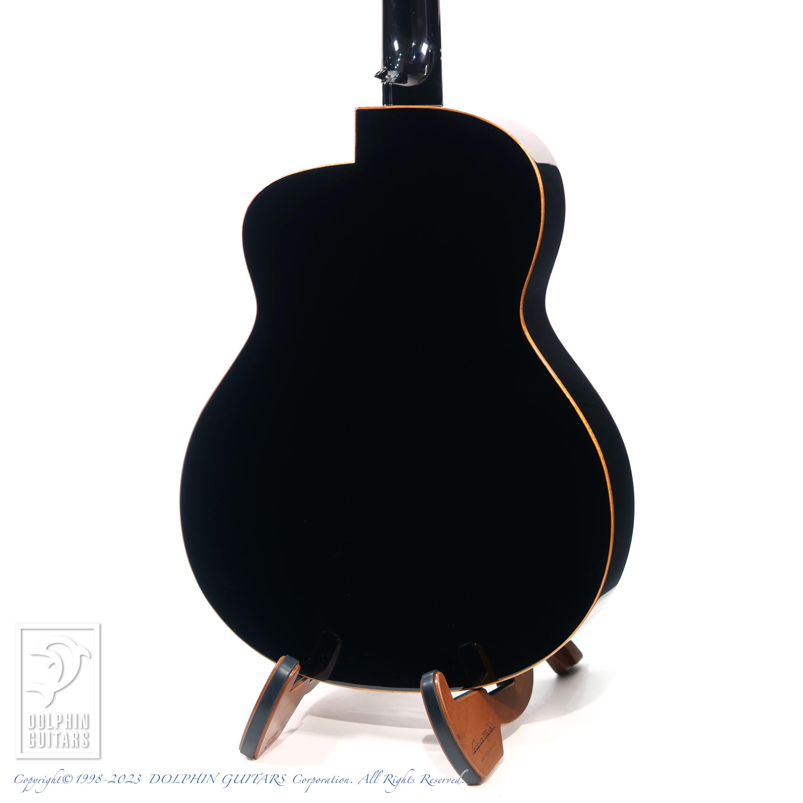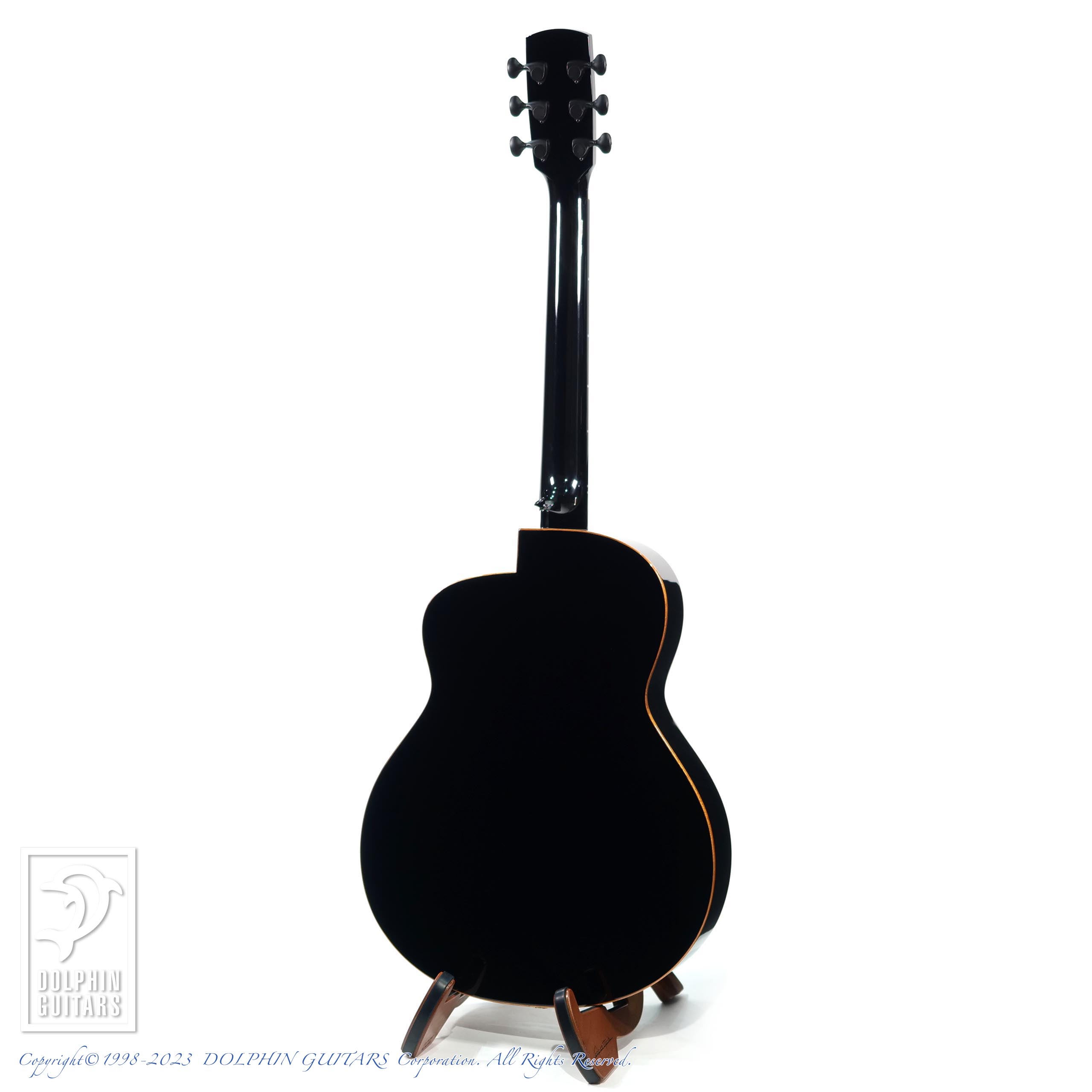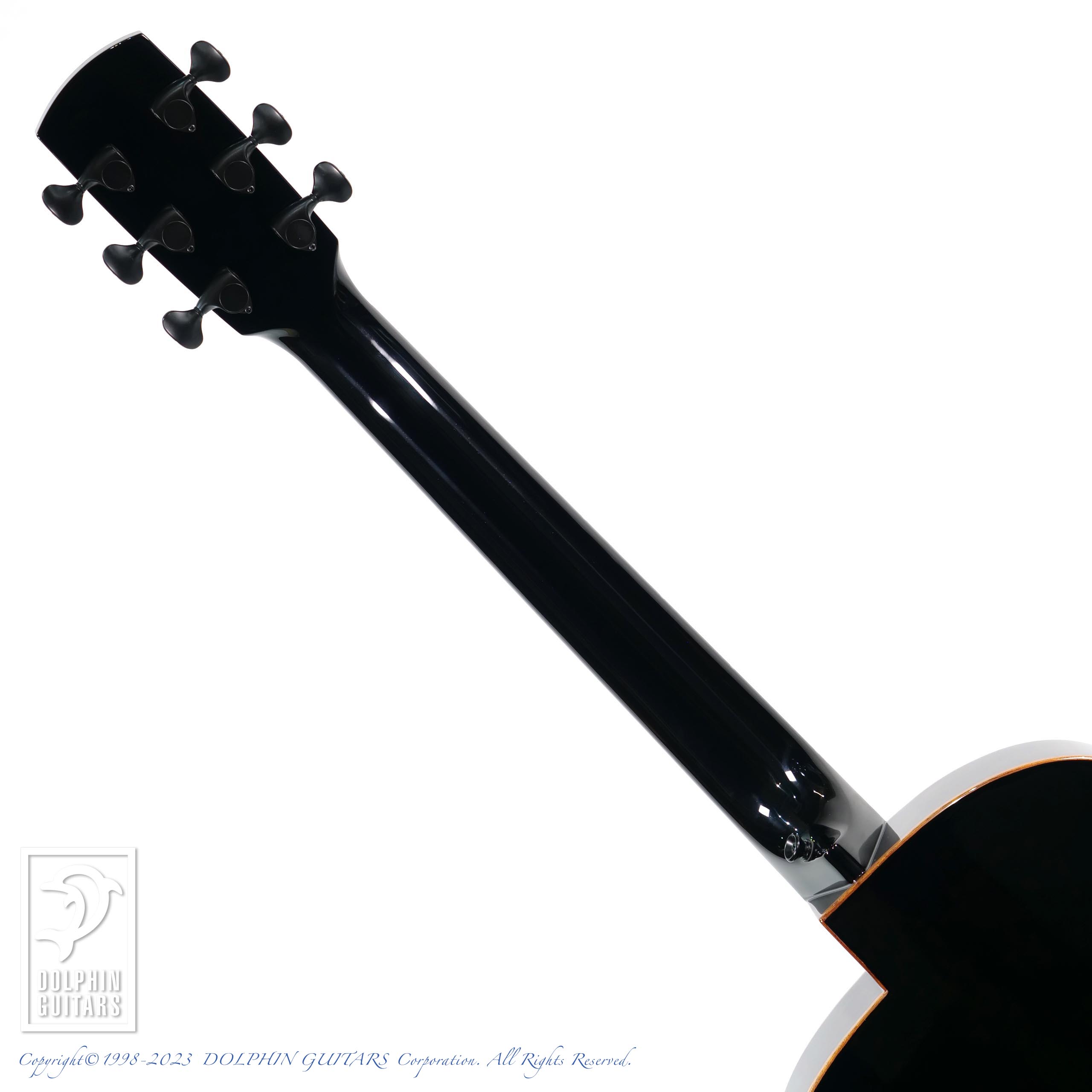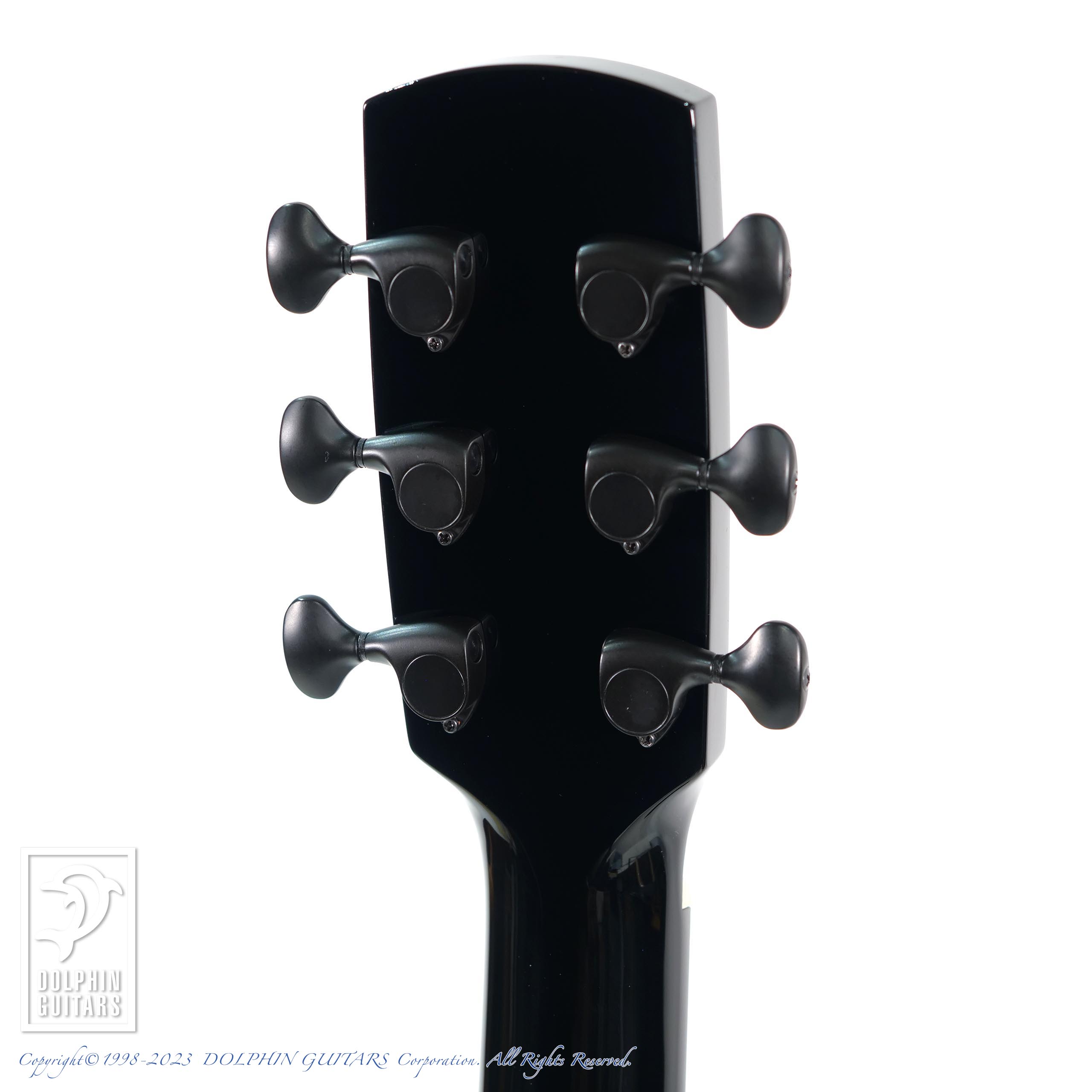 カーリーメイプルをセダー材の表面に配した美しいギター。シースルーブラック塗装により、杢目が浮かび上がるような幻想的な印象を与えます。サイド&バックはほのかにラメが輝く凝った仕様です。
