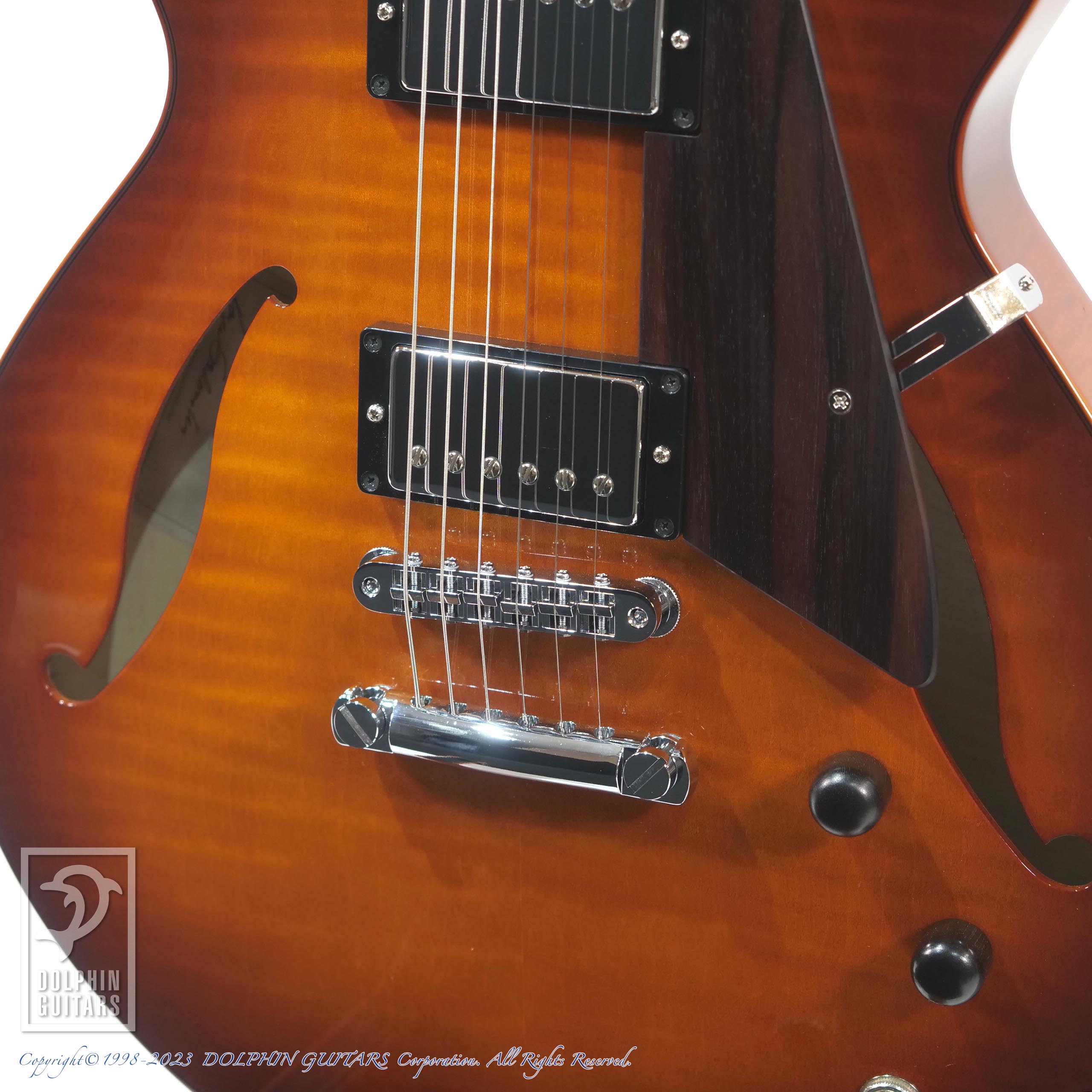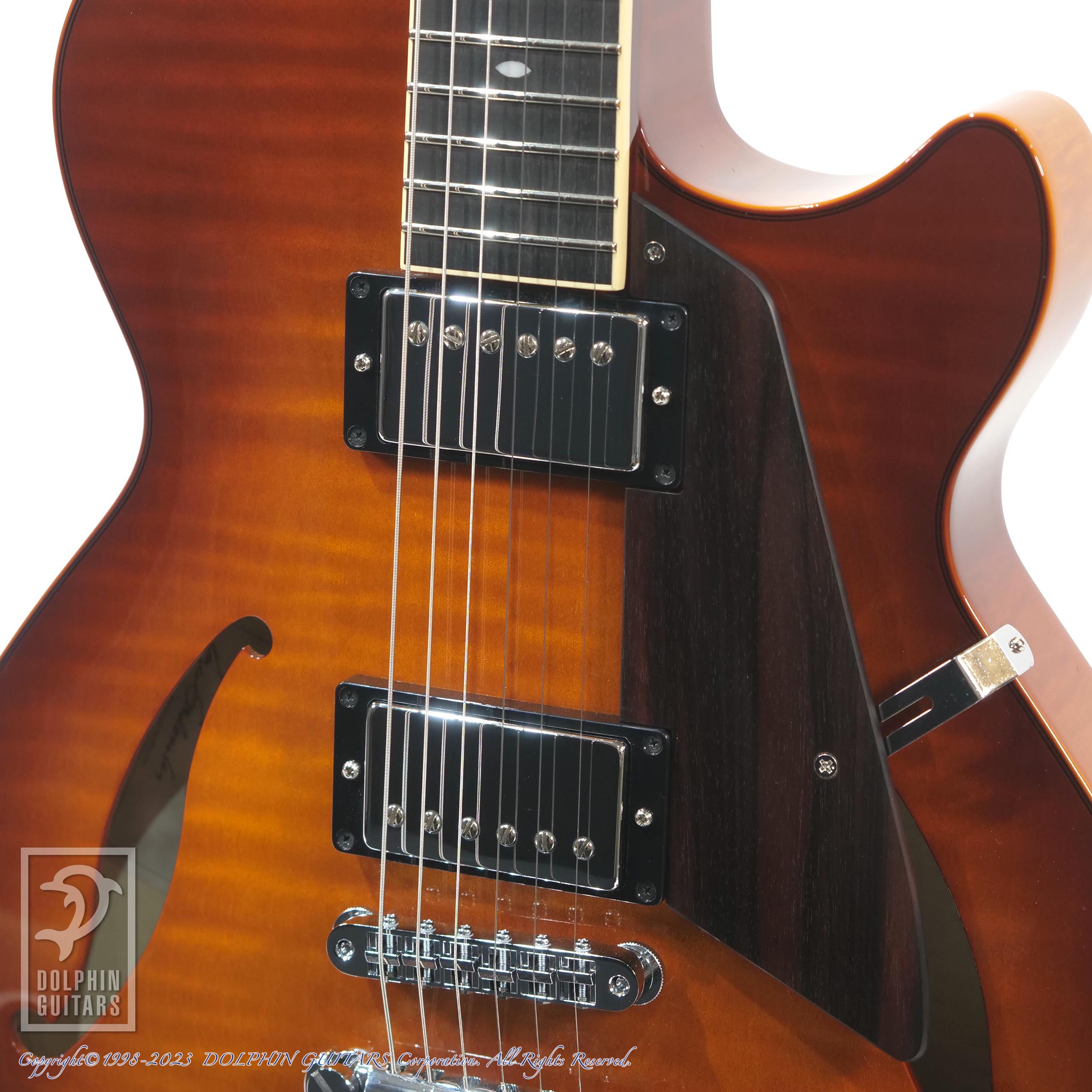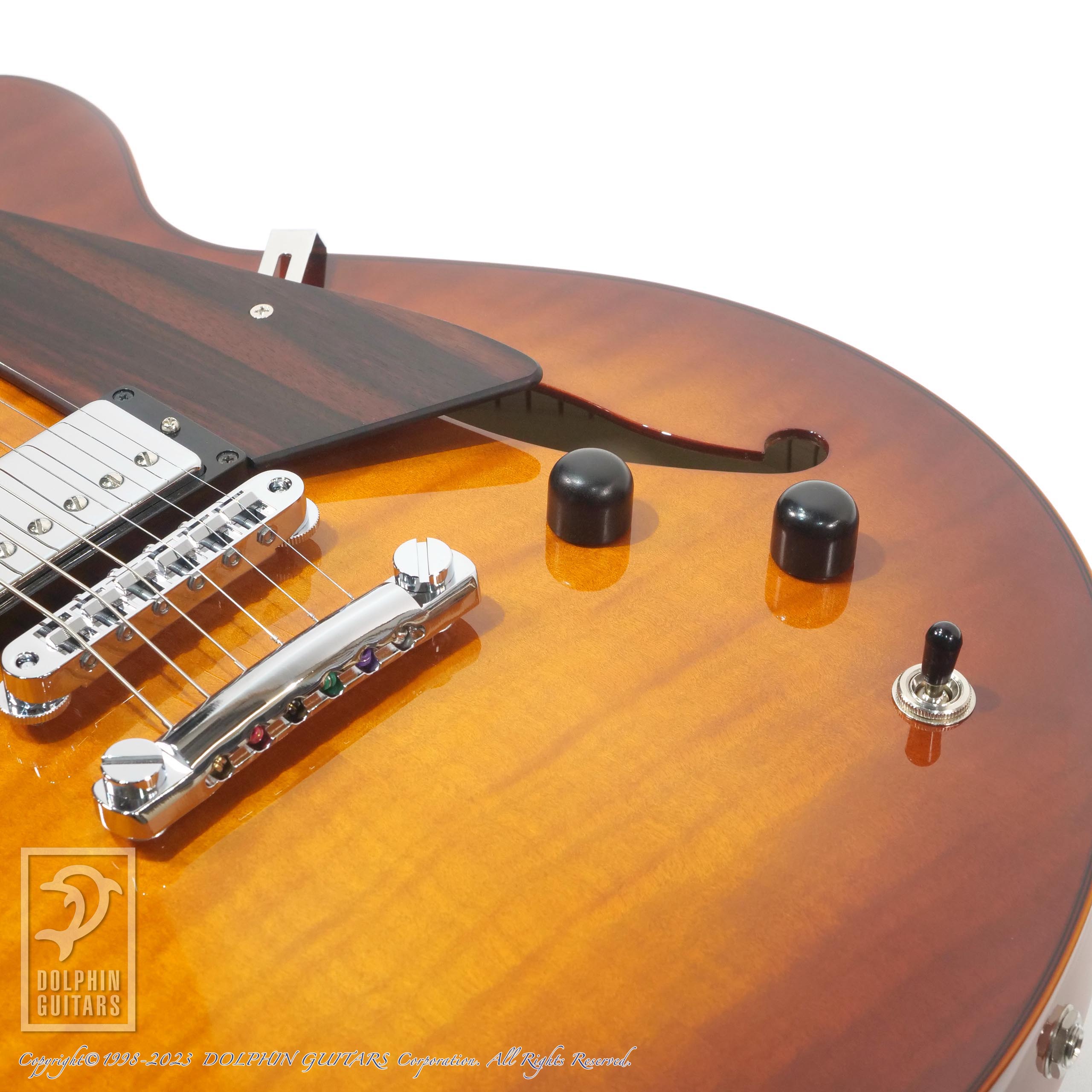サドウスキーアーチトップ、セミホロウモデルのシエナバーストカラー