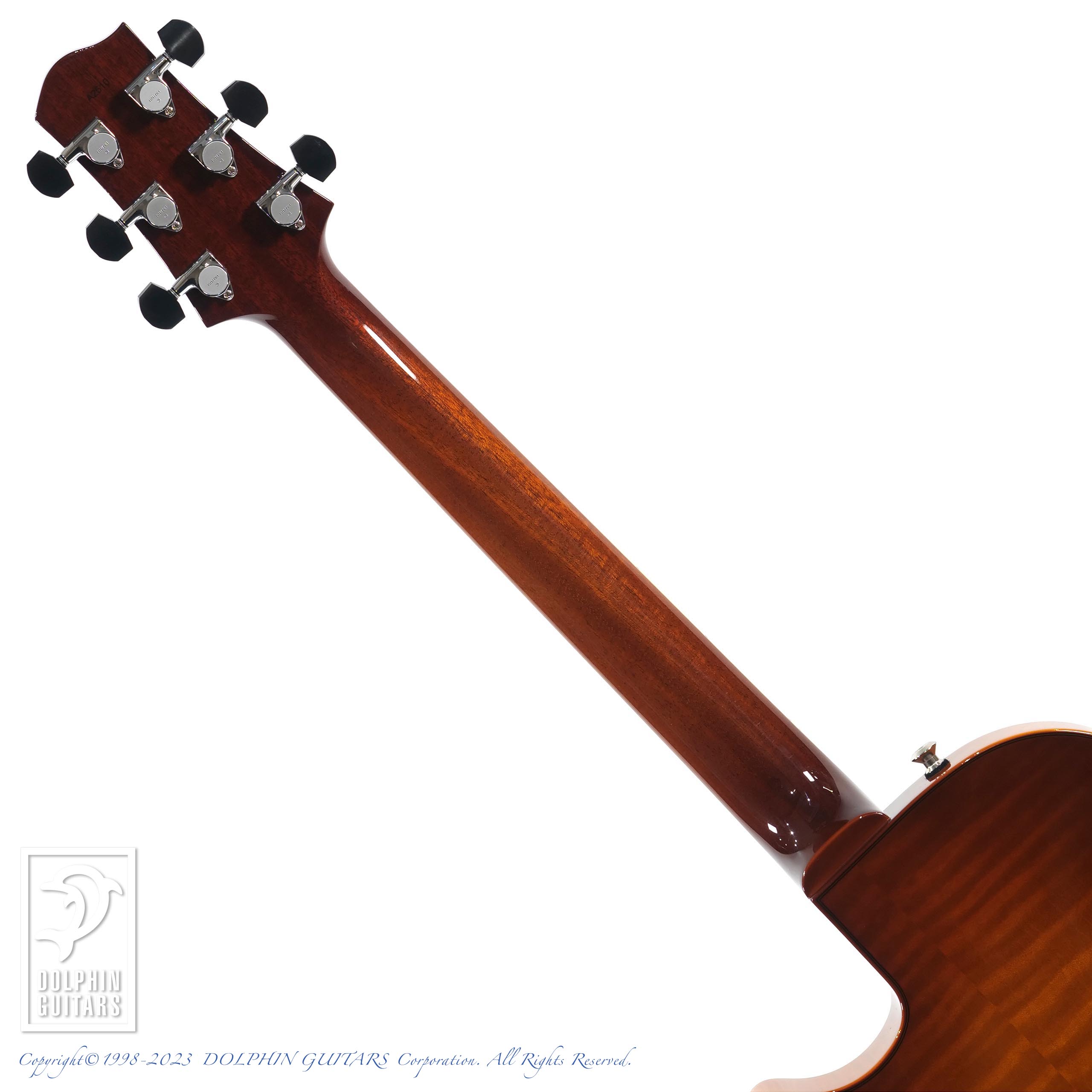 ネックシェイプはやや薄手のCシェイプ、指板Rは12インチ(304mm)、14,75インチ(374mm)ボディ幅、628mmのミディアムスケールと相まってコンパクトさを感じさせ、現代では多くの方が好むであろうサイズ感とフィット感であります。