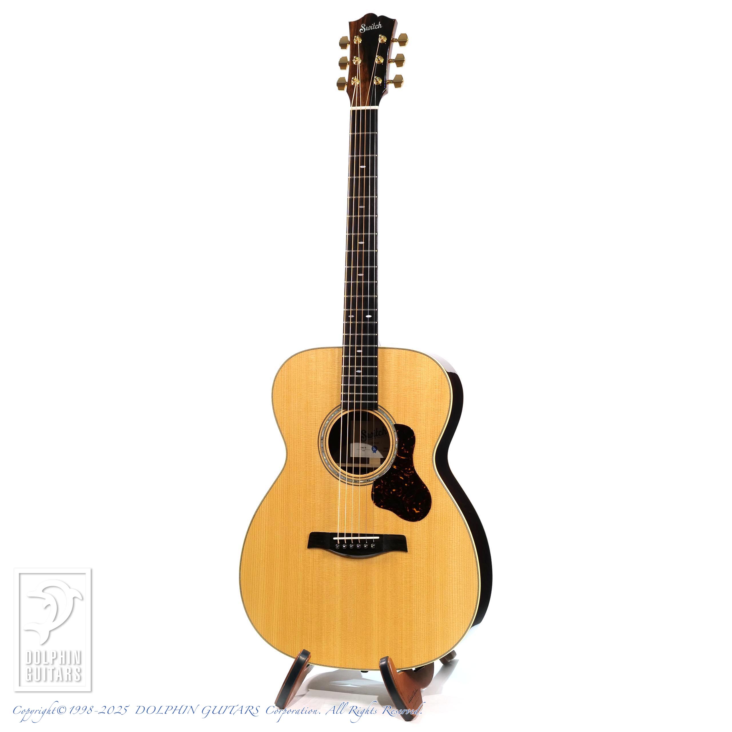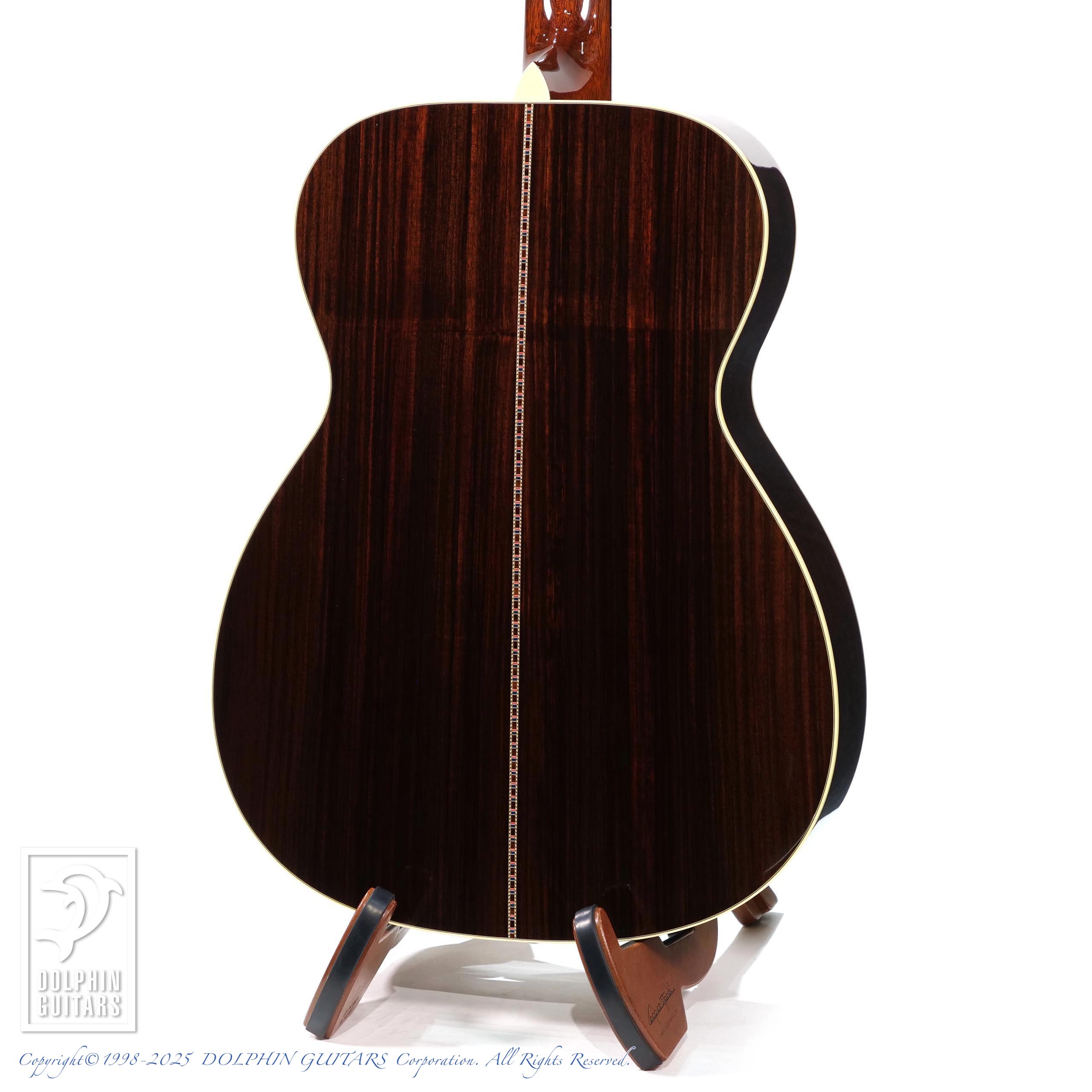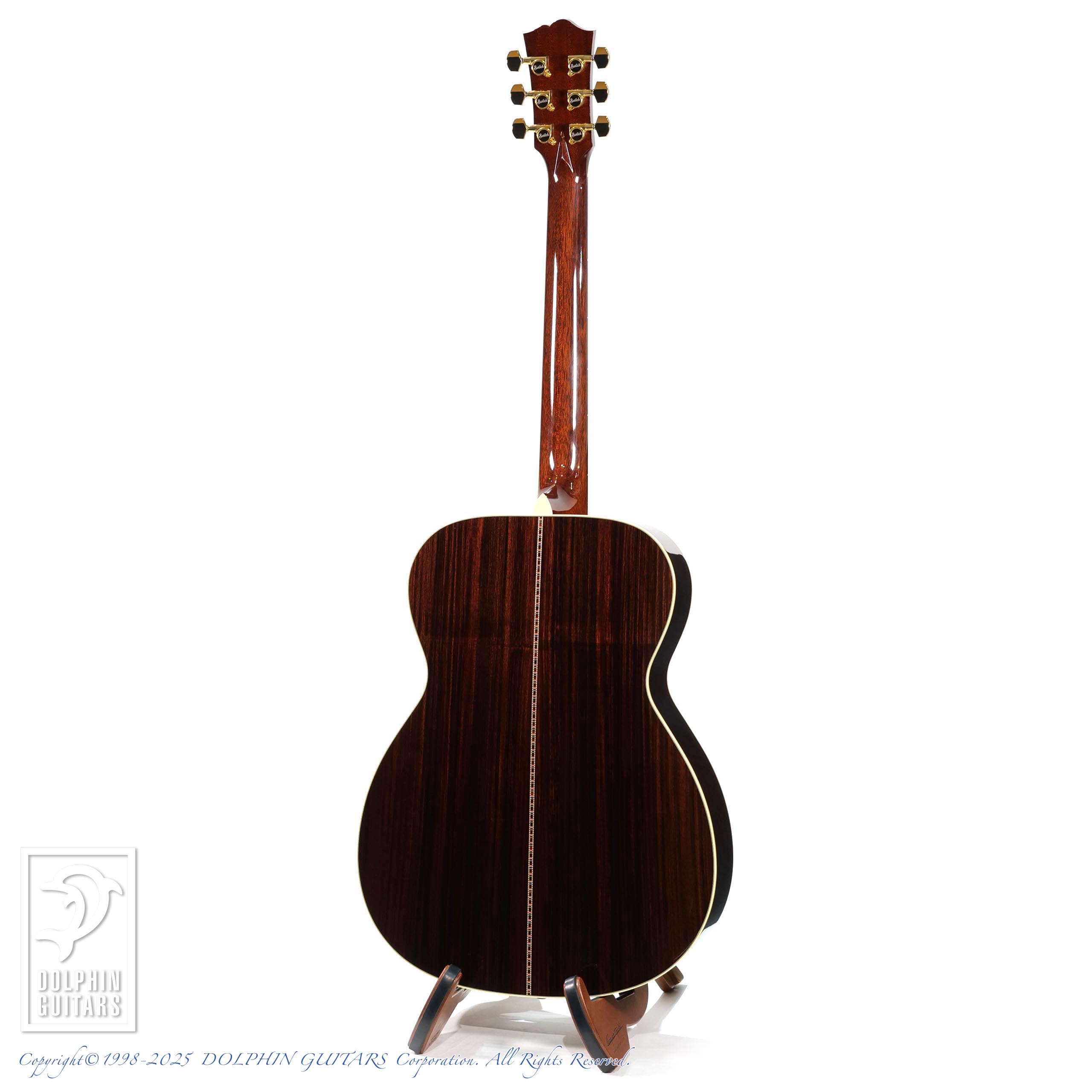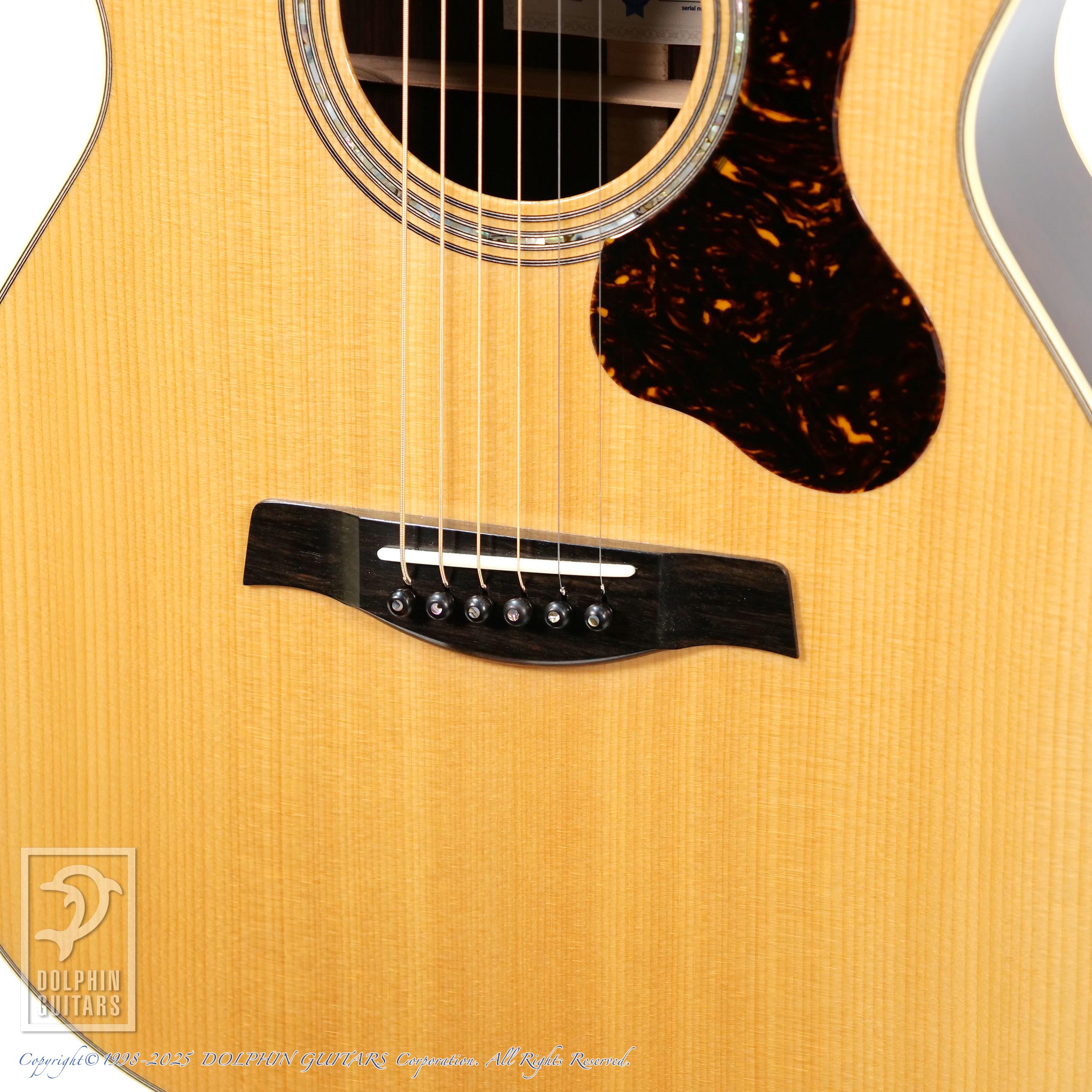 ローアクションなセッティング&ソフトタッチでも十分な音圧を得られるように設計されており、抜群の操作性能を誇ります。全体的にやや甘いトーンが心地よく、その中にキラリと感じるスプルースの高音特性、インディアンローズの持つ低域の重量感もバランス良く混ざり合います。OMシェイプの反応の良さはフィンガースタイルはもちろんのこと、しなやかなストロークでの弾き語りにもベストマッチします。