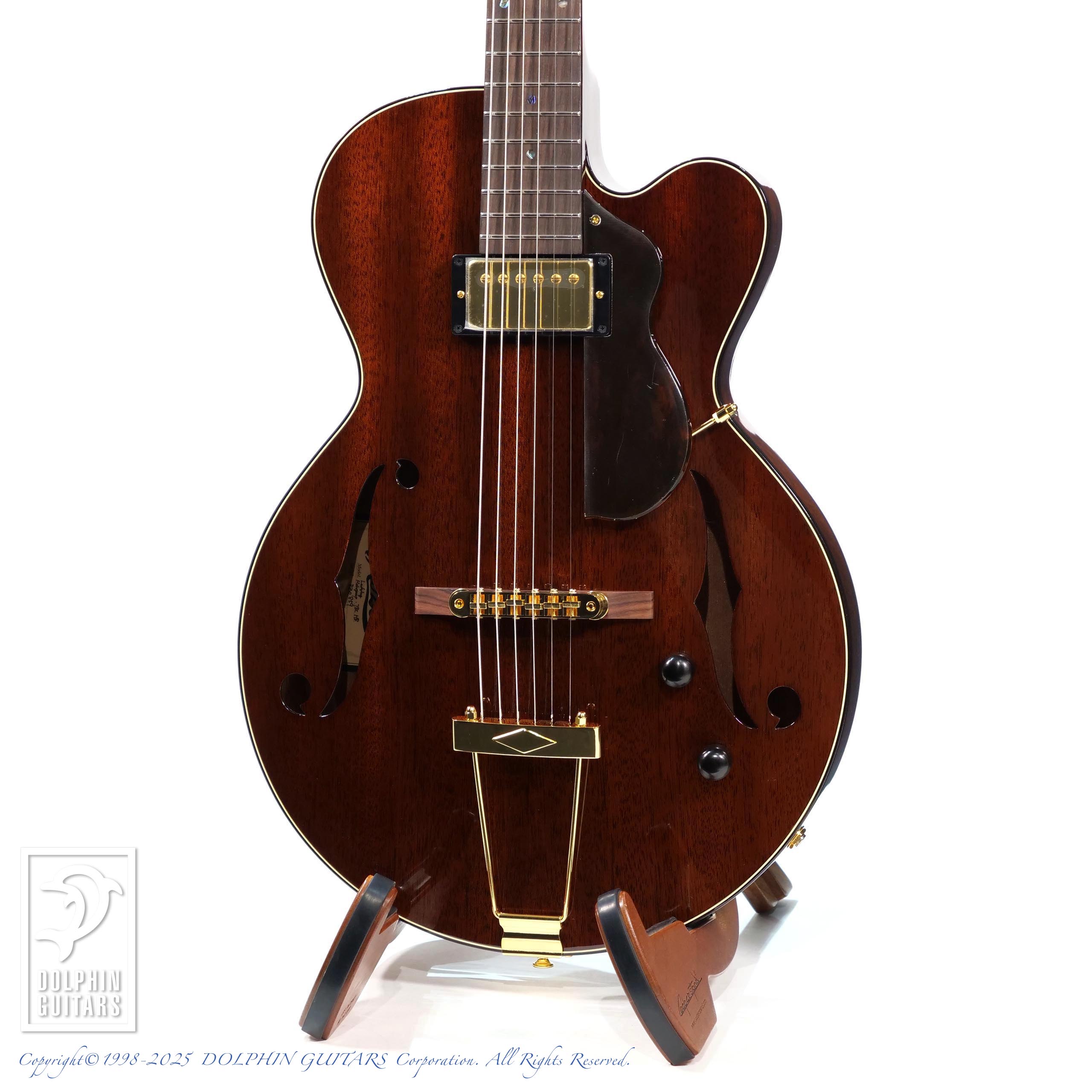 ハイクオリティ国産コンパクト・フルアコ!渋いオールマホガニーボディのオーソドックスなフロント1ハムバッカー搭載のシンボディ。