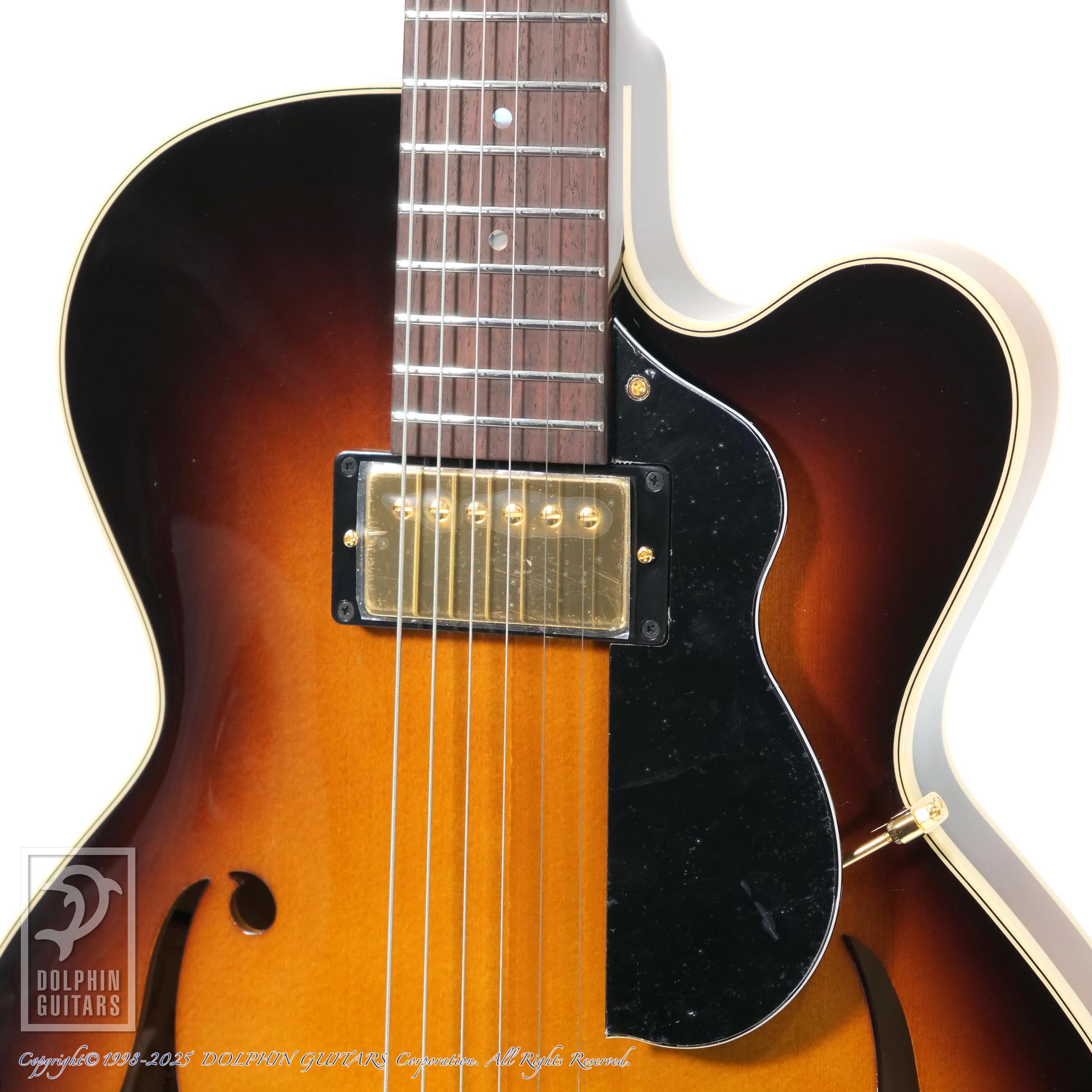 ハイクオリティ国産コンパクト・フルアコ!渋いヴィンテージサンバーストのオーソドックスなフロント1ハムバッカー搭載のシンボディ。