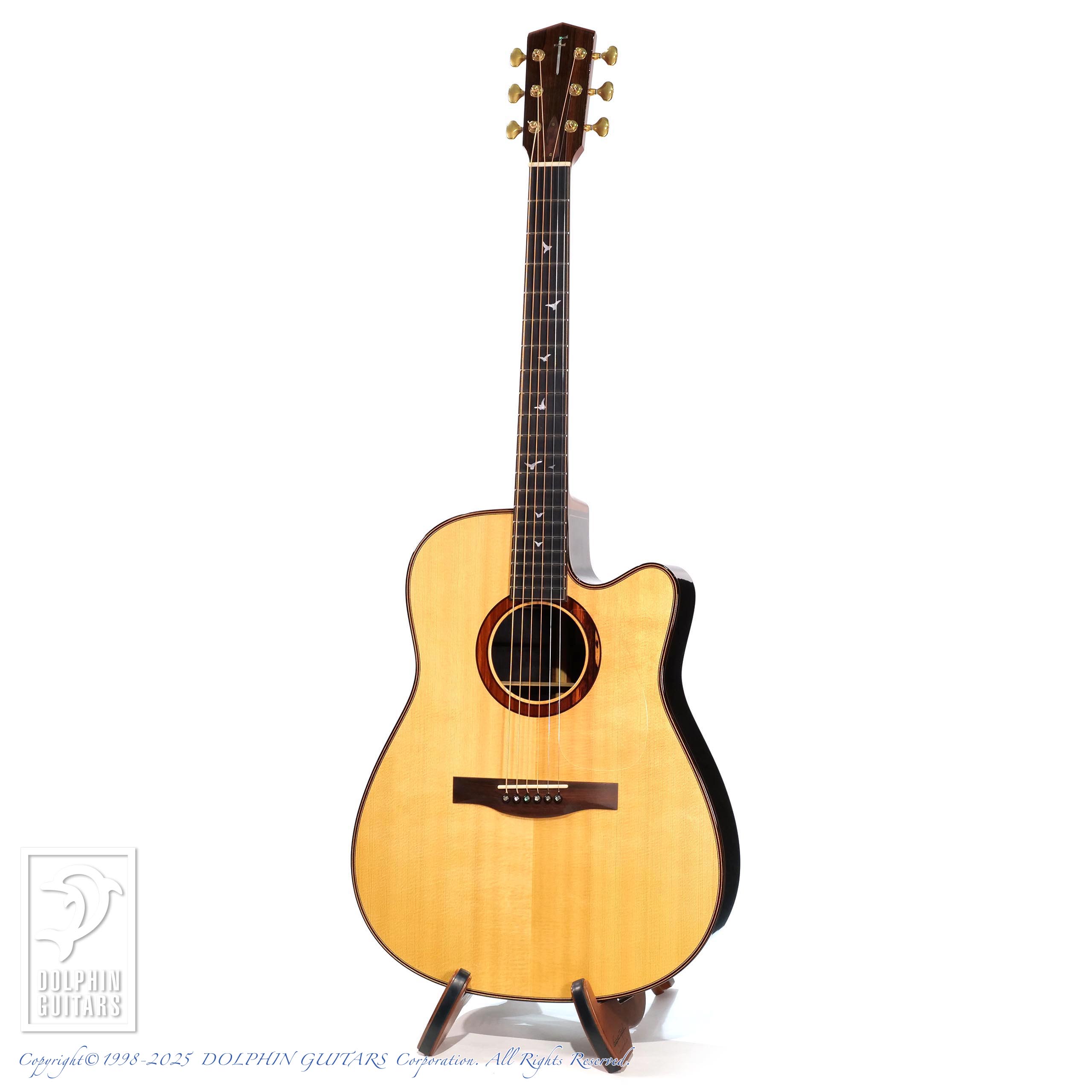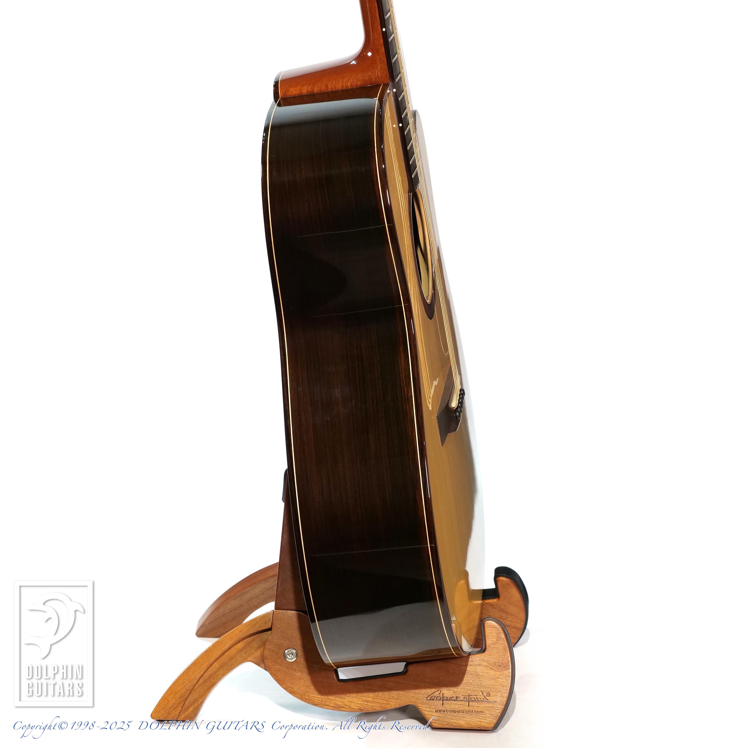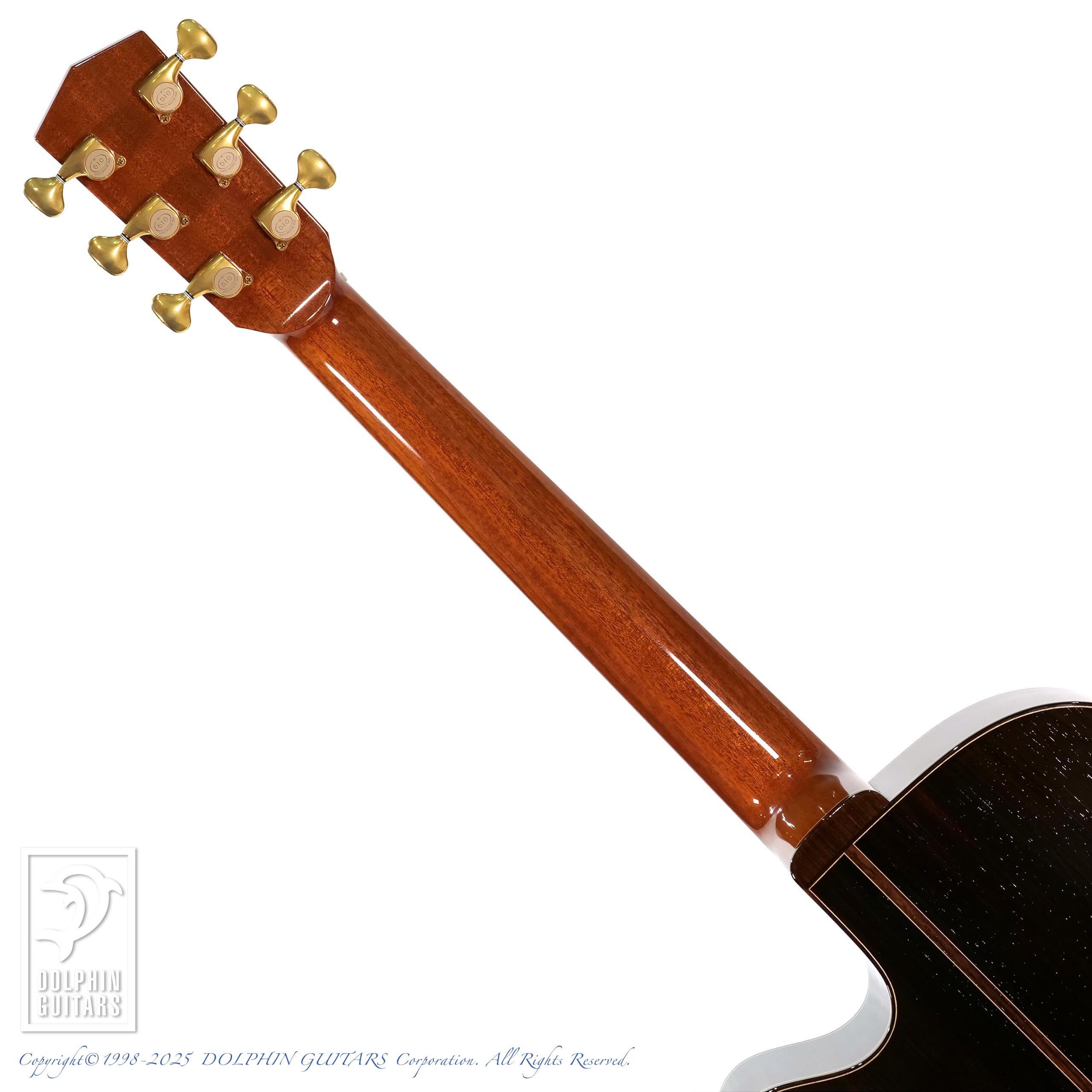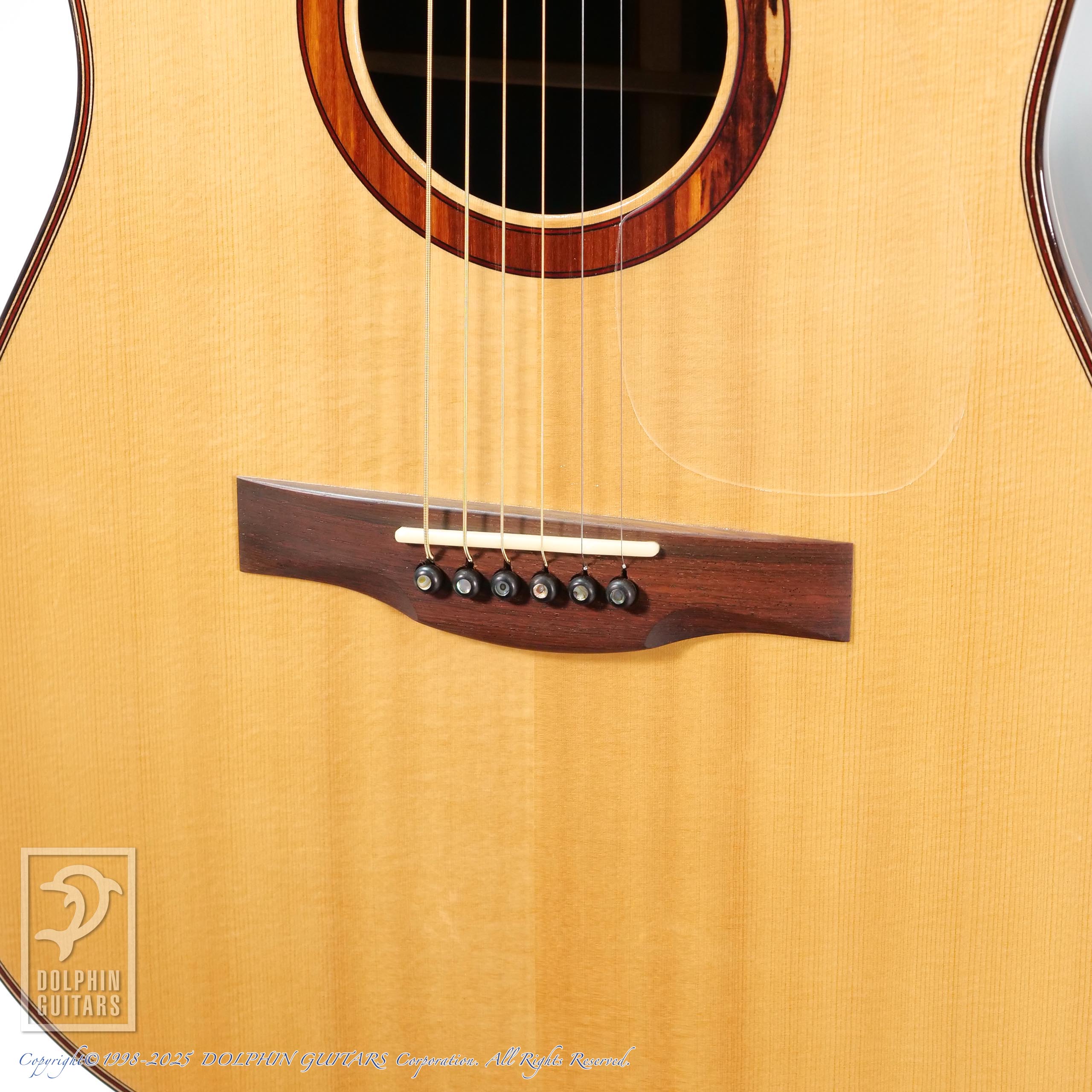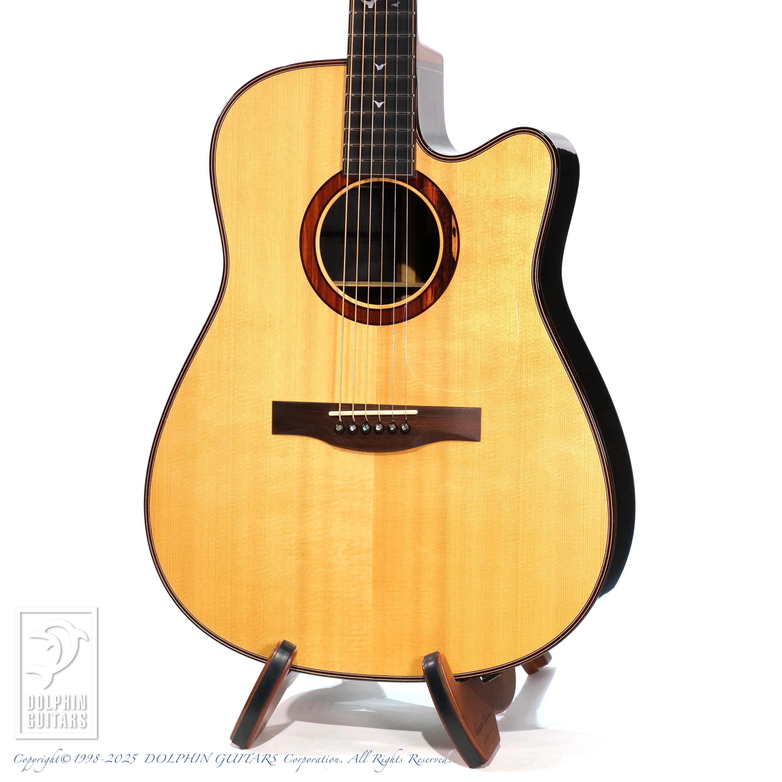 ジャーマンスプルースとハカランダの組み合わせにより、ふくよかな低音と煌びやかな高音が美しく調和した、豊かな音色を生み出します。密度の高いサウンドで、指で弾いてもしっかりと響くレスポンスの良さが魅力です。ナット幅44mmのややワイドなネックは握り込みやすく、フィンガースタイルでも抜群の弾き心地を提供。カッタウェイ仕様によりハイポジションでの演奏も容易で、コードストロークから繊細なフィンガーピッキングまで表現力豊かに対応します。
