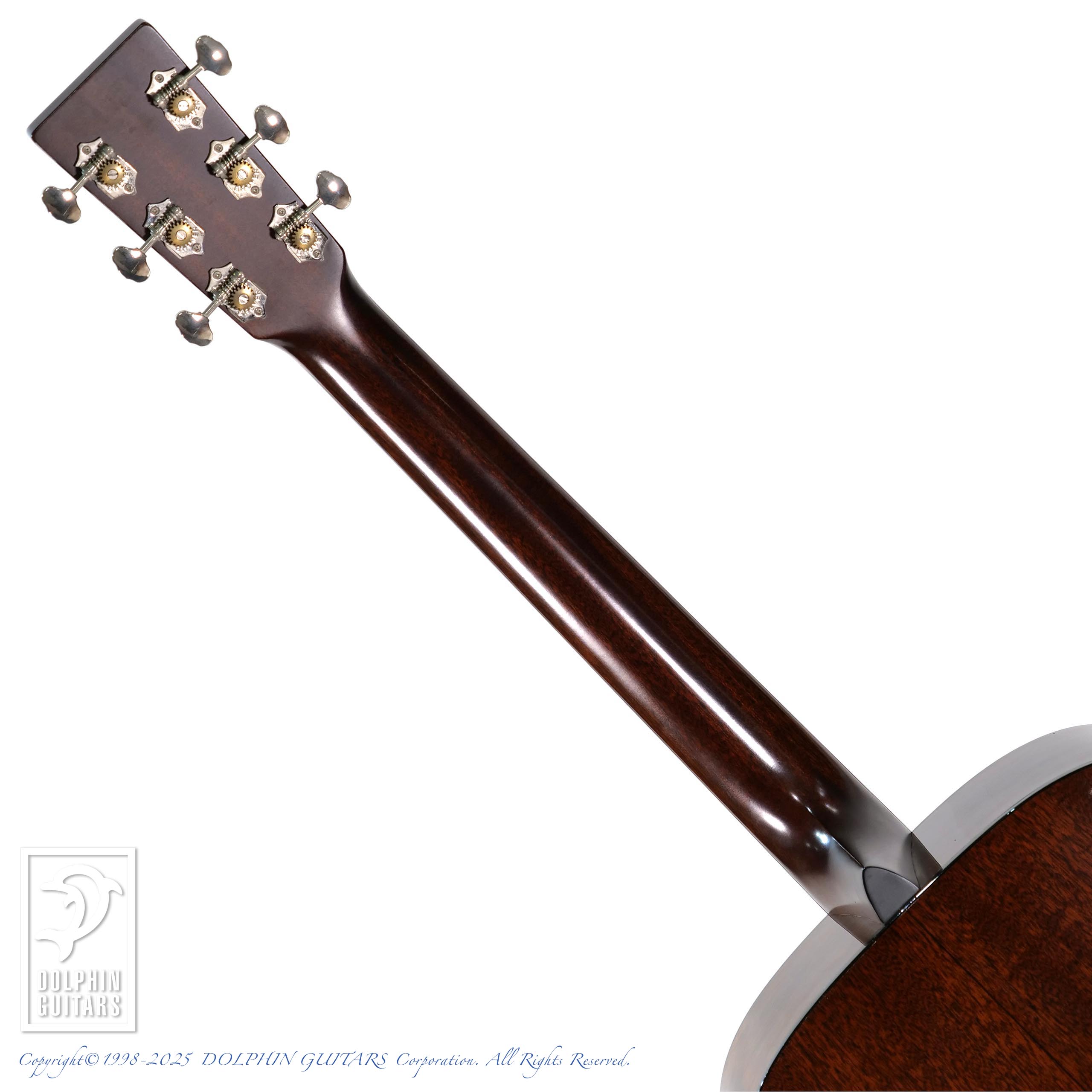 2012年にこれまでのスタイルから大幅に仕様が変更したD-18。フォワードシフテッドスキャロップドXブレイシング、エボニー材のブリッジとフィンガーボードという戦前の仕様となりました。クラシカルな佇まいに、モダンな演奏性が融合したスタイルは、幅広いジャンルのプレイヤーにも受け入れられるルックスに仕上がっています。ネックはスリムなパフォーミングアーティスト・スタイルを採用し、ネックの握りは良好です。