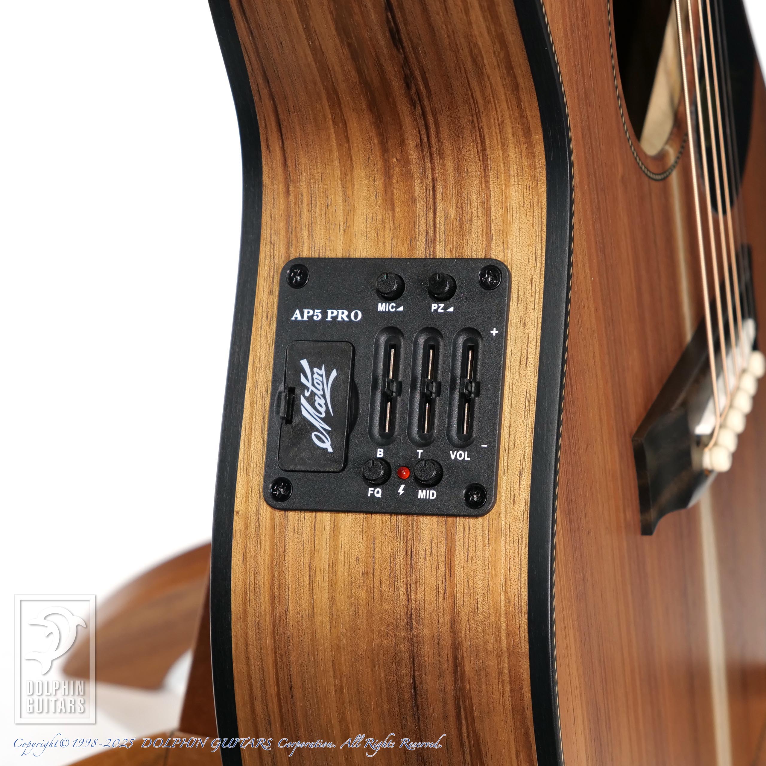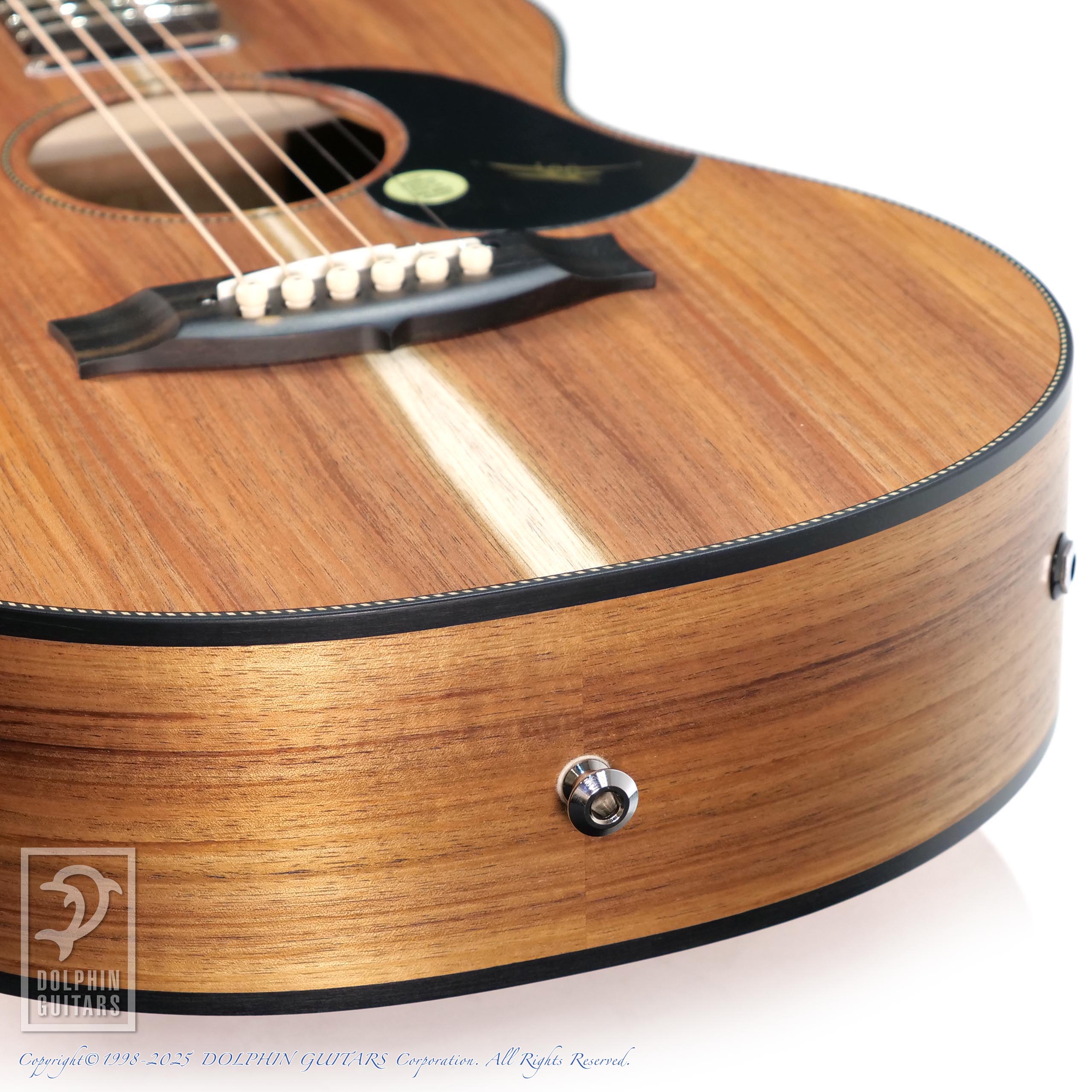オーストラリアンブラックウッドはアカシア属の植物であり、ハワイアンアンコアも同じアカシア属。木目や色合いもハワイアンコアと非常に似ており、明るくハリのあるサウンドのコアに比べ、ブラックウッドはローミッドが強調され、ややダークな印象で、他のモデルとはハッキリと異なるサウンドキャラクターです。