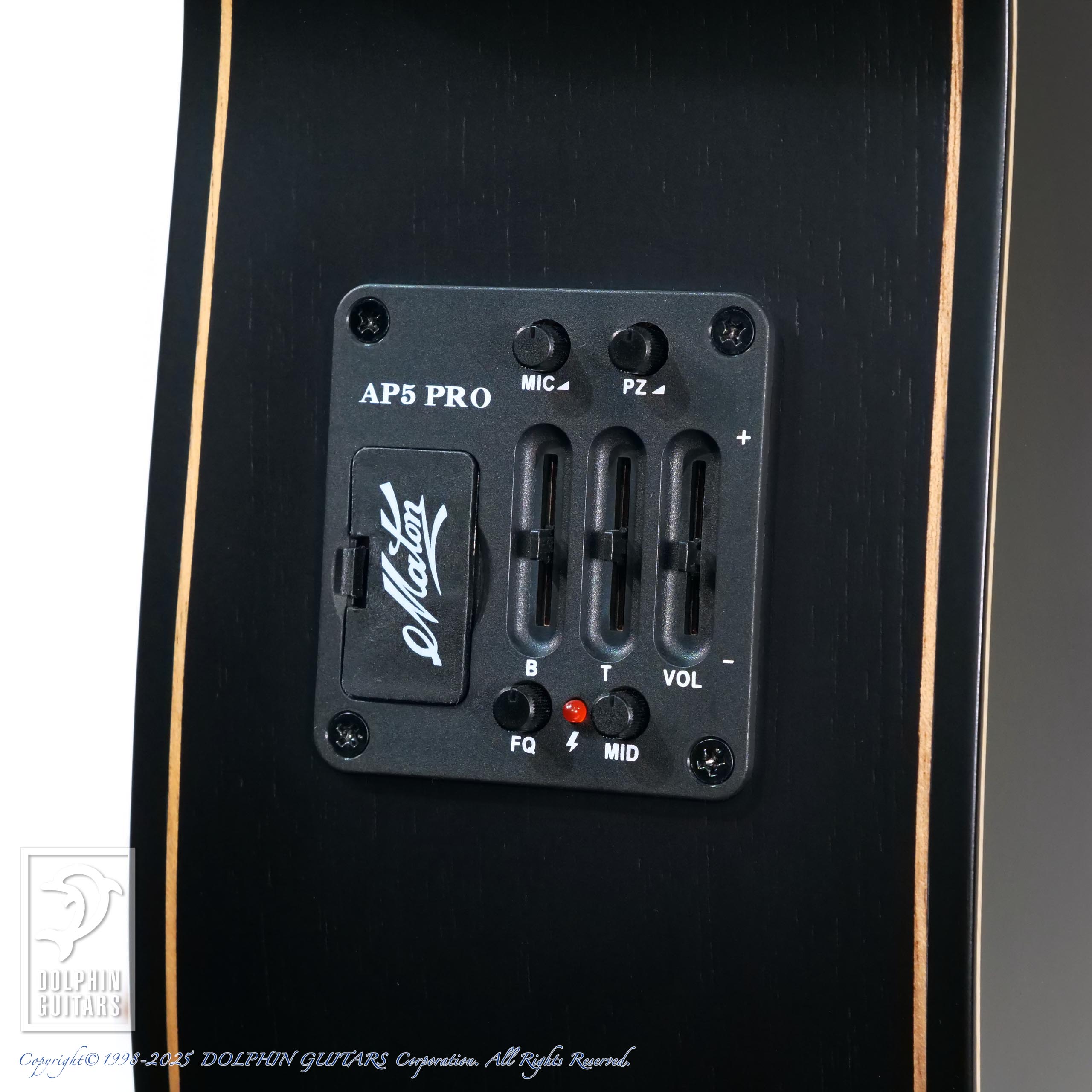 また、搭載されたAP5 Proピックアップ・システムは、コンデンサーマイクを併用する事により、エアー感に加えボディヒット音もアウトプットし、リアルなアコースティックサウンドを出力します。