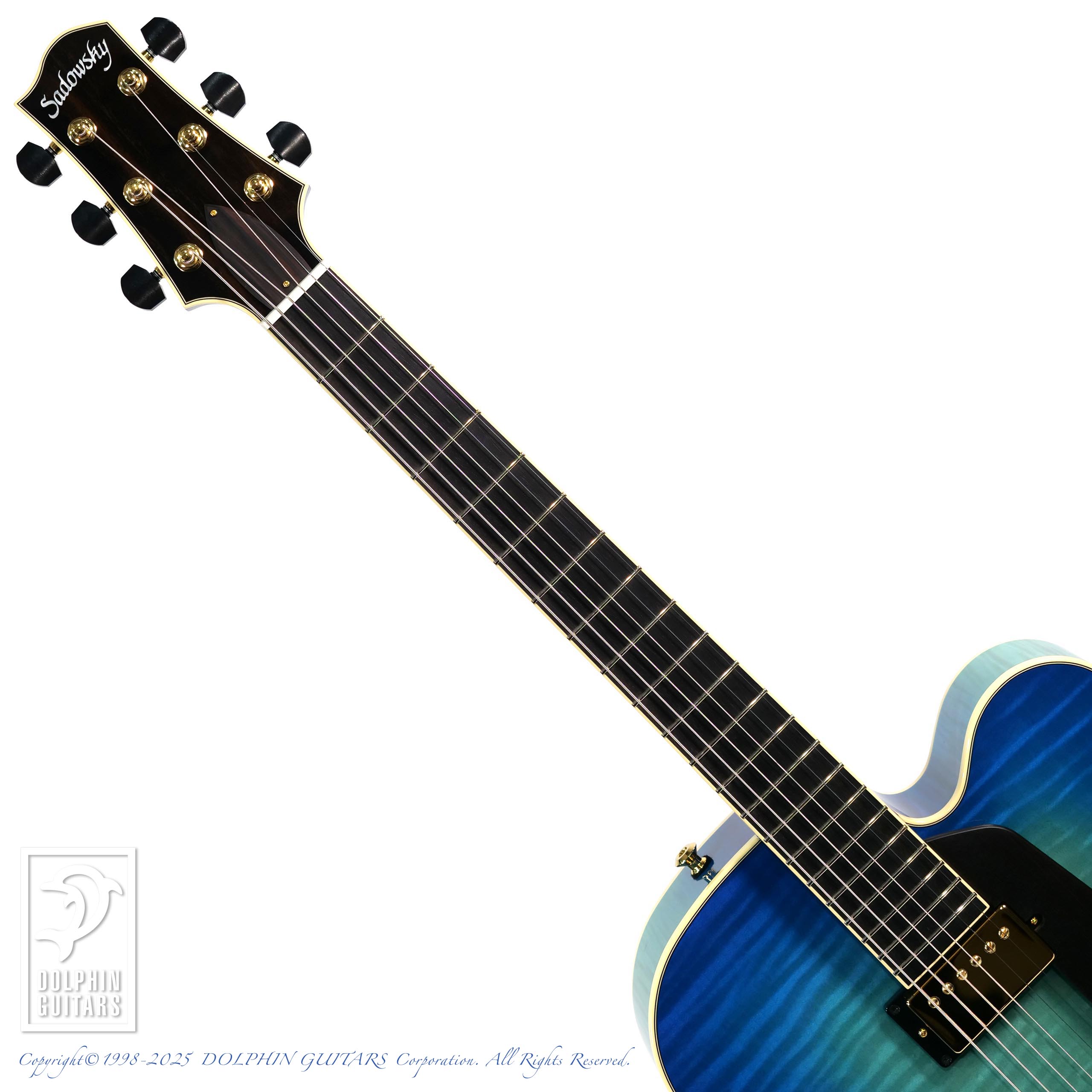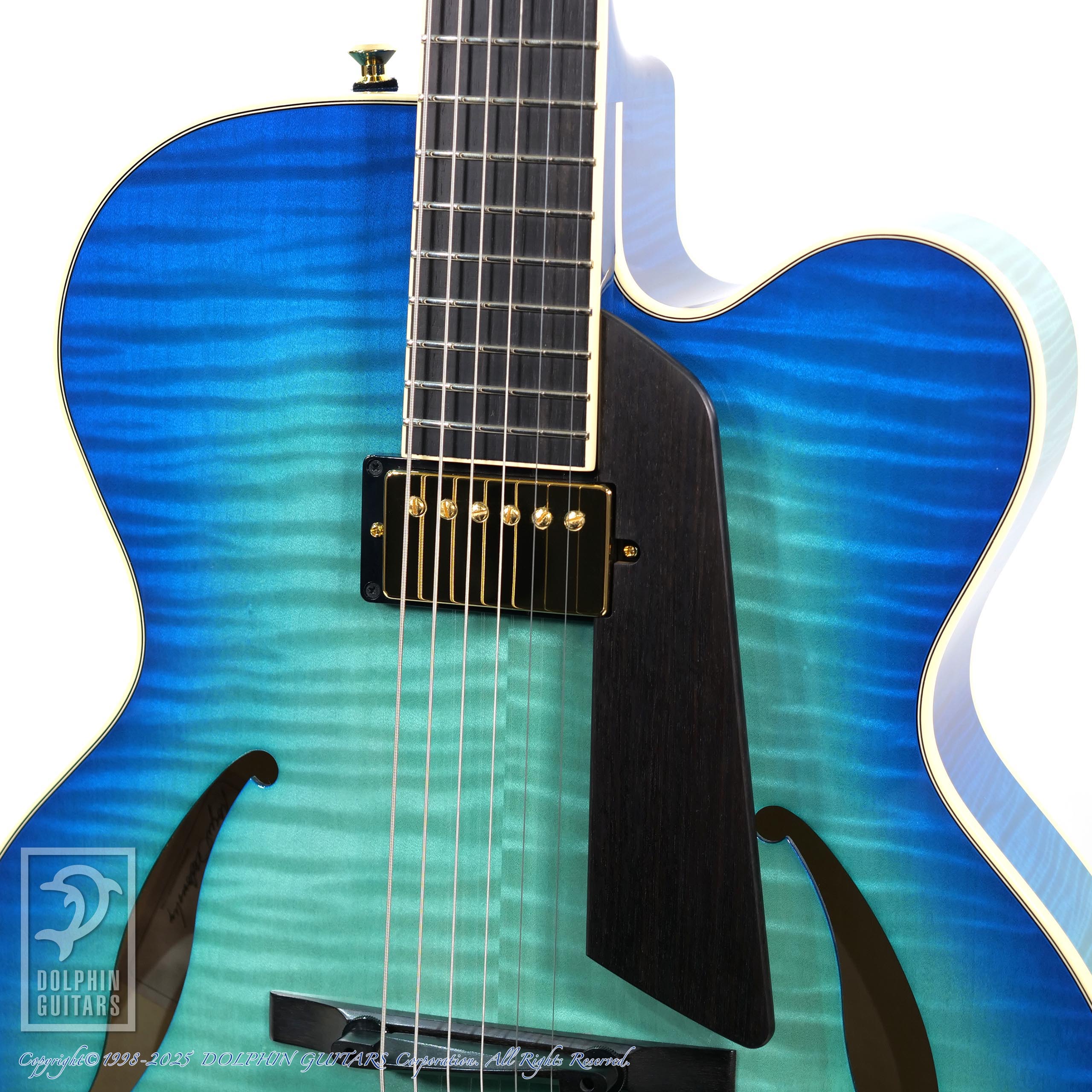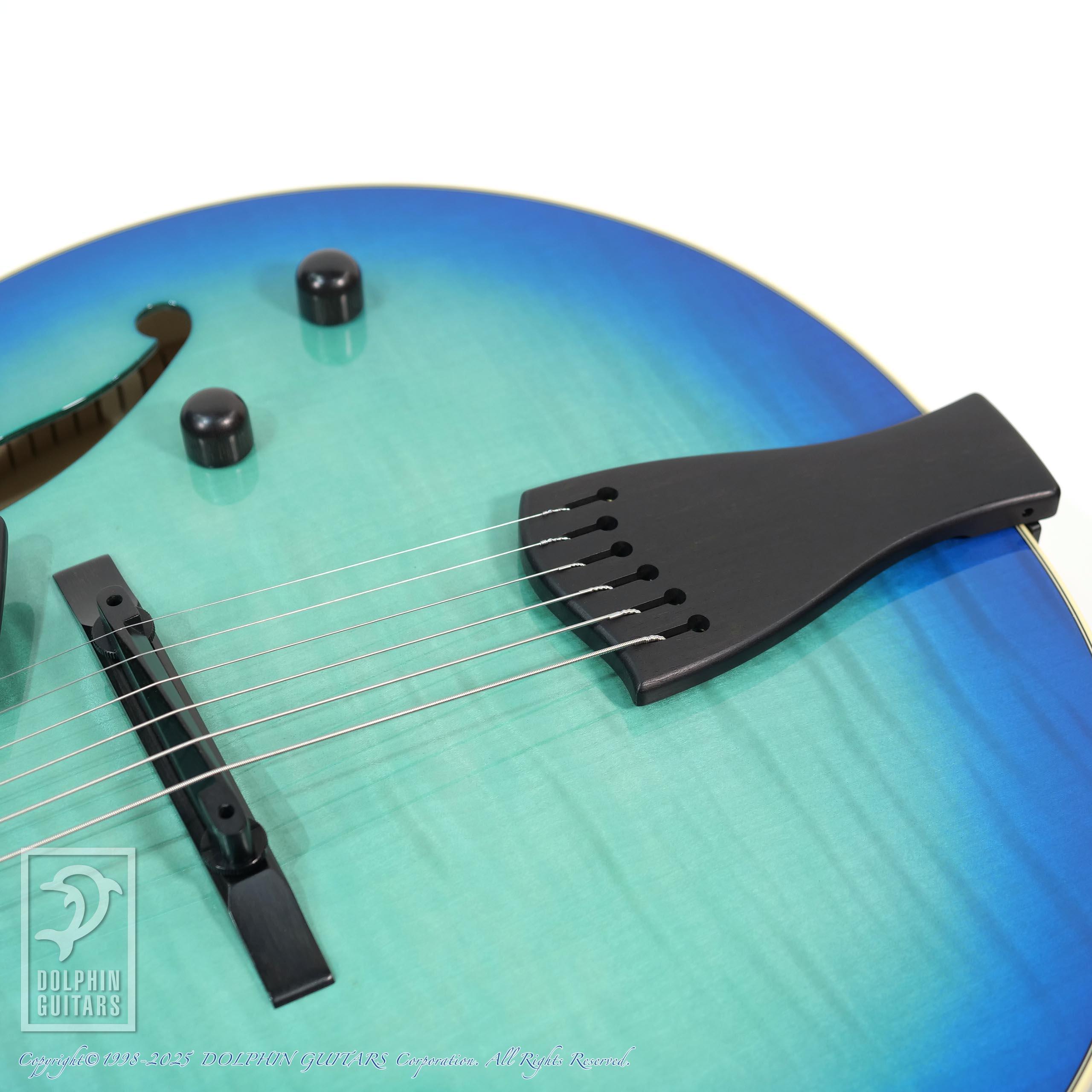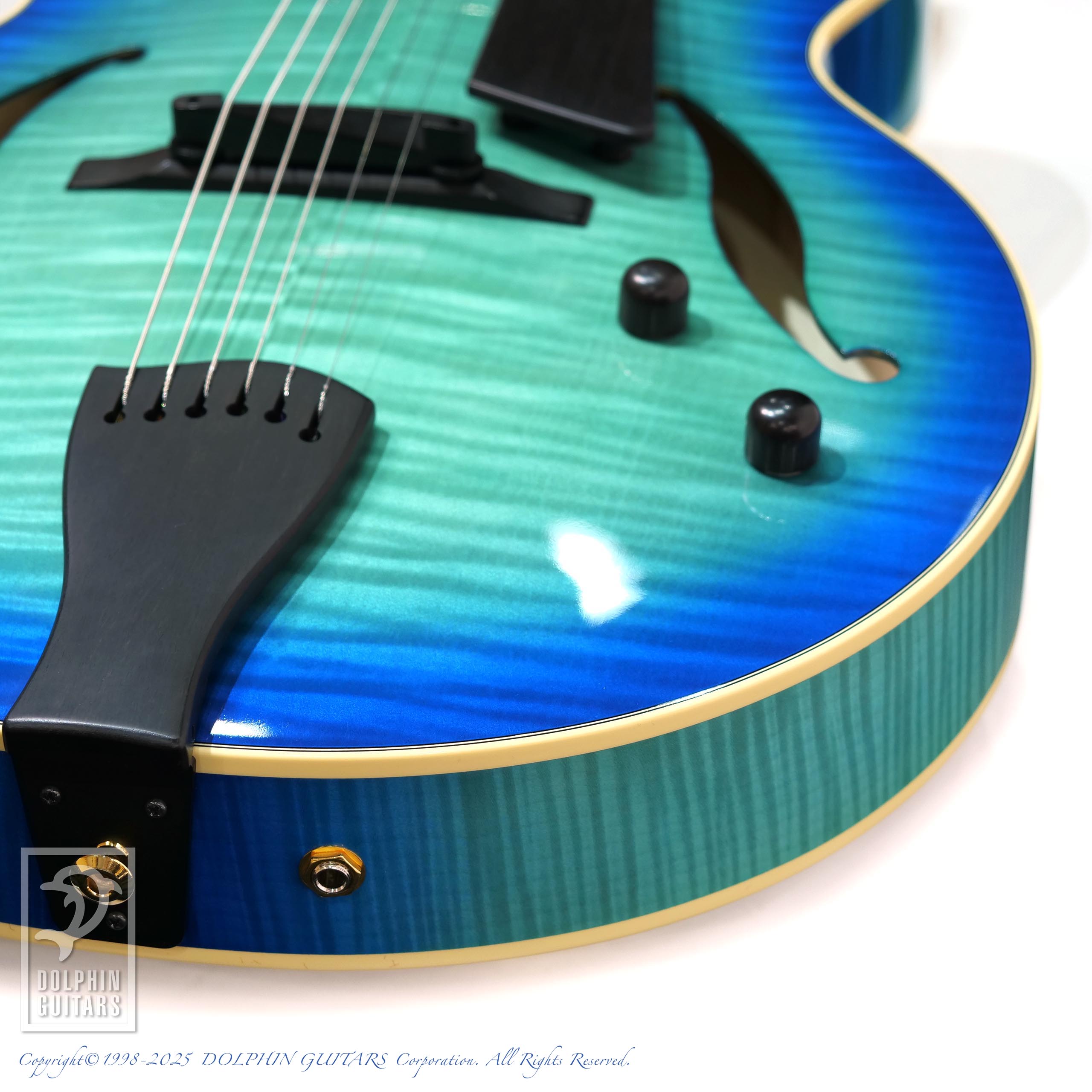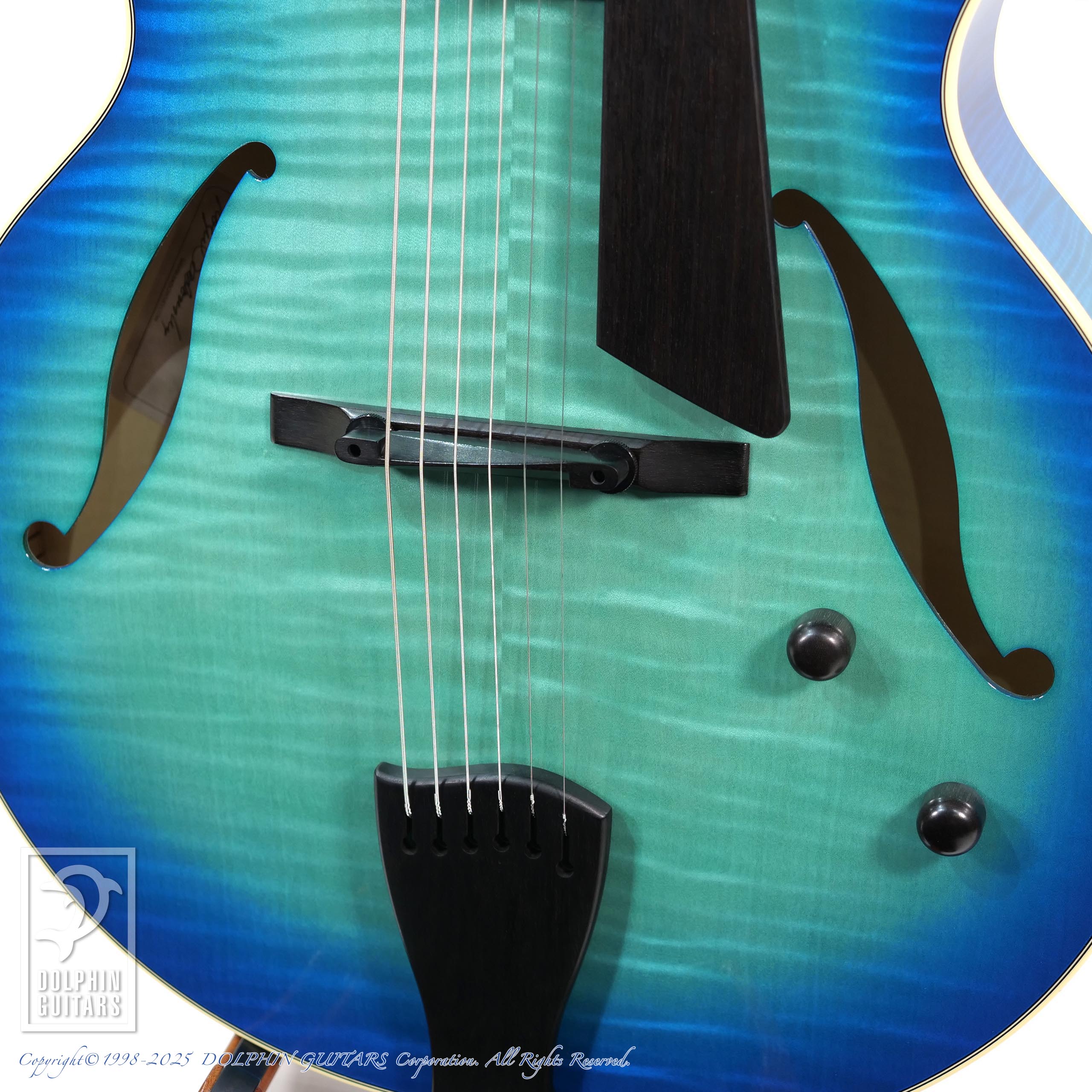 本器はベテラン・ギタリスト、ジム・ホールが愛用していたダキストのモデルをベースとし、ジム・ホールとサドウスキーが生み出したまさにJAZZギターの理想形とも言える、シグネチャー・モデルの限定カラー、The Jim Hall Model (Bora Blue Burst)。