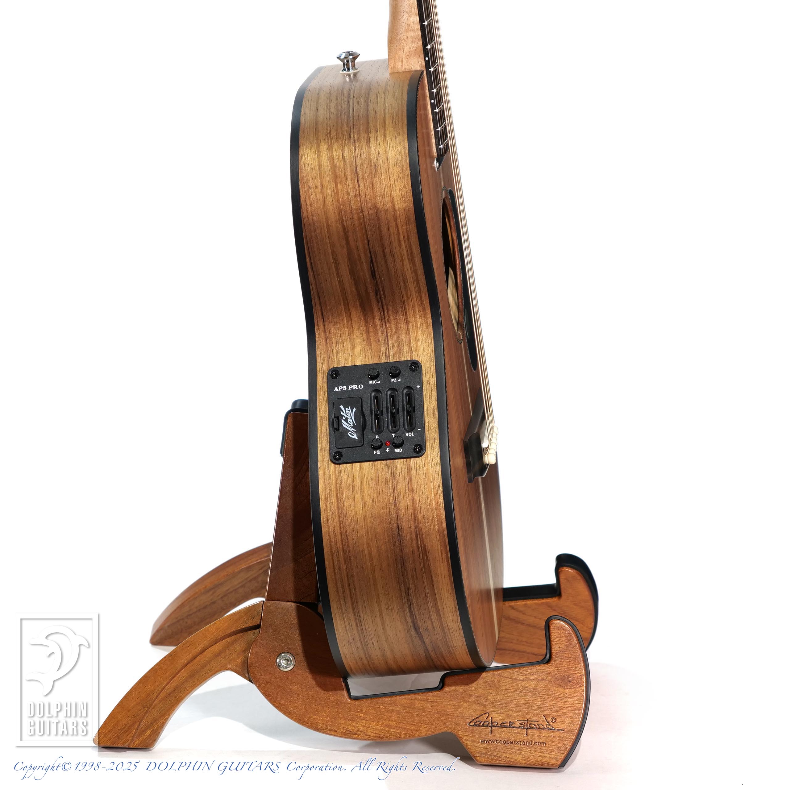 オーストラリアンブラックウッドはアカシア属の植物であり、ハワイアンアンコアも同じアカシア属。木目や色合いもハワイアンコアと非常に似ており、明るくハリのあるサウンドのコアに比べ、ブラックウッドはローミッドが強調され、ややダークな印象で、他のモデルとはハッキリと異なるサウンドキャラクターです。