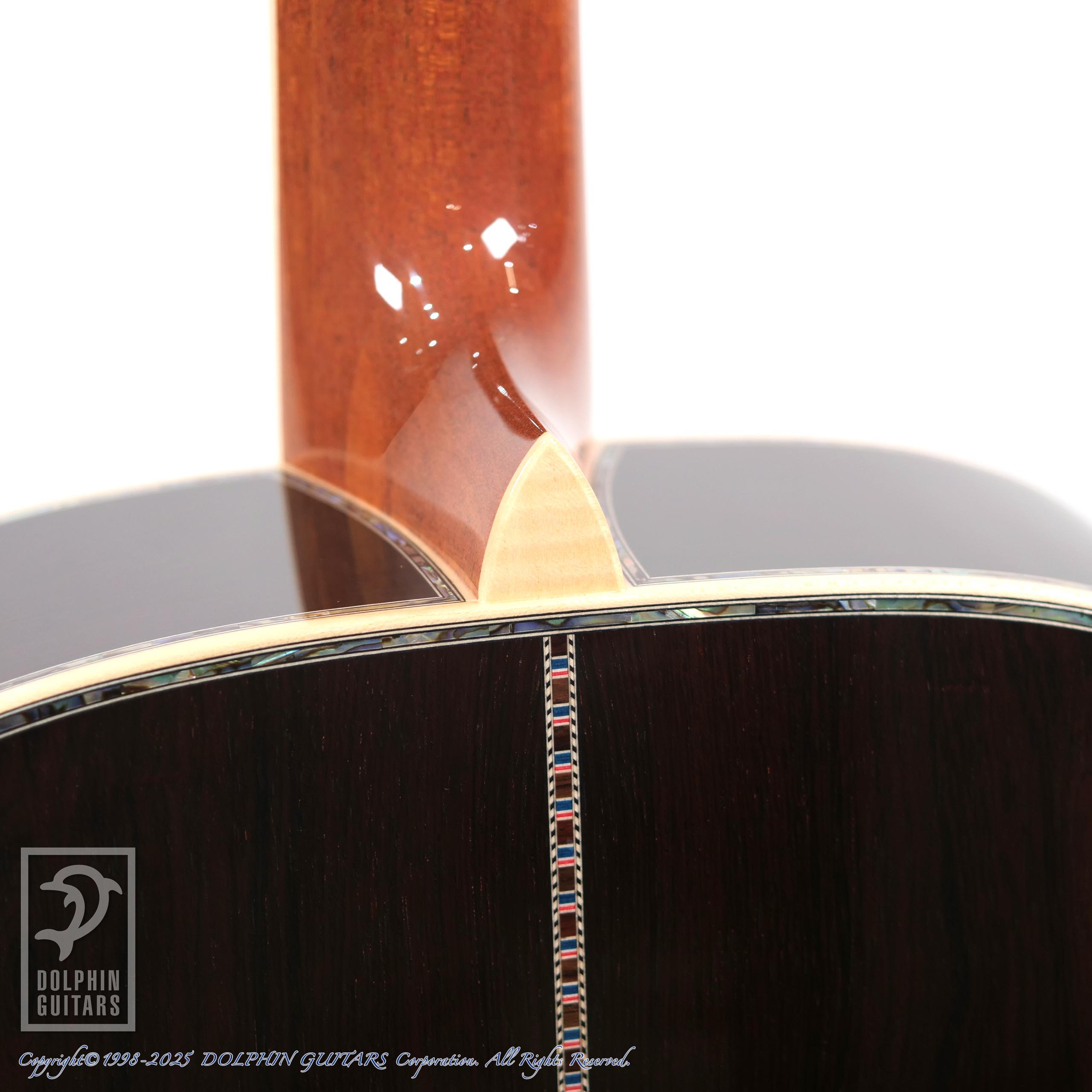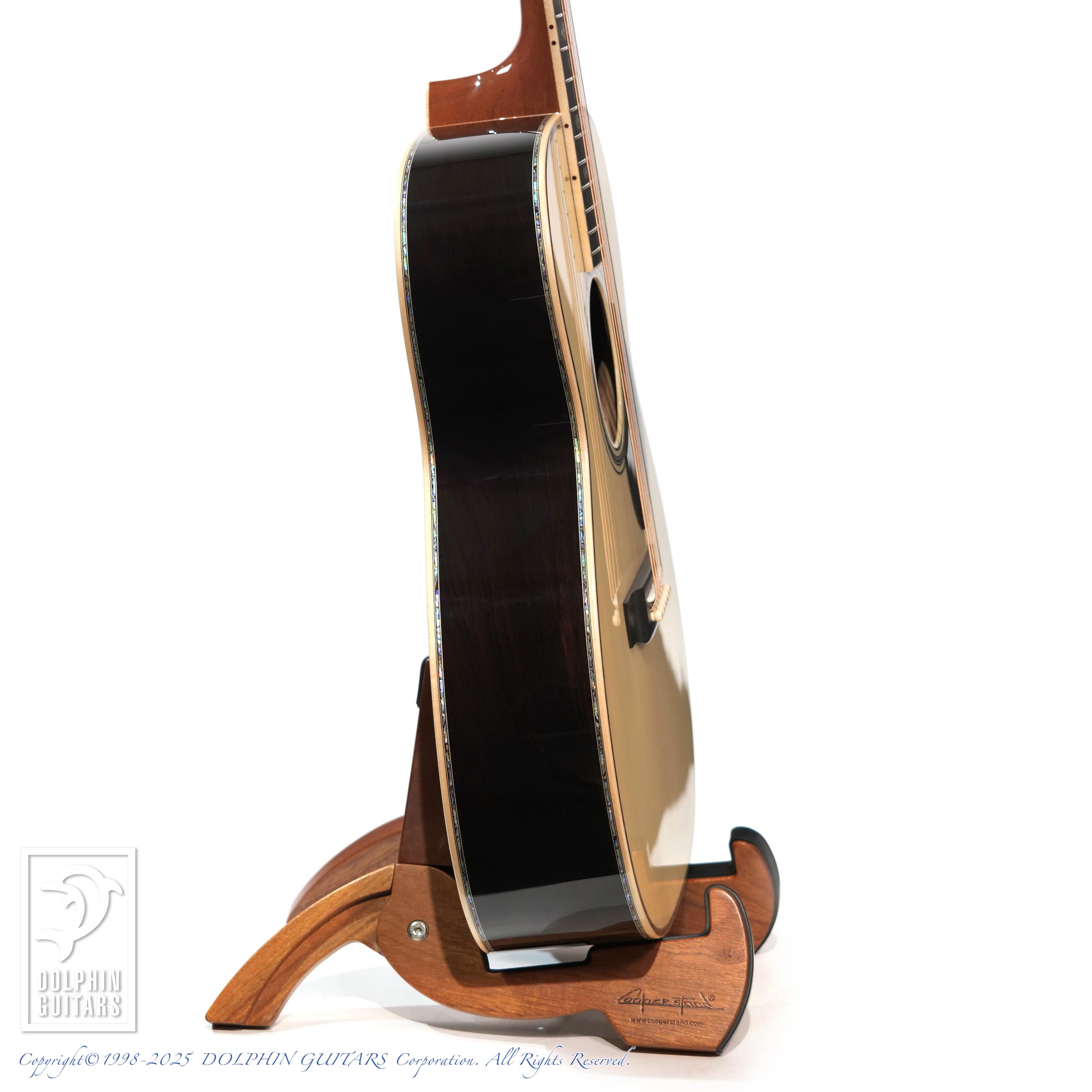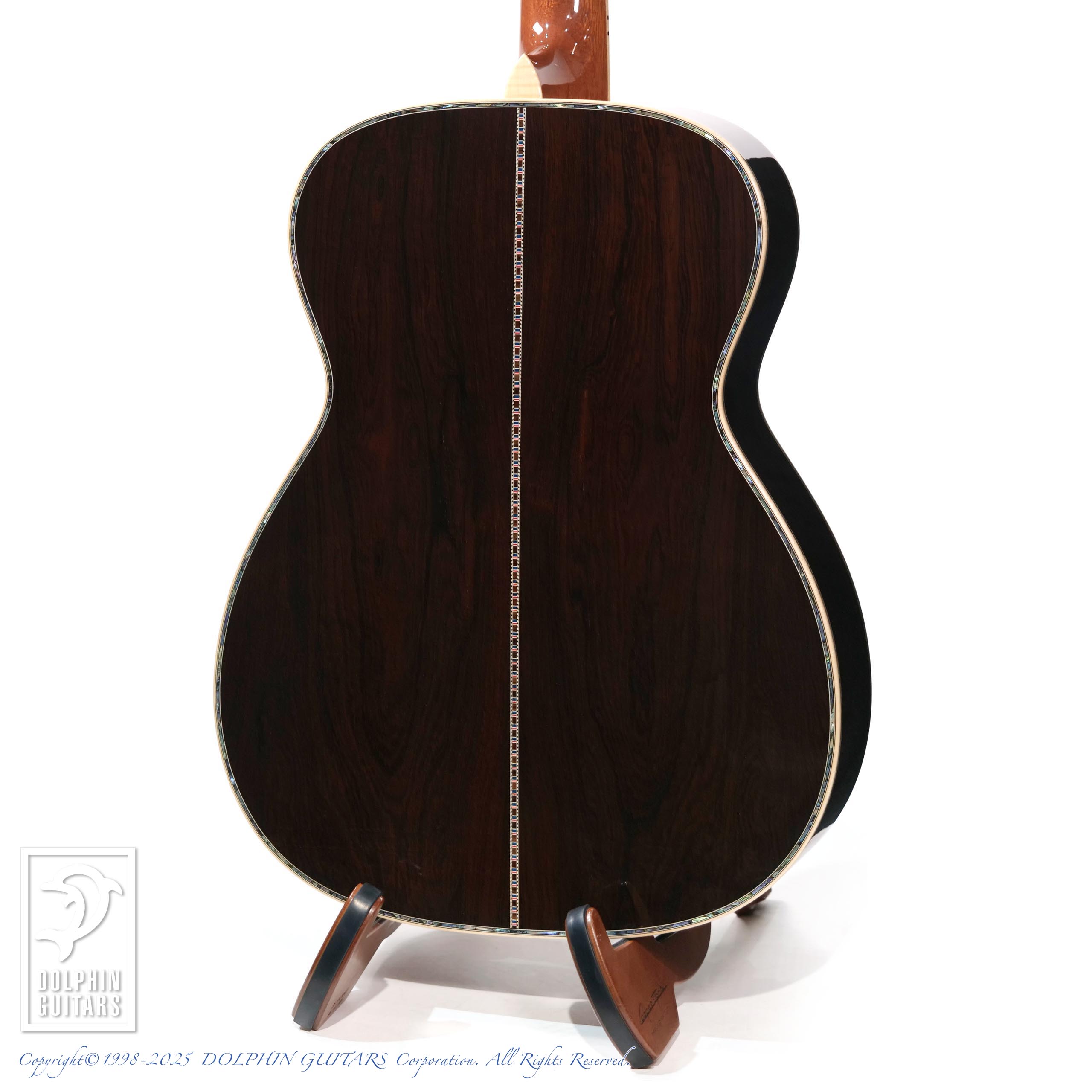 ヘッドからボディエンドまで贅沢に施されたメキシコ貝インレイのきらびやかさはもちろん、この1本を製作するために最高級材を使用。ハカランダの重厚感とキメ細かなジャーマンスプルース、内部にも徹底した拘りを持ち、ブレイシング材も磨き上げられ、強くハリのあるサウンドに色鮮やかなトーンなど、経験豊富なアストリアスクラフトマンが製作した最高級品は「エンペラー」のネーミングにふさわしいギターです。