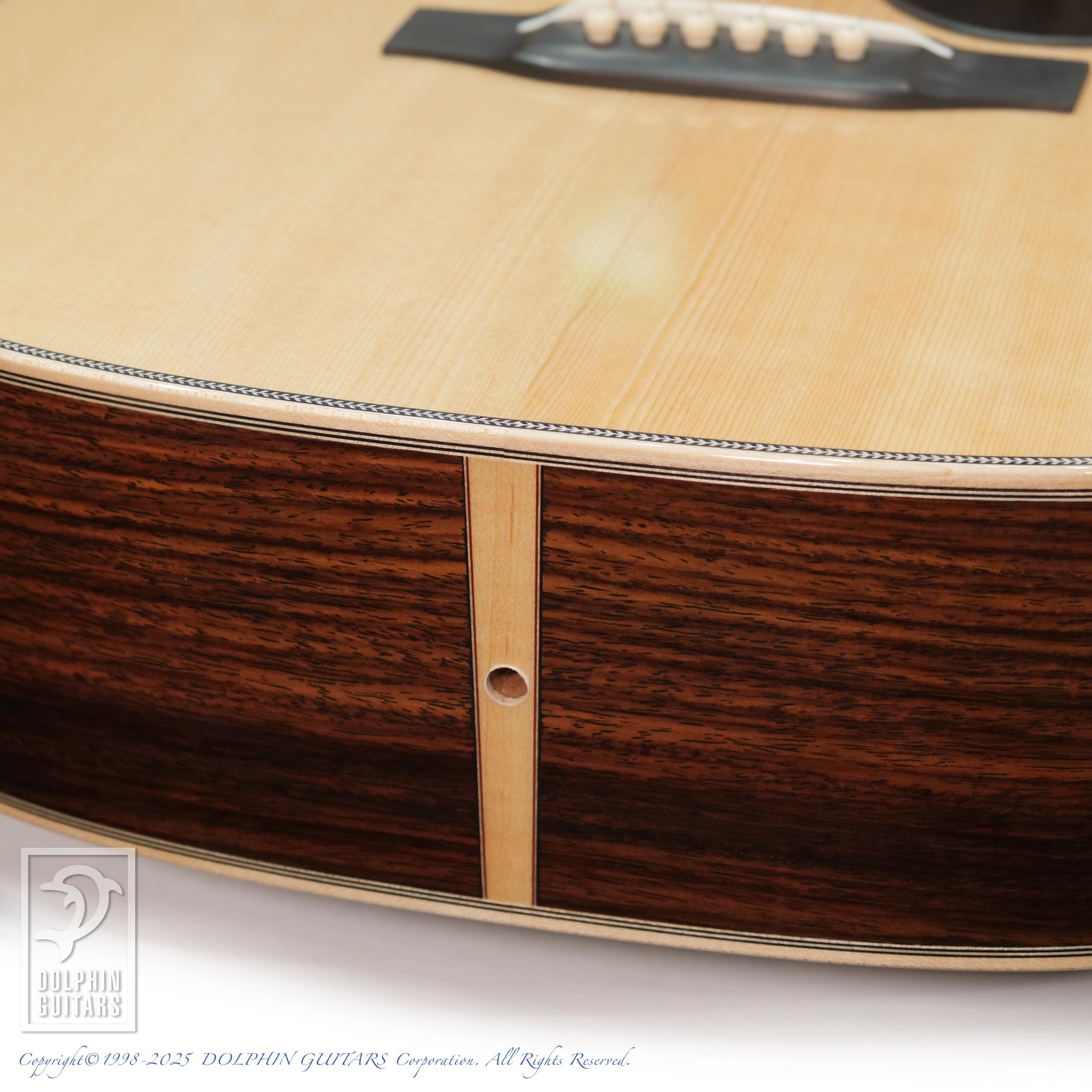 その他:ヘッドトーチインレイ、43mmナット幅、632.5mmスケール、牛骨ナット・サドル、ヘリンボーン&メイプル・バインディング